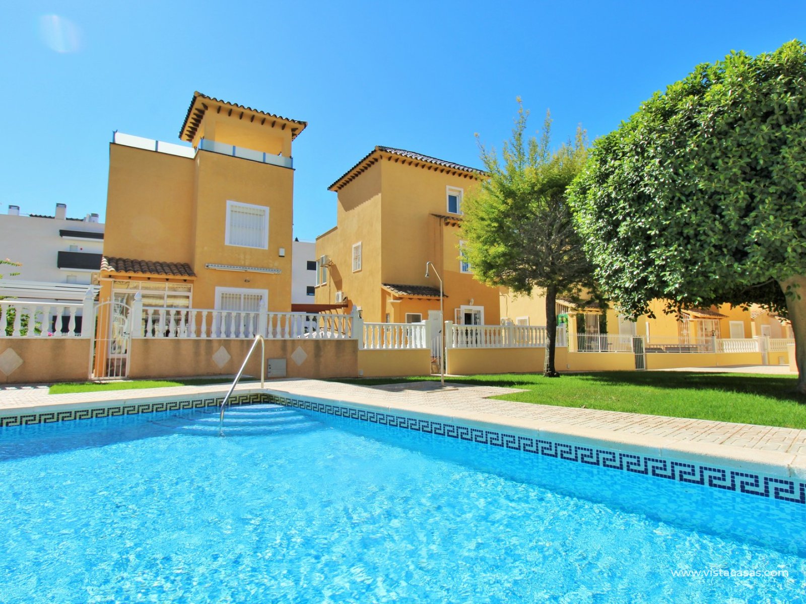 Diese gepflegte freistehende Villa mit drei Schlafzimmern liegt in der begehrten Anlage Lomas del Golf in Villamartin, nur wenige Gehminuten von der Villamartin Plaza und dem Golfplatz entfernt.