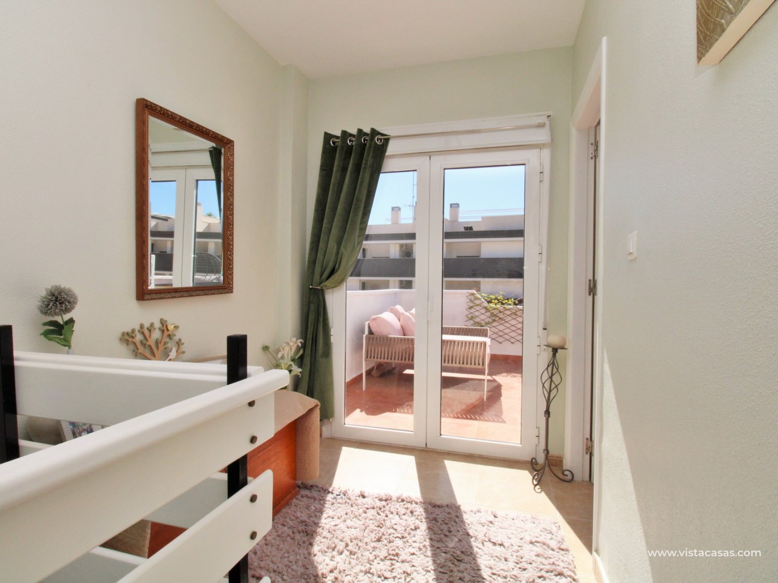 Das Obergeschoss beherbergt das Hauptschlafzimmer mit eigenem Bad und Zugang zum privaten Dachsolarium.