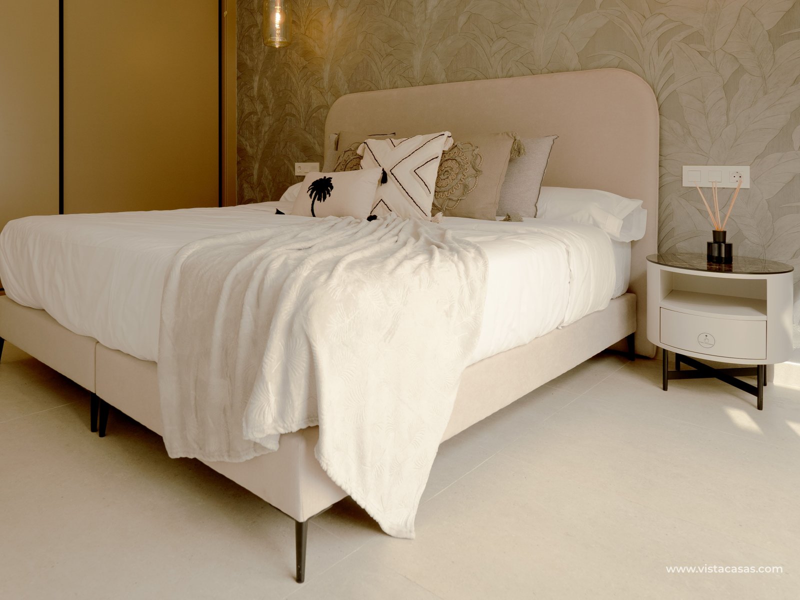 Im Außenbereich ist jedes Reihenhaus so gestaltet, dass es das mediterrane Klima optimal nutzt. Genießen Sie Ihren eigenen privaten Garten, eine persönliche Oase, in der Sie sich entspannen oder Aktivitäten im Freien mit der Familie genießen können. Die Pergola verleiht Eleganz und Funktionalität, bietet Schatten und einen perfekten Ort, um Gäste zu empfangen. Darüber hinaus verfügt jede Immobilie über einen privaten Pool, der eine erfrischende Flucht vor der Sommerhitze bietet.