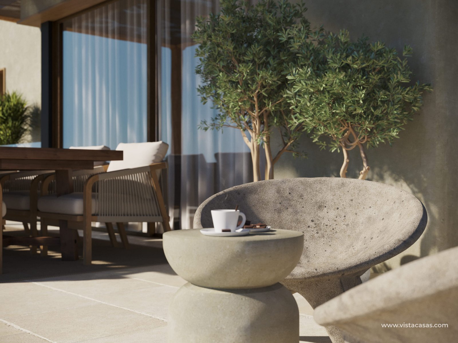 Das Innere der Villa ist mit Mikrozementböden ausgestattet, die den Räumen einen zeitgemäßen und eleganten Touch verleihen. Die in der Immobilie installierten elektrischen Rollläden garantieren nicht nur Komfort, sondern bieten auch ein zusätzliches Maß an Sicherheit. Darüber hinaus ist die Villa mit Klimaanlage ausgestattet, die das ganze Jahr über eine frische und angenehme Atmosphäre gewährleistet.
