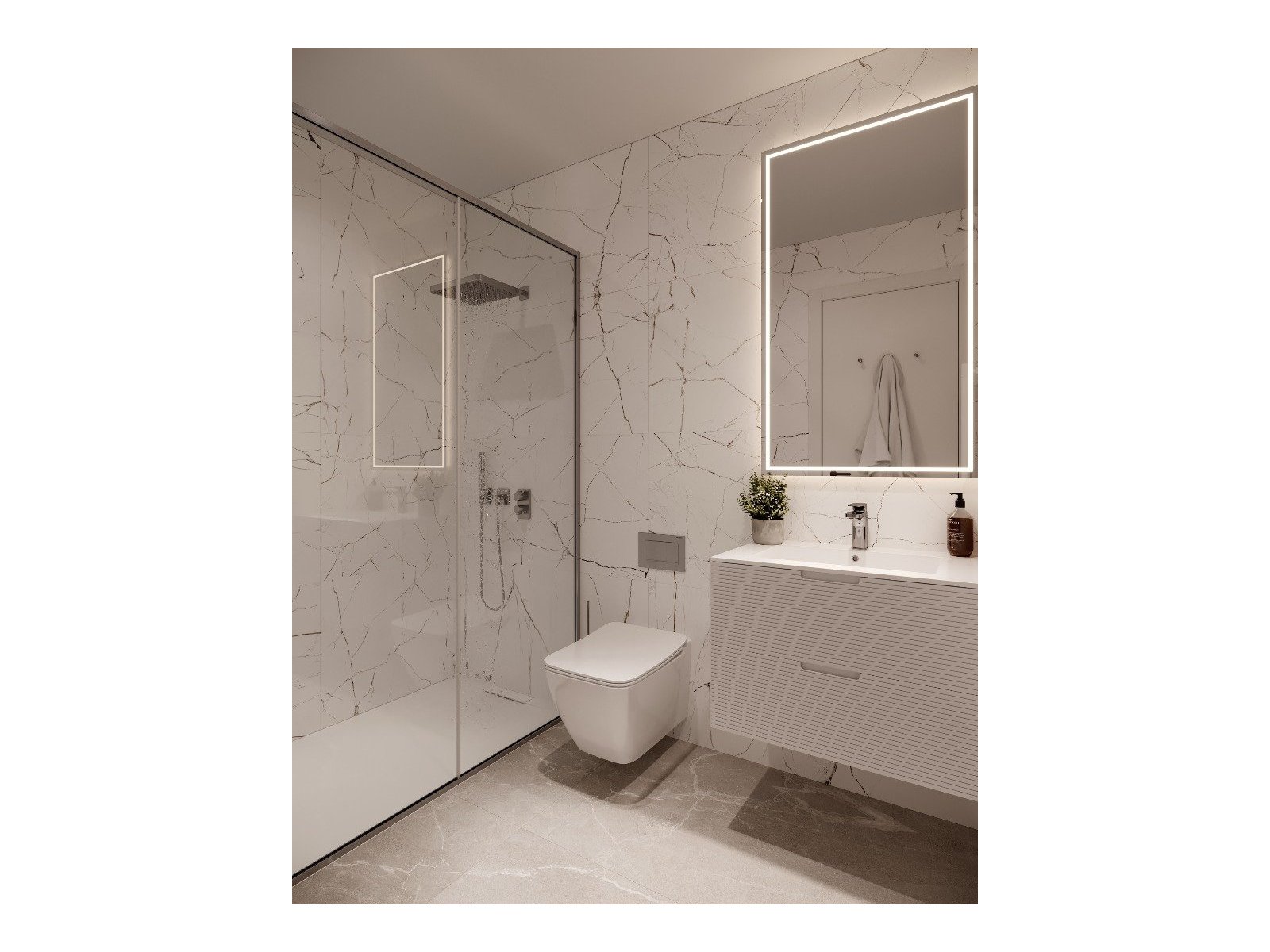 Das Innere der Wohnungen ist mit einem Fokus auf Komfort und Stil gestaltet. Die Grundrissoptionen umfassen Apartments und Penthäuser mit 2 oder 3 Schlafzimmern, alle mit 2 Bädern, was sie ideal für Familien und Paare macht. Die Einbeziehung einer Garage sorgt für einen sicheren Parkplatz, während Einbauschränke den Stauraum optimieren. Die Integration von Hausautomation und modernen Geräten erleichtert einen zeitgemäßen und effizienten Lebensstil.