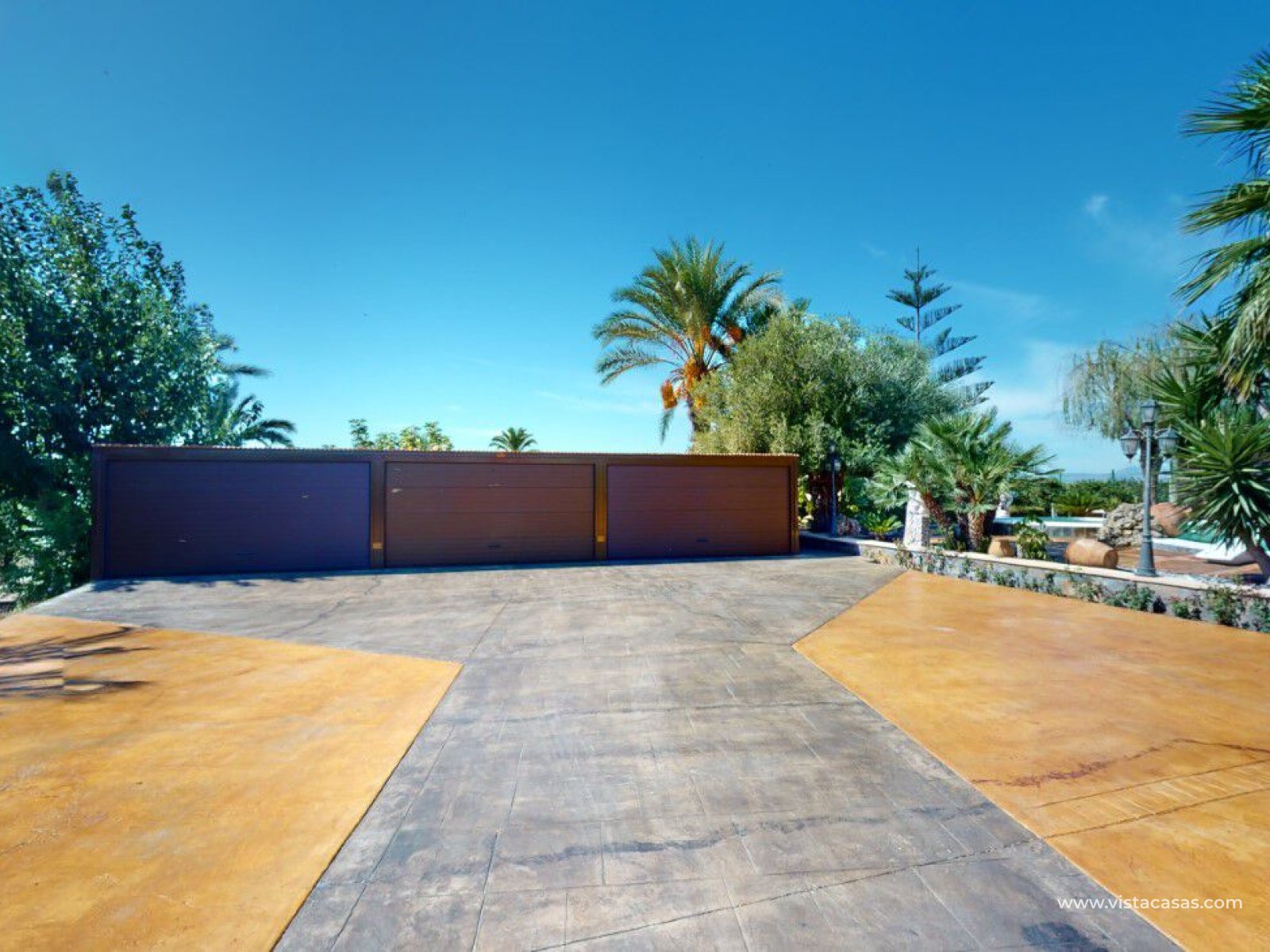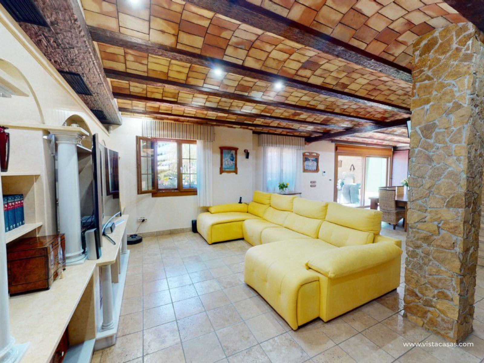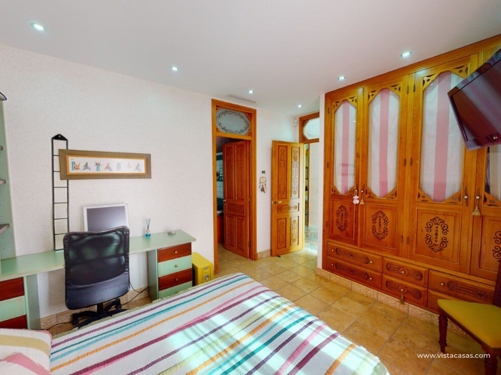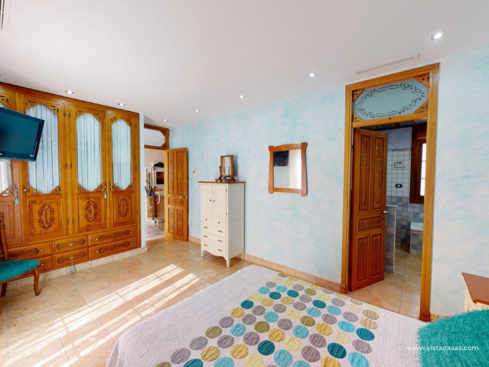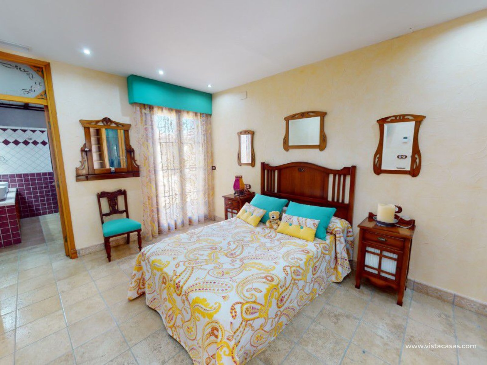 Phenomenal detached villa with a construction size of almost 500m 2 and a private pool on a plot of approximately 7,000m 2 . This detailed and well maintained gem of a property was designed by the current owners with all of the home's features carefully chosen to best represent the beautiful architecture. Entering the main entrance hallway, a handmade floor design is presented to replicate a hallway from an old Andalusian palace. The ground floor offers 3 large bedrooms, all of them with surprising private bathrooms. Further down, a bright and spacious living room with high quality craftsmanship including a fireplace built around an original Galician piece. Also a dining room, a bathroom (toilet and sink) and a fully equipped open plan kitchen with a large pantry. The first floor offers the master bedroom. The entire floor is dedicated to this room and is divided into 5 areas; The first of which is a living room with a beautiful wall with beautiful views of the Orihuela mountain range, a floating wall TV, a private bathroom with separate bath and shower, a dressing room with plenty of storage space and a safe room! The safe room door is undetectable when closed and its handle is in a secret location for your maximum security. The house itself was raised one and a half meters, thus avoiding humidity and its structure is anti-seismic. All doors are handmade, glass windows are custom designed (which future owners may have changed), all blinds are electric and the property also features marble floors with underground heating, air, CWC windows and Solar panels over the outdoor kitchen producing 13.6kw of electricity. Its privileged exterior of more than 7,000m 2 is divided into 3 main areas; A large terrace accessed through the kitchen door consisting of a laundry room and a large storage room with all large electronic devices to keep the noise level inside to a minimum. A private swimming pool (6m x 12m) with jacuzzi and slide, an external building with storage room, bathroom and a large shower room for the pool, a fully equipped outdoor kitchen with barbecue, a large dining room, a fountain and a driveway with Electric entry gates leading to a garage with space for 3 large vehicles. Finally, the property comes with around 6,500m2 of various orchards and right next to the property there is a stream which the owners use to water the orchard for free. If you would like to see the property in more detail, we have a 360° video tour below. Or call, book a showing with one of our agents and find the home of your dreams today!