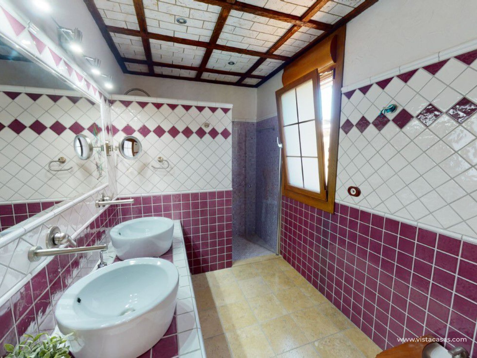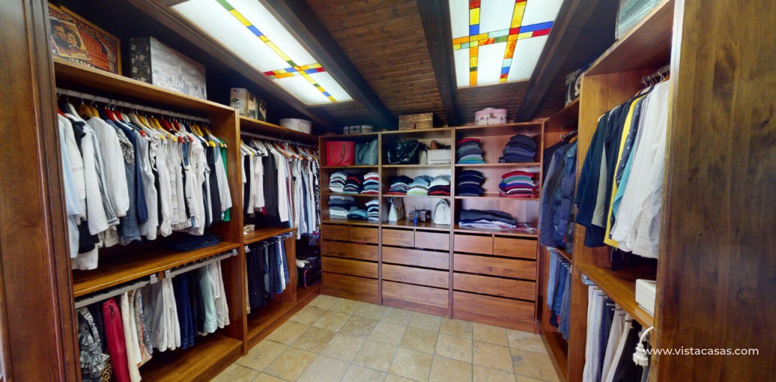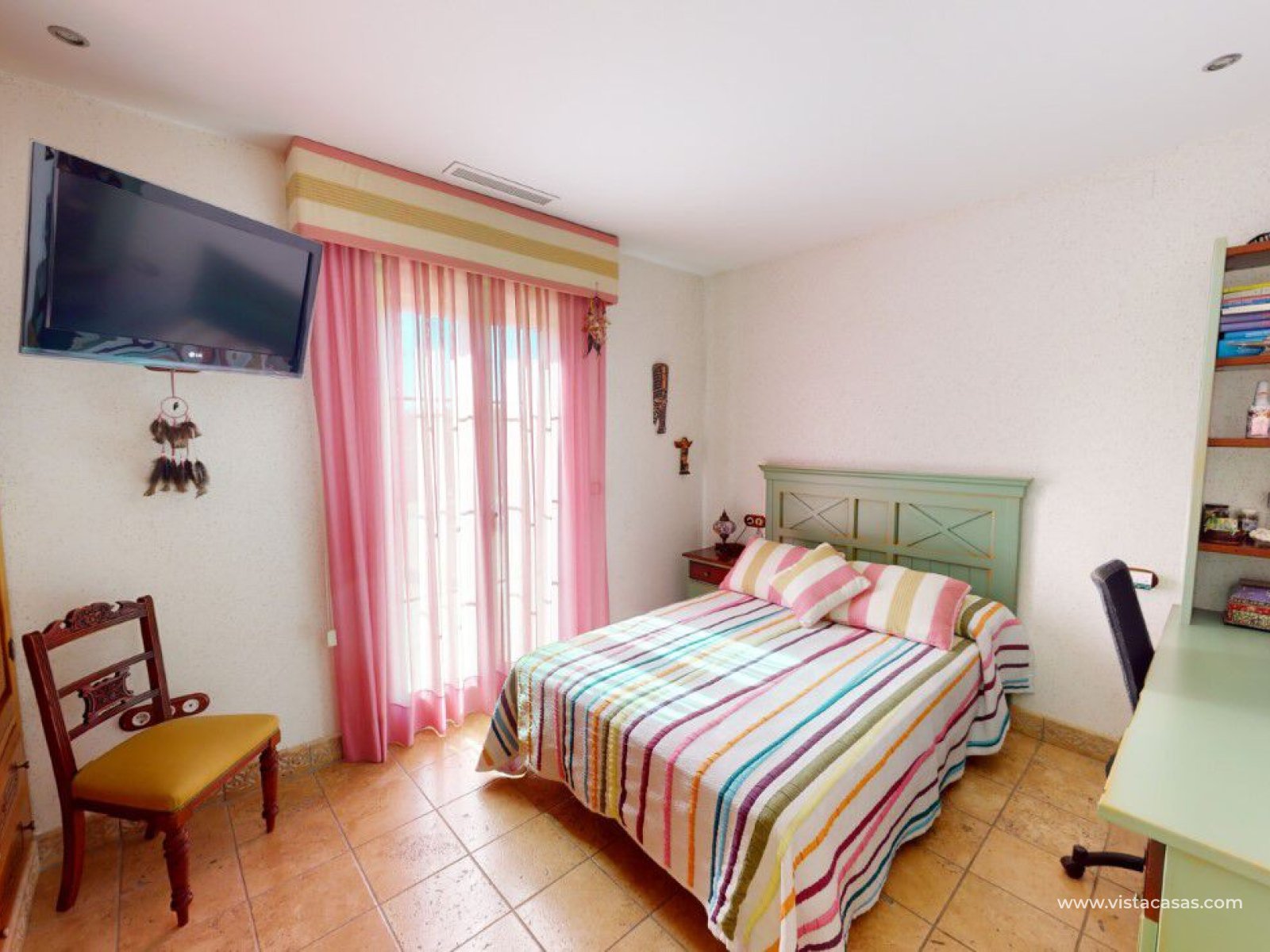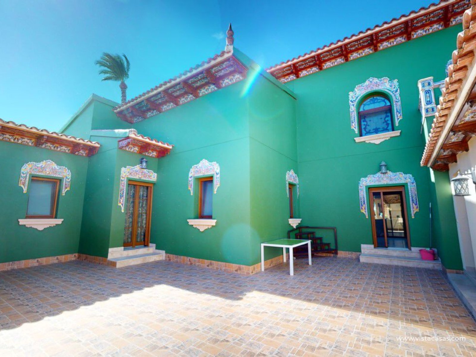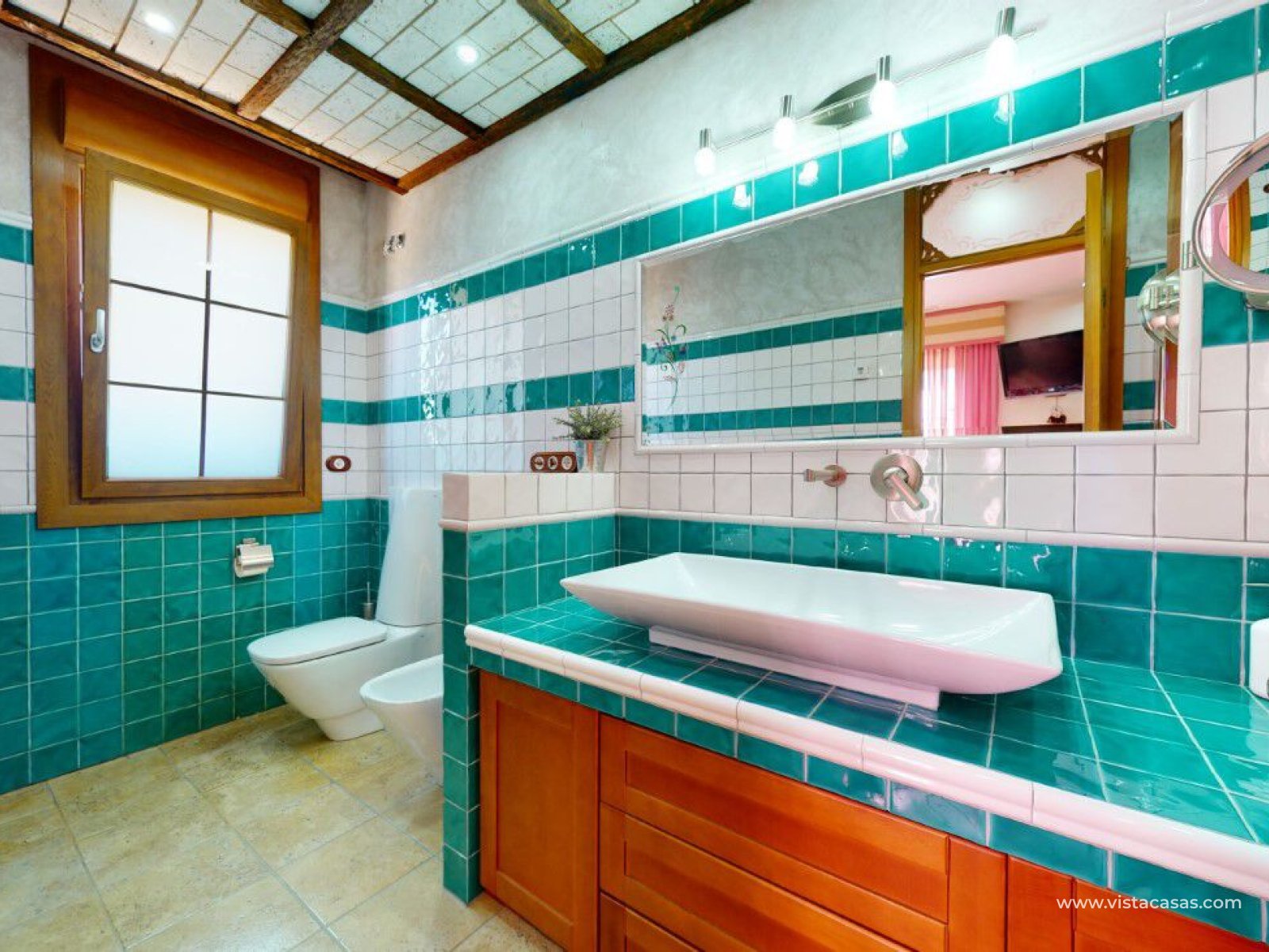 Phenomenal detached villa with a construction size of almost 500m 2 and a private pool on a plot of approximately 7,000m 2 . This detailed and well maintained gem of a property was designed by the current owners with all of the home's features carefully chosen to best represent the beautiful architecture. Entering the main entrance hallway, a handmade floor design is presented to replicate a hallway from an old Andalusian palace. The ground floor offers 3 large bedrooms, all of them with surprising private bathrooms. Further down, a bright and spacious living room with high quality craftsmanship including a fireplace built around an original Galician piece. Also a dining room, a bathroom (toilet and sink) and a fully equipped open plan kitchen with a large pantry. The first floor offers the master bedroom. The entire floor is dedicated to this room and is divided into 5 areas; The first of which is a living room with a beautiful wall with beautiful views of the Orihuela mountain range, a floating wall TV, a private bathroom with separate bath and shower, a dressing room with plenty of storage space and a safe room! The safe room door is undetectable when closed and its handle is in a secret location for your maximum security. The house itself was raised one and a half meters, thus avoiding humidity and its structure is anti-seismic. All doors are handmade, glass windows are custom designed (which future owners may have changed), all blinds are electric and the property also features marble floors with underground heating, air, CWC windows and Solar panels over the outdoor kitchen producing 13.6kw of electricity. Its privileged exterior of more than 7,000m 2 is divided into 3 main areas; A large terrace accessed through the kitchen door consisting of a laundry room and a large storage room with all large electronic devices to keep the noise level inside to a minimum. A private swimming pool (6m x 12m) with jacuzzi and slide, an external building with storage room, bathroom and a large shower room for the pool, a fully equipped outdoor kitchen with barbecue, a large dining room, a fountain and a driveway with Electric entry gates leading to a garage with space for 3 large vehicles. Finally, the property comes with around 6,500m2 of various orchards and right next to the property there is a stream which the owners use to water the orchard for free. If you would like to see the property in more detail, we have a 360° video tour below. Or call, book a showing with one of our agents and find the home of your dreams today!