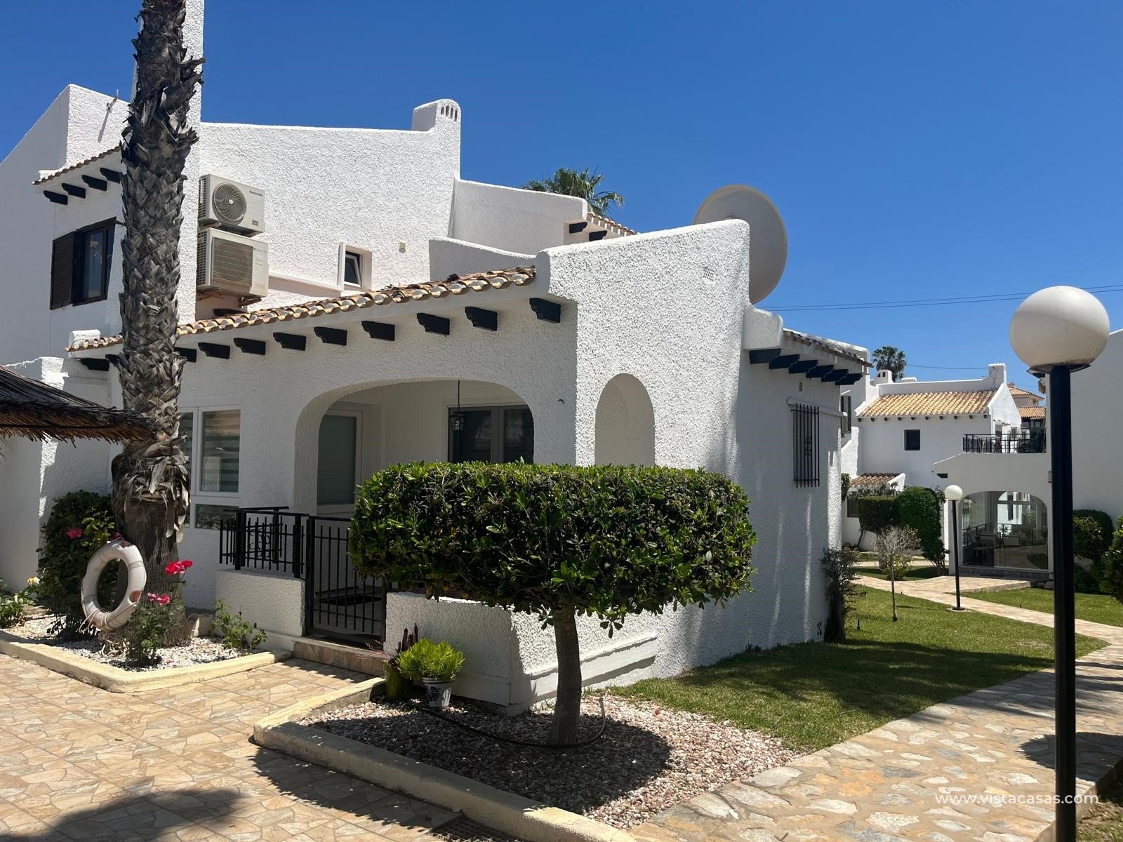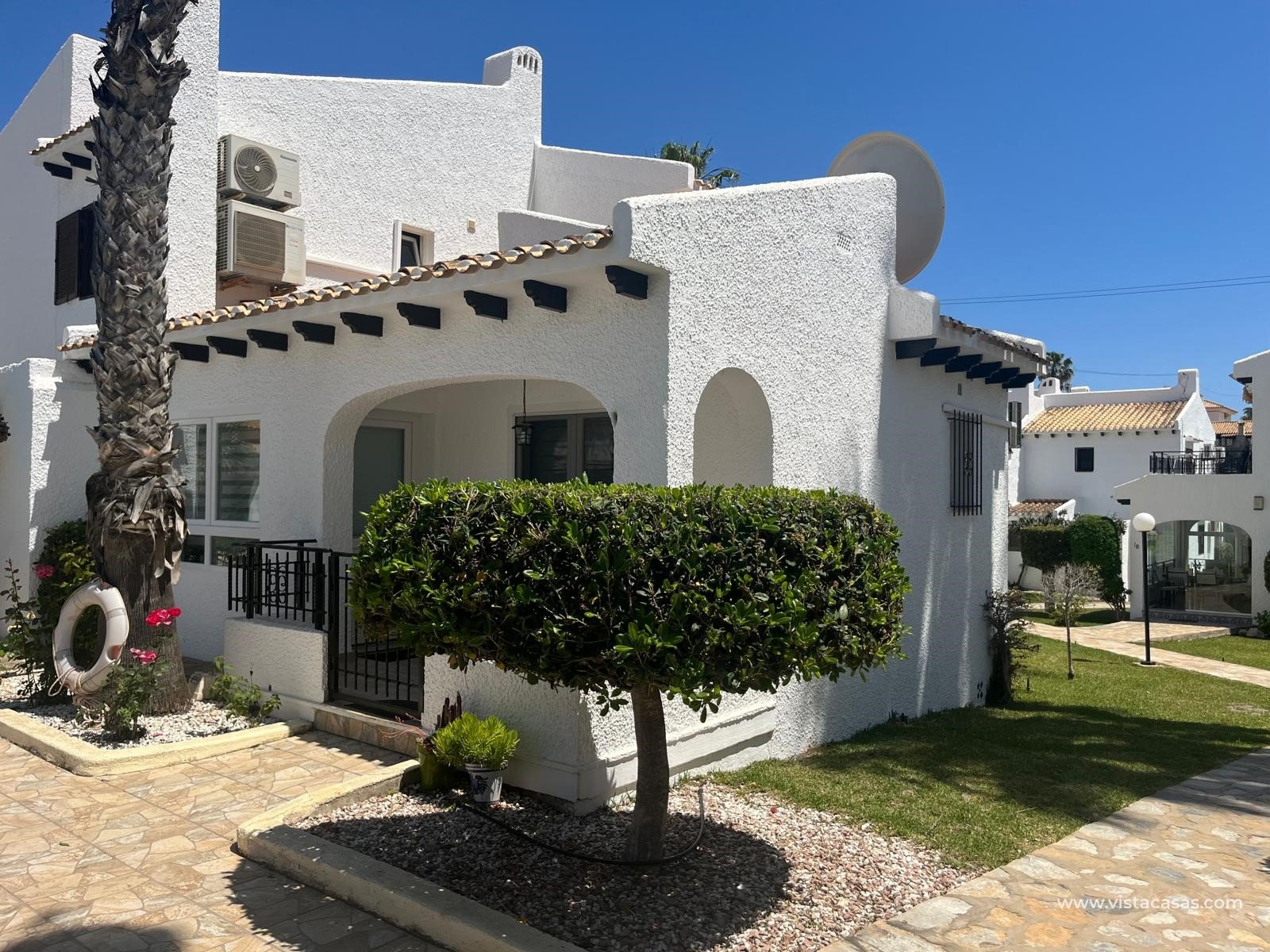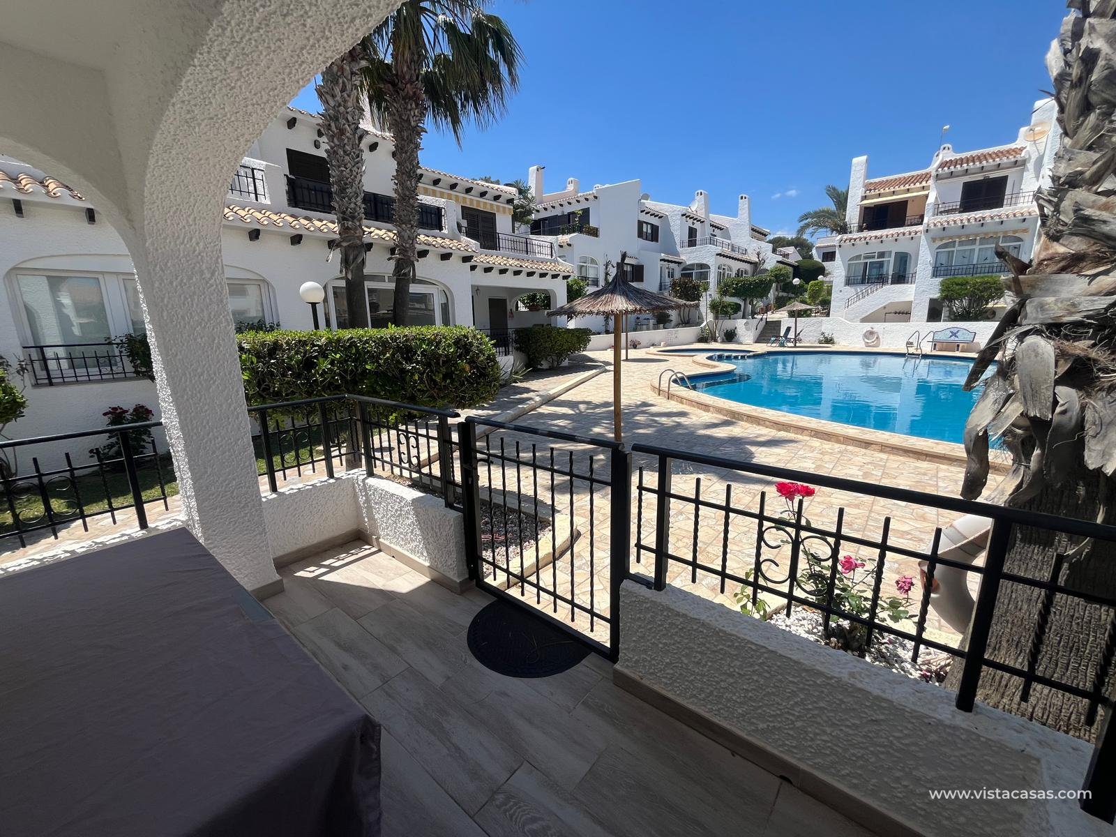 Bungalow semi-adosado en Cabo Roig Descubra el refugio perfecto junto a la playa en este encantador bungalow semi-adosado situado en la codiciada zona de Cabo Roig. Ubicado en una hermosa comunidad cerrada, esta encantadora propiedad ofrece un estilo de vida sereno a un corto paseo de las playas. Este bungalow cuenta con dos acogedores dormitorios y un baño moderno, por lo que es ideal para familias o parejas que buscan una escapada tranquila. En el interior se encuentra una acogedora cocina abierta que fluye a la perfección en el salón/comedor, creando un ambiente cálido y acogedor. El bungalow viene completamente amueblado. Disfrute de la comodidad del aire acondicionado durante los calurosos meses de verano y aproveche la encantadora terraza con vistas a la piscina comunitaria, perfecta para relajarse con un libro o recibir a los amigos. La comodidad está en su puerta con una serie de servicios a pocos minutos de distancia. Con aparcamiento fuera de la carretera disponible, esta propiedad no es sólo una casa fantástica, sino también una excelente oportunidad de inversión en una ubicación privilegiada. No pierda la oportunidad de poseer esta joya en Cabo Roig, ¡Programe una visita hoy mismo!