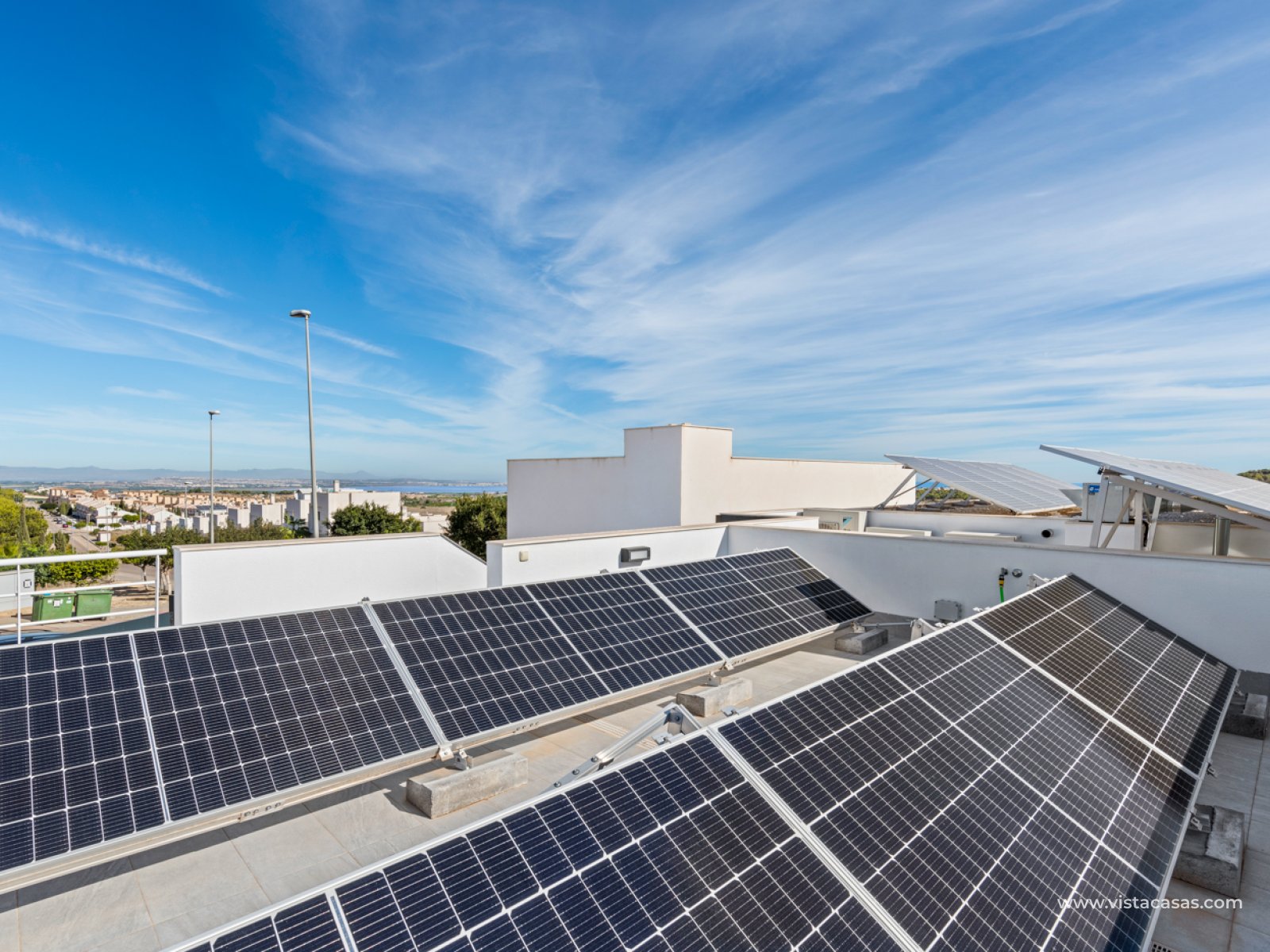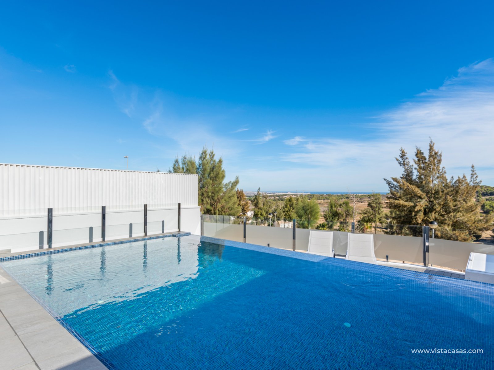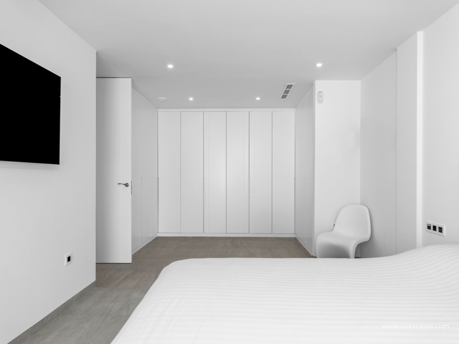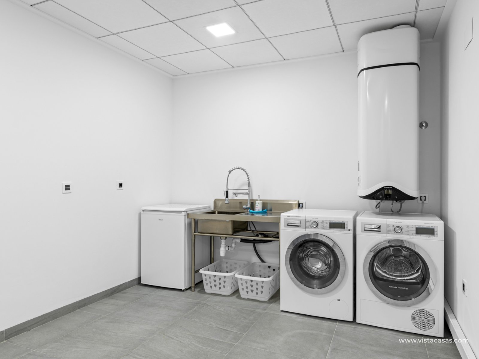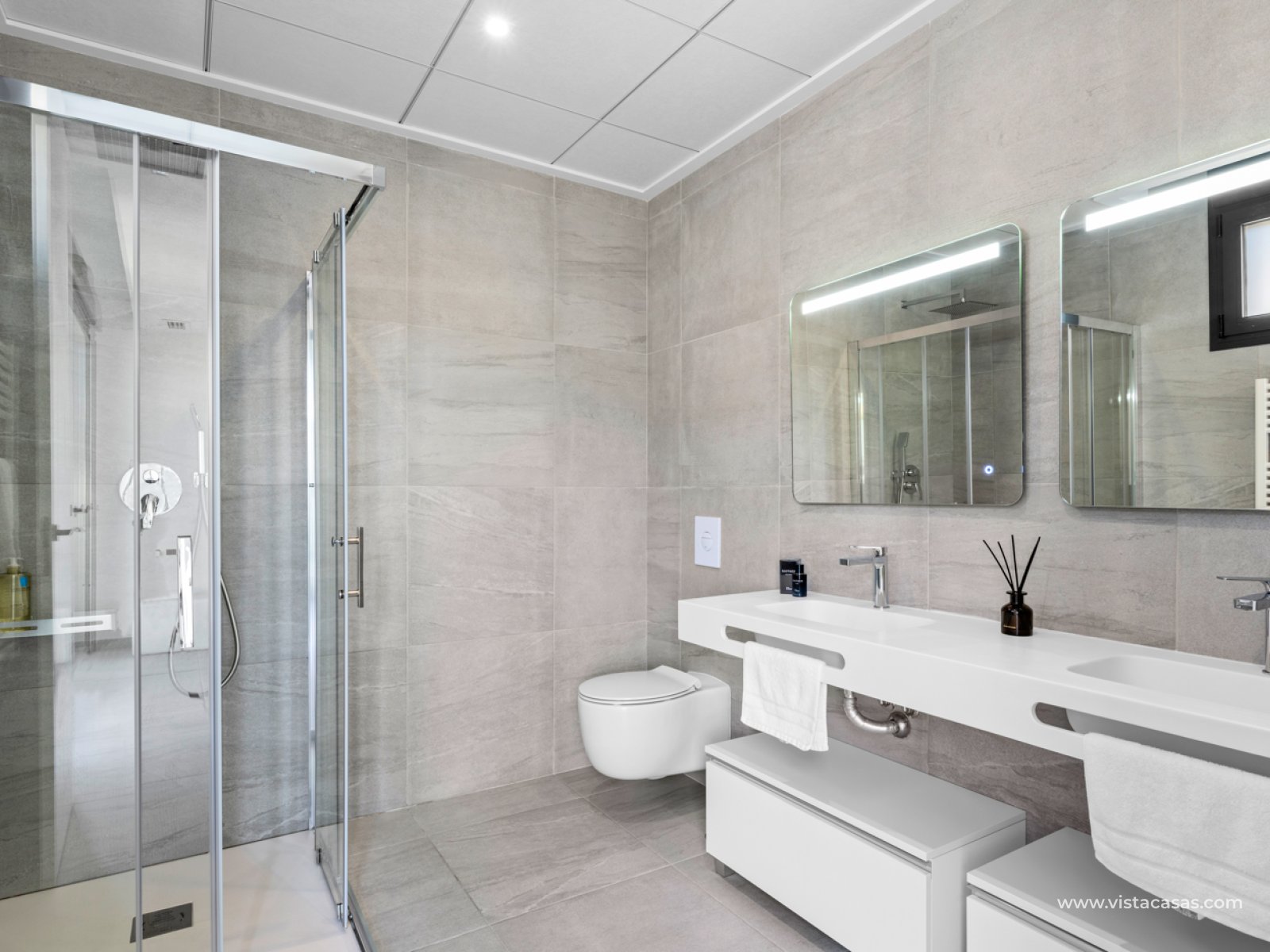 Estamos orgullosos de presentar esta exclusiva villa independiente de alta gama con espectaculares vistas ininterrumpidas al mar.¡Si usted está buscando una casa que es de alta tecnología y caminar en listo, a continuación, reservar su visita a esta propiedad increíble hoy!Al entrar en la villa directamente en el plan abierto de cocina / sala de estar se dará cuenta de inmediato lo luminoso y espacioso que es. El salón de 60m ² tiene un techo elevado de 3,5 m y tiene grandes puertas correderas panorámicas en la parte trasera, lo que le permite disfrutar plenamente de las impresionantes vistas al mar. Las puertas conducen a una gran terraza y la hermosa piscina climatizada con cubierta eléctrica. En la parte trasera de la piscina hay una acogedora terraza donde se puede tomar el sol hasta que se ponga. De vuelta al interior de la cocina moderna y elegante que se sorprenderá por la tecnología de esta villa tiene. Todos los electrodomésticos son de alta gama y se pueden controlar con el teléfono a través de WiFi Home Connect. Esto incluye el horno, el microondas, el lavavajillas, la placa de inducción, la campana extractora e incluso la cafetera. Todos los electrodomésticos integrados se mantendrán. Incluso hay un enchufe oculto en la isla. Junto a la puerta principal hay armarios ocultos, ideales para abrigos, zapatos y mucho más.A medida que continuamos explorando este nivel se encuentra un gran aseo independiente totalmente alicatado y el dormitorio principal luminoso con un gran vestidor y un elegante baño principal con doble lavabo y ducha acristalada. Grandes puertas correderas en el dormitorio principal conducen al jardín trasero con una zona de asientos con césped.Al bajar las escaleras, se llega inmediatamente a la segunda sala de estar, que actualmente se utiliza como un gimnasio en casa y zona de juegos para los niños. Las puertas del patio conducen a una zona de patio encantador que también se accede a través de todas las habitaciones. En este nivel hay otros 3 dormitorios fabulosos para explorar. El primero se utiliza actualmente como una amplia oficina. El siguiente dormitorio tiene armarios empotrados, puertas que dan al patio y un moderno cuarto de baño. El último dormitorio es una hermosa suite, comparable a una habitación de hotel de 5 estrellas, con un sinfín de armarios empotrados, un precioso baño con bañera independiente y ducha, así como las puertas del patio de la habitación que conduce al patio antes mencionado.Pero eso no es todo lo que hay aquí abajo, que conduce fuera de la sala de estar es una muy amplia lavandería y cuarto de servicio que también da acceso a un trastero enorme. En toda la casa hay aire acondicionado frío y caliente que se puede controlar en 5 zonas diferentes de aire Daikin por los paneles de control o por su teléfono.Esta impresionante villa tiene aún más que ofrecer: Top de la línea de descalcificador de agua se ha instalado en todo, incluyendo la piscina. La sala de estar del nivel principal tiene un calentador de pellets para ayudar a crear esas noches más acogedoras. Hay mosquiteras y persianas eléctricas en toda la propiedad. Todos los baños tienen radiadores, calefacción por suelo radiante y extractores. La puerta eléctrica conduce a la entrada privada con aparcamiento para 3 coches y un nuevo cargador de coche eléctrico sin usar. La puerta peatonal tiene un video timbre con abrepuertas interno. Arriba en el 60m2 solarium se encuentran 22 paneles solares. Nueva valla de privacidad se ha instalado para garantizar la privacidad. Iluminación exterior y 5 puntos de cámaras de seguridad alrededor de la propiedad.¡Esta villa de lujo está realmente lista para entrar y está esperando para sorprenderle!Esta impresionante villa se encuentra a menos de 5 minutos en coche de la vibrante ciudad de San Miguel de Salinas, donde se pueden encontrar todas las comodidades que usted requiere. Colegios españoles, centro m.