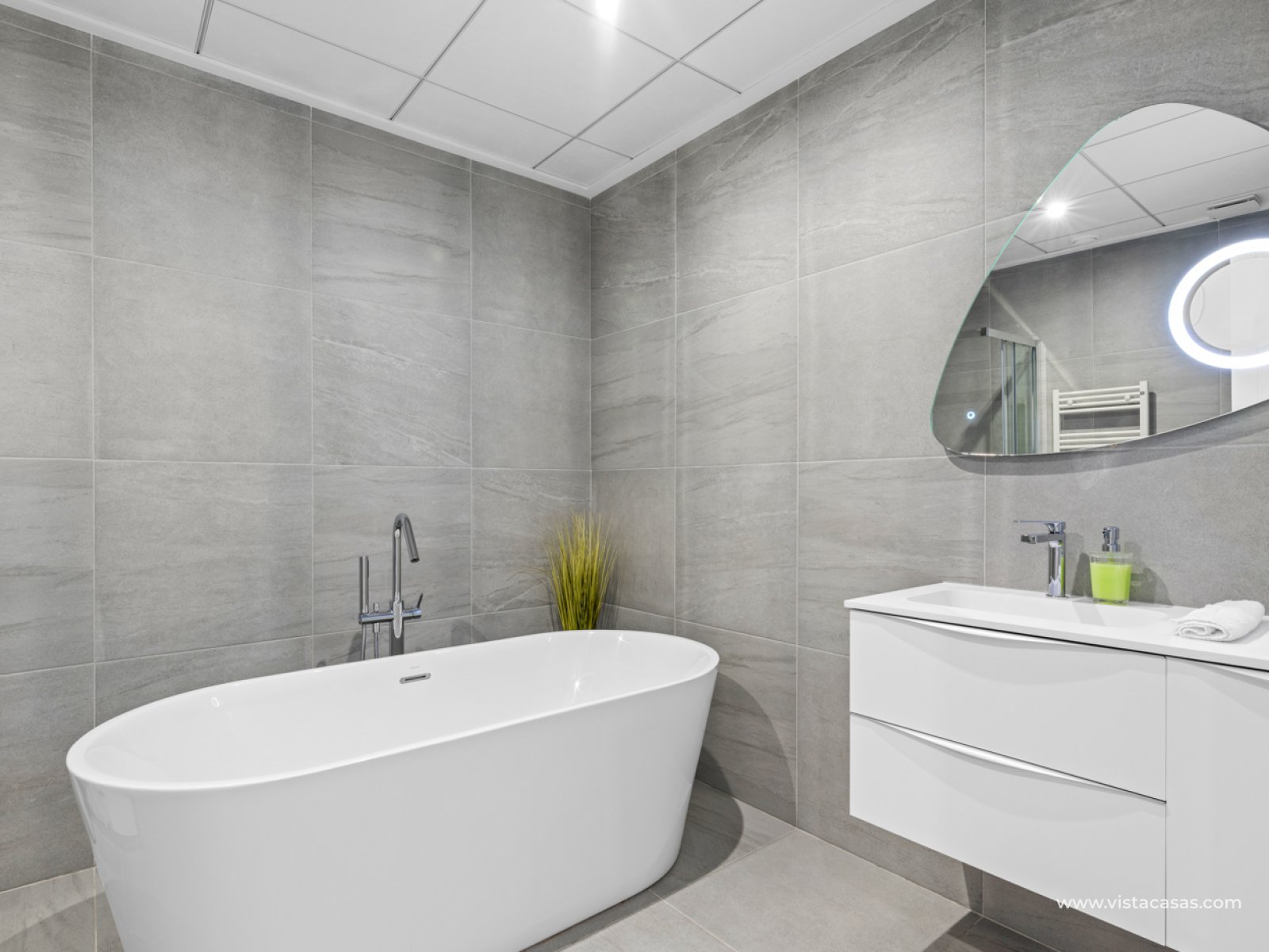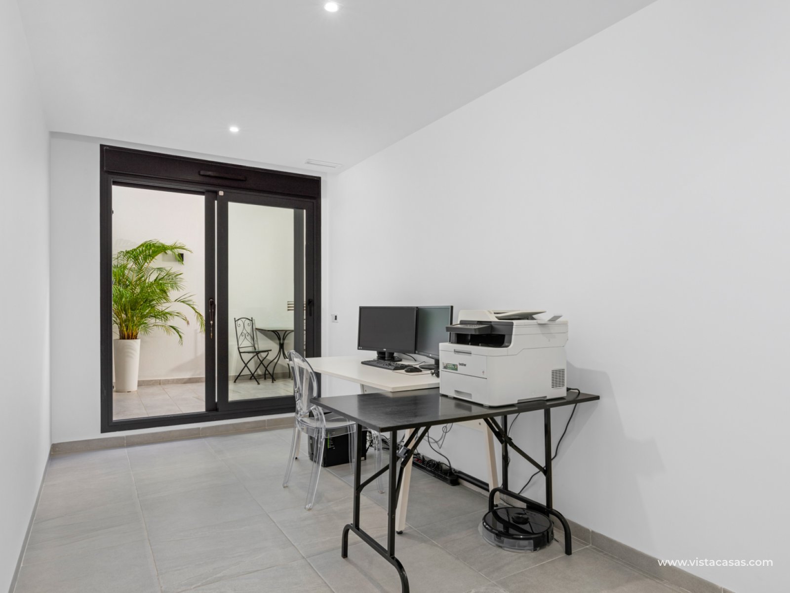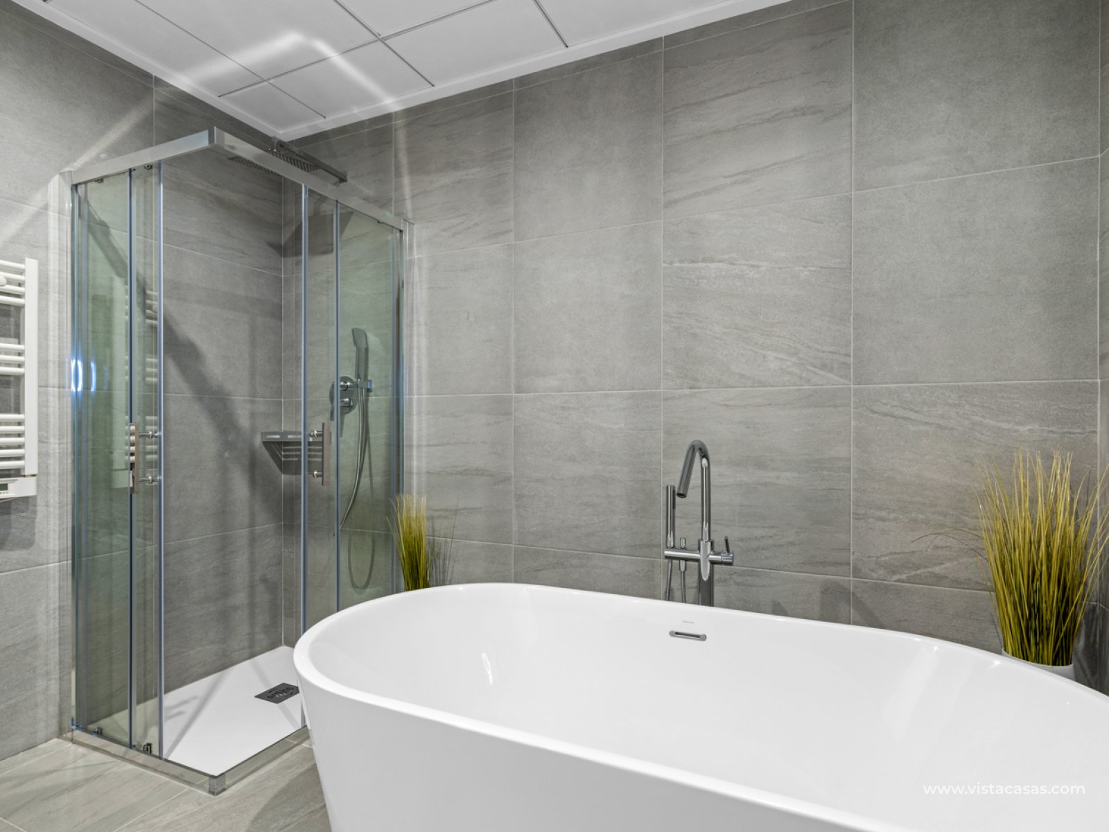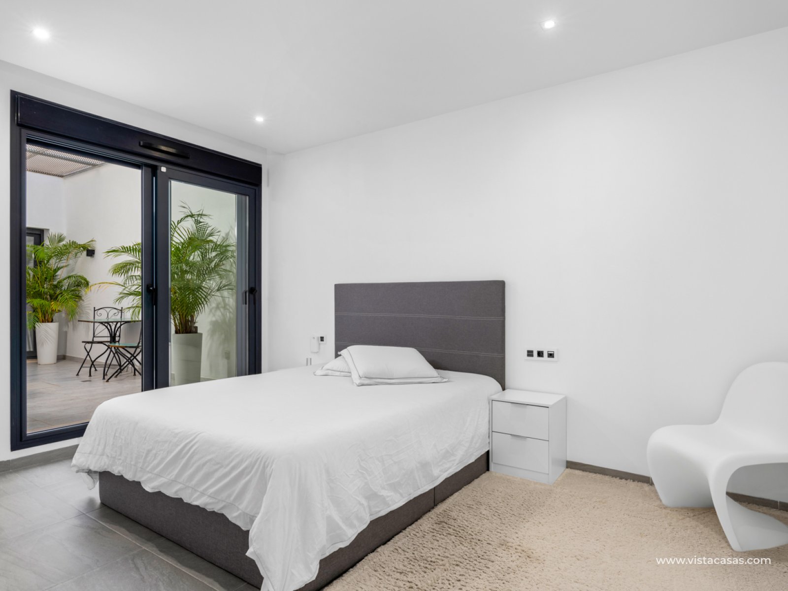 Estamos orgullosos de presentar esta exclusiva villa independiente de alta gama con espectaculares vistas ininterrumpidas al mar.¡Si usted está buscando una casa que es de alta tecnología y caminar en listo, a continuación, reservar su visita a esta propiedad increíble hoy!Al entrar en la villa directamente en el plan abierto de cocina / sala de estar se dará cuenta de inmediato lo luminoso y espacioso que es. El salón de 60m ² tiene un techo elevado de 3,5 m y tiene grandes puertas correderas panorámicas en la parte trasera, lo que le permite disfrutar plenamente de las impresionantes vistas al mar. Las puertas conducen a una gran terraza y la hermosa piscina climatizada con cubierta eléctrica. En la parte trasera de la piscina hay una acogedora terraza donde se puede tomar el sol hasta que se ponga. De vuelta al interior de la cocina moderna y elegante que se sorprenderá por la tecnología de esta villa tiene. Todos los electrodomésticos son de alta gama y se pueden controlar con el teléfono a través de WiFi Home Connect. Esto incluye el horno, el microondas, el lavavajillas, la placa de inducción, la campana extractora e incluso la cafetera. Todos los electrodomésticos integrados se mantendrán. Incluso hay un enchufe oculto en la isla. Junto a la puerta principal hay armarios ocultos, ideales para abrigos, zapatos y mucho más.A medida que continuamos explorando este nivel se encuentra un gran aseo independiente totalmente alicatado y el dormitorio principal luminoso con un gran vestidor y un elegante baño principal con doble lavabo y ducha acristalada. Grandes puertas correderas en el dormitorio principal conducen al jardín trasero con una zona de asientos con césped.Al bajar las escaleras, se llega inmediatamente a la segunda sala de estar, que actualmente se utiliza como un gimnasio en casa y zona de juegos para los niños. Las puertas del patio conducen a una zona de patio encantador que también se accede a través de todas las habitaciones. En este nivel hay otros 3 dormitorios fabulosos para explorar. El primero se utiliza actualmente como una amplia oficina. El siguiente dormitorio tiene armarios empotrados, puertas que dan al patio y un moderno cuarto de baño. El último dormitorio es una hermosa suite, comparable a una habitación de hotel de 5 estrellas, con un sinfín de armarios empotrados, un precioso baño con bañera independiente y ducha, así como las puertas del patio de la habitación que conduce al patio antes mencionado.Pero eso no es todo lo que hay aquí abajo, que conduce fuera de la sala de estar es una muy amplia lavandería y cuarto de servicio que también da acceso a un trastero enorme. En toda la casa hay aire acondicionado frío y caliente que se puede controlar en 5 zonas diferentes de aire Daikin por los paneles de control o por su teléfono.Esta impresionante villa tiene aún más que ofrecer: Top de la línea de descalcificador de agua se ha instalado en todo, incluyendo la piscina. La sala de estar del nivel principal tiene un calentador de pellets para ayudar a crear esas noches más acogedoras. Hay mosquiteras y persianas eléctricas en toda la propiedad. Todos los baños tienen radiadores, calefacción por suelo radiante y extractores. La puerta eléctrica conduce a la entrada privada con aparcamiento para 3 coches y un nuevo cargador de coche eléctrico sin usar. La puerta peatonal tiene un video timbre con abrepuertas interno. Arriba en el 60m2 solarium se encuentran 22 paneles solares. Nueva valla de privacidad se ha instalado para garantizar la privacidad. Iluminación exterior y 5 puntos de cámaras de seguridad alrededor de la propiedad.¡Esta villa de lujo está realmente lista para entrar y está esperando para sorprenderle!Esta impresionante villa se encuentra a menos de 5 minutos en coche de la vibrante ciudad de San Miguel de Salinas, donde se pueden encontrar todas las comodidades que usted requiere. Colegios españoles, centro m.