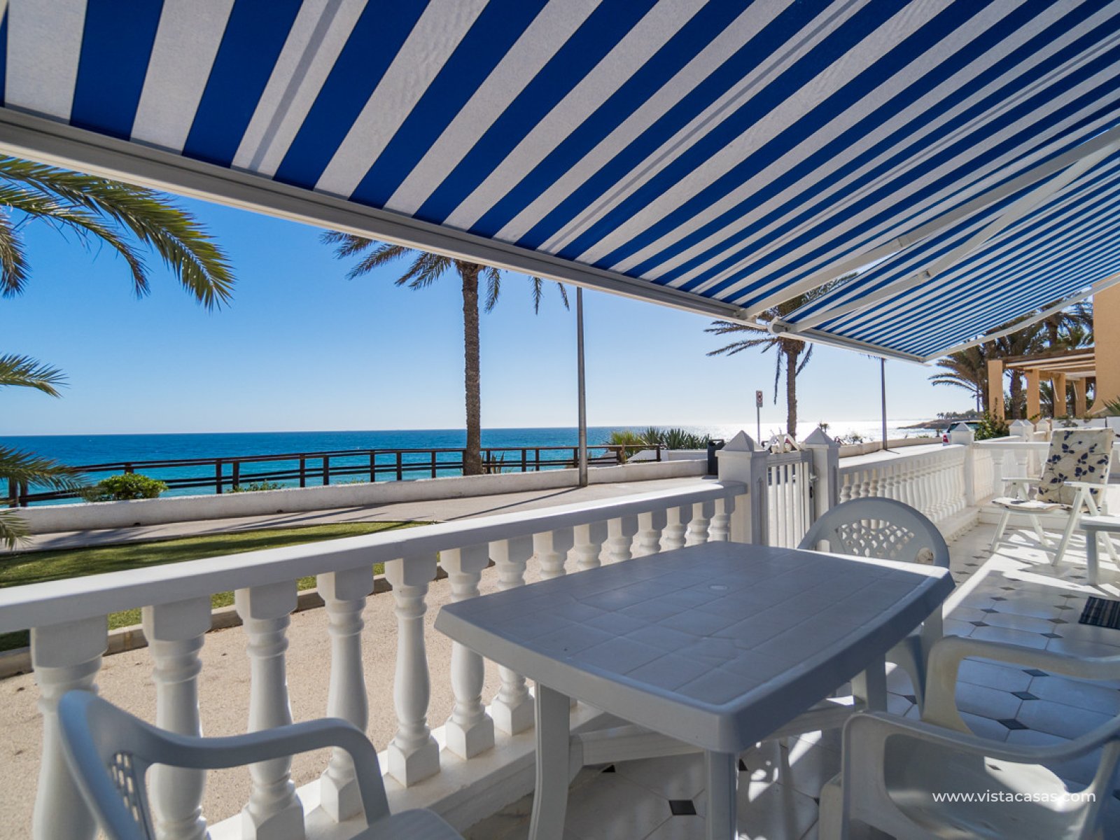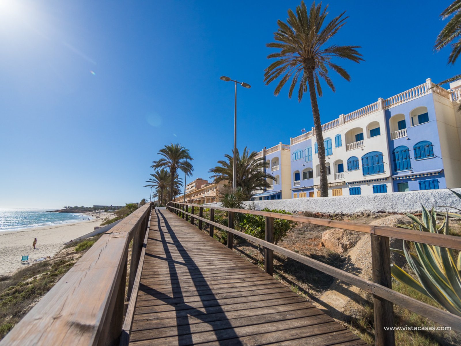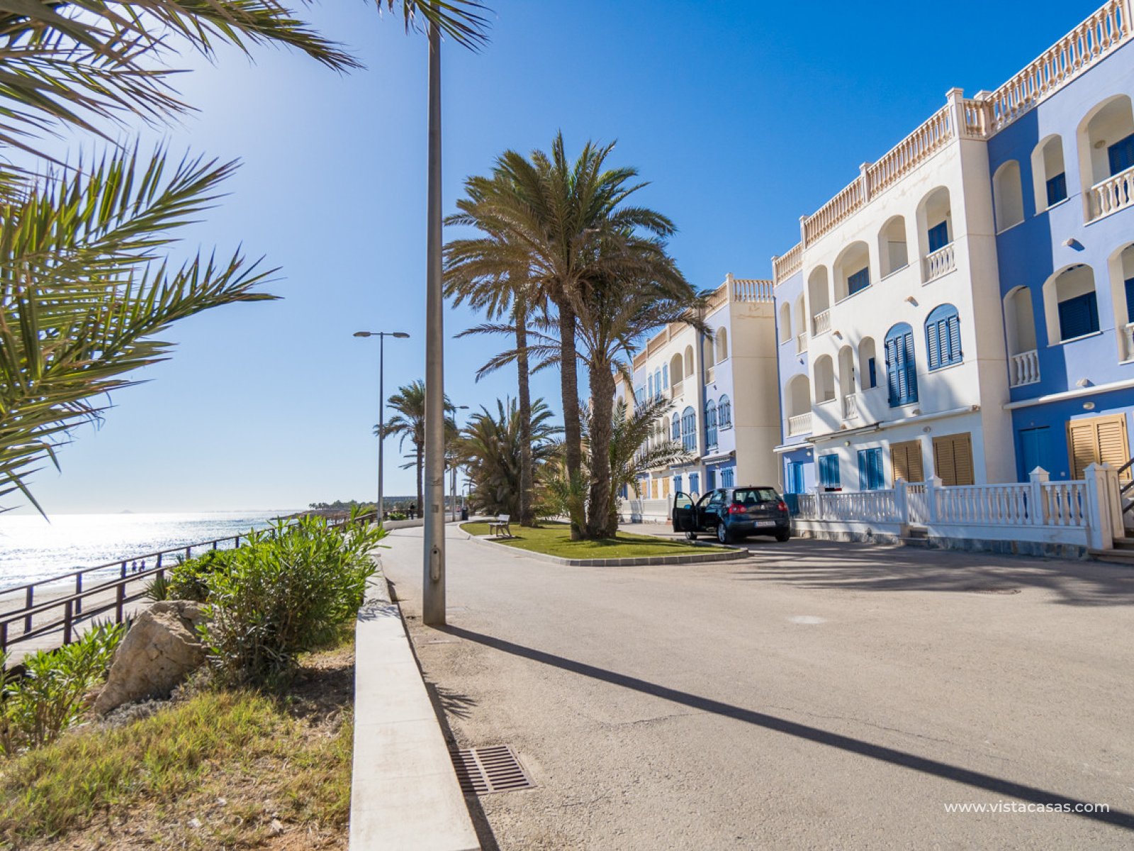 Localización absolutamente excepcional para este apartamento en planta baja frente a la hermosa playa de Mil Palmeras y con impresionantes vistas panorámicas al mar. El apartamento ofrece 2 amplios dormitorios, un baño familiar con una gran ducha, sala de estar/comedor de planta abierta con cocina totalmente equipada y práctica área de almacenamiento/lavadero. La propiedad también cuenta con un garaje privado. El apartamento tiene una ubicación prestigiosa junto a la playa para aquellos que buscan un lugar junto al mar, a pocos pasos del paseo marítimo y una de las mejores playas con Bandera Azul de la Orihuela Costa. Las comodidades locales están disponibles, incluyendo cafeterías locales y restaurantes. Un escape perfecto junto al mar. Contáctenos hoy para su visita.