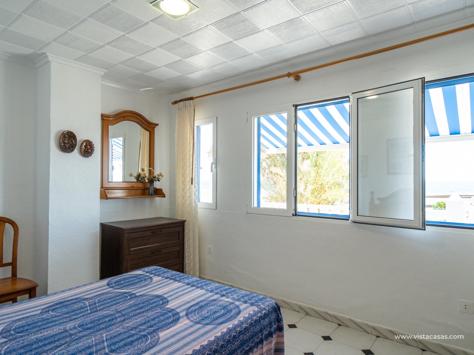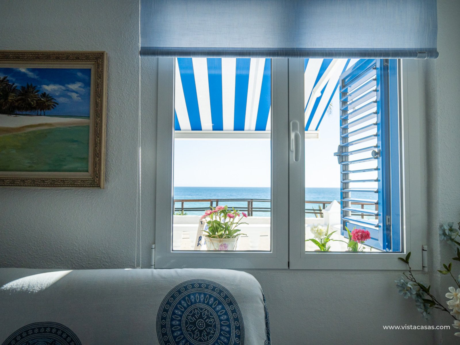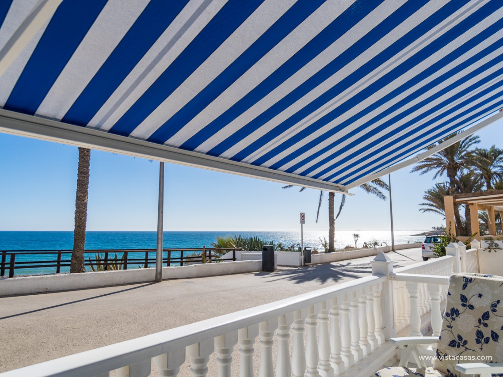 Localización absolutamente excepcional para este apartamento en planta baja frente a la hermosa playa de Mil Palmeras y con impresionantes vistas panorámicas al mar. El apartamento ofrece 2 amplios dormitorios, un baño familiar con una gran ducha, sala de estar/comedor de planta abierta con cocina totalmente equipada y práctica área de almacenamiento/lavadero. La propiedad también cuenta con un garaje privado. El apartamento tiene una ubicación prestigiosa junto a la playa para aquellos que buscan un lugar junto al mar, a pocos pasos del paseo marítimo y una de las mejores playas con Bandera Azul de la Orihuela Costa. Las comodidades locales están disponibles, incluyendo cafeterías locales y restaurantes. Un escape perfecto junto al mar. Contáctenos hoy para su visita.