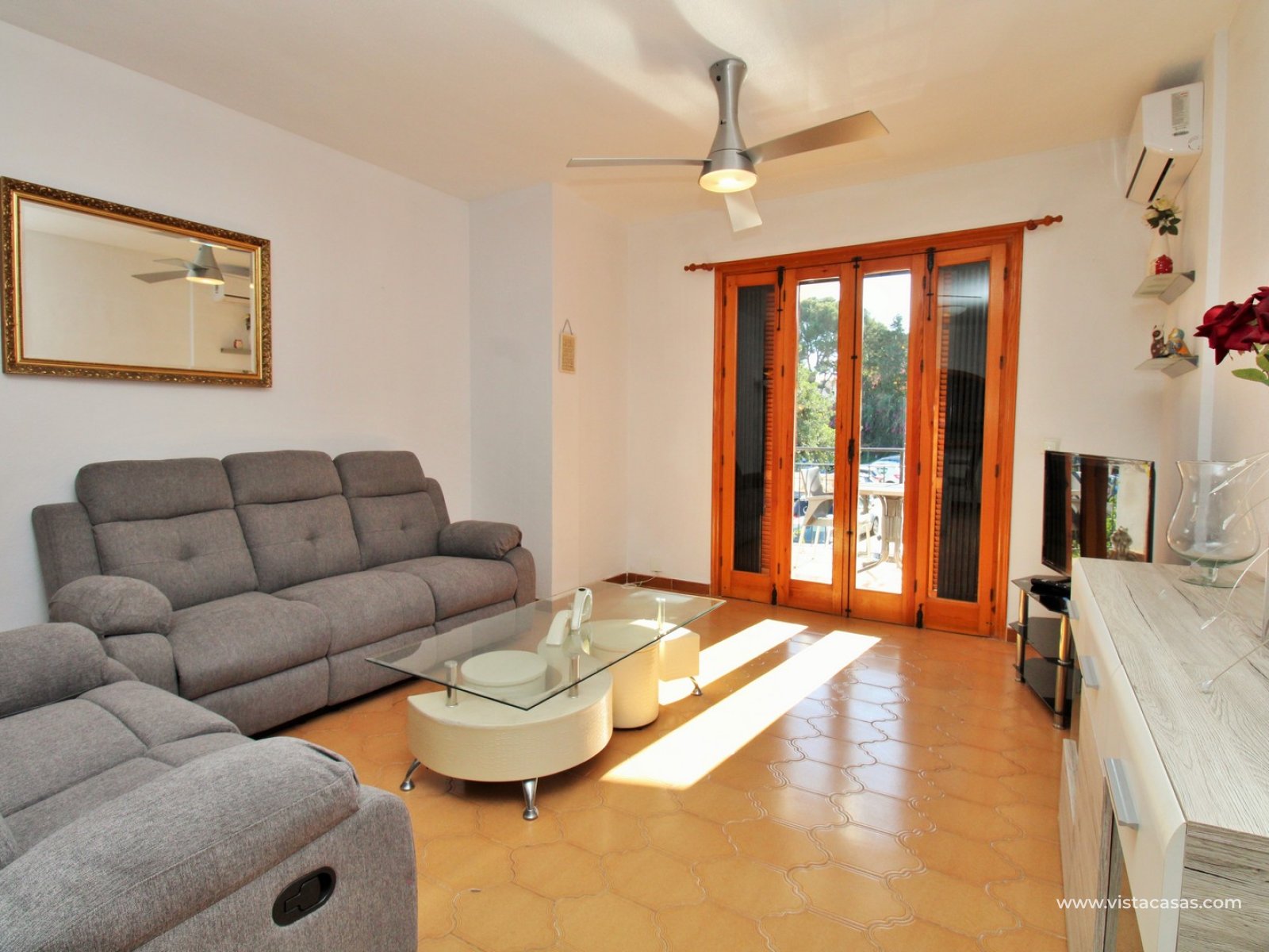 El apartamento cuenta con un recibidor que da paso a un salón-comedor muy luminoso con puertas francesas que se abren a un balcón cubierto y soleado. Dispone de una cocina independiente, dos dormitorios dobles con armarios empotrados y un baño moderno reformado con ducha a ras de suelo. La propiedad también ofrece un práctico cuarto de utilidad/almacenamiento y está situada cómodamente en la primera planta.