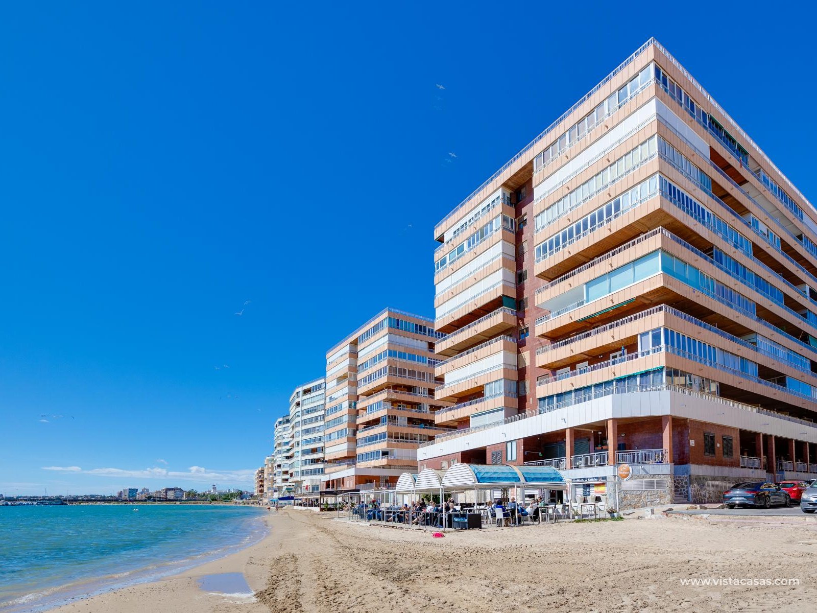 Te presentamos este magnífico apartamento totalmente reformado, situado en una 4ª planta exterior con ascensor. Con 94 m² construidos y orientación sur, este apartamento ofrece una gran luminosidad y hermosas vistas al mar. Además, cuenta con una terraza de 12 m² perfecta para disfrutar del clima y las vistas.Precio 289.000 €Ubicación Torrevieja, en primera línea de playaLa distribución incluye3 habitaciones (2 con cama doble, 1 con litera)2 baños completos modernos Salón-comedor luminoso con acceso a la terrazaCocina nueva y equipada con horno, microondas, lavavajillas, placa eléctrica y frigorífico grande con congeladorArmarios empotrados en todas las habitacionesCaracterísticas principalesAire acondicionado para un confort ideal durante todo el añoPiscina comunitaria (abierta de junio a octubre)Comercios cercanos supermercado, tiendas y una variada oferta de restaurantes a pocos pasosPlanta 4ª exterior con vistas directas al marTerraza de 12 m² para disfrutar del exteriorEste apartamento está en excelente estado, listo para entrar a vivir. Además, se encuentra a solo 40 minutos en coche del aeropuerto de Alicante.Una oportunidad única para disfrutar del sol, la playa y la tranquilidad en una ubicación privilegiada en Torrevieja. Perfecto como vivienda habitual, segunda residencia o para alquiler vacacional.