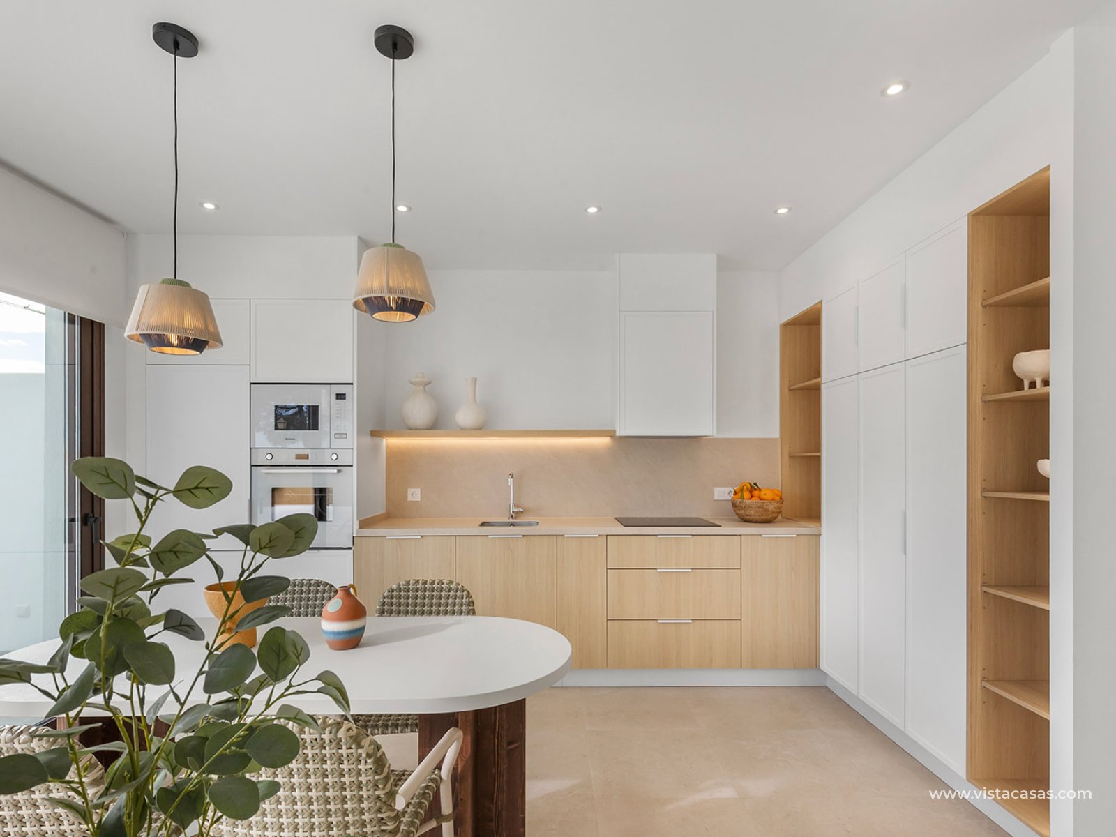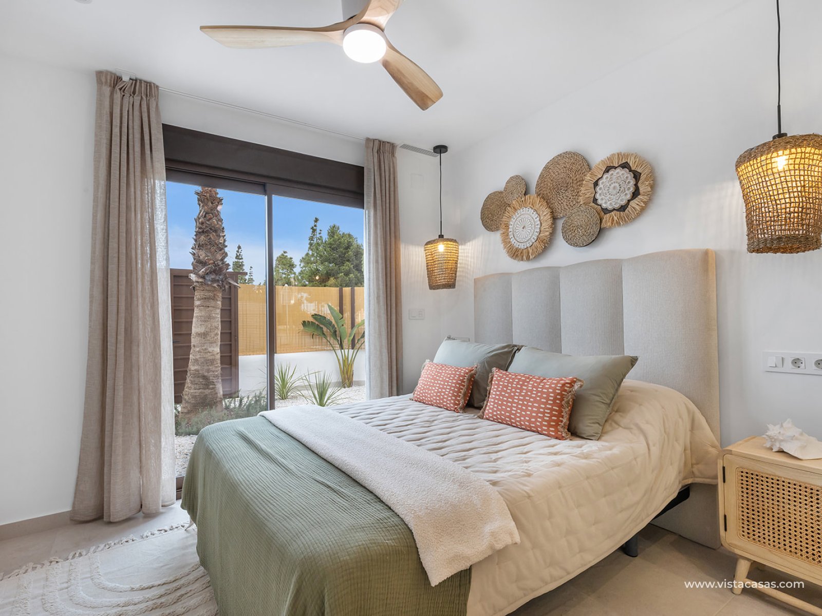 El interior de los bungalows está cuidadosamente diseñado para ofrecer confort y estilo. Con tres dormitorios y dos baños, cada propiedad está equipada para satisfacer las necesidades de una familia moderna. Los suelos de gres porcelánico aportan un toque de elegancia y son fáciles de mantener. La cocina está equipada con electrodomésticos, facilitando la vida diaria desde el primer día. Los armarios empotrados en los dormitorios proporcionan un almacenamiento eficiente, mientras que la preinstalación de aire acondicionado asegura que el hogar se mantenga fresco durante los meses más cálidos. La distribución interna está pensada para optimizar el espacio y la funcionalidad.