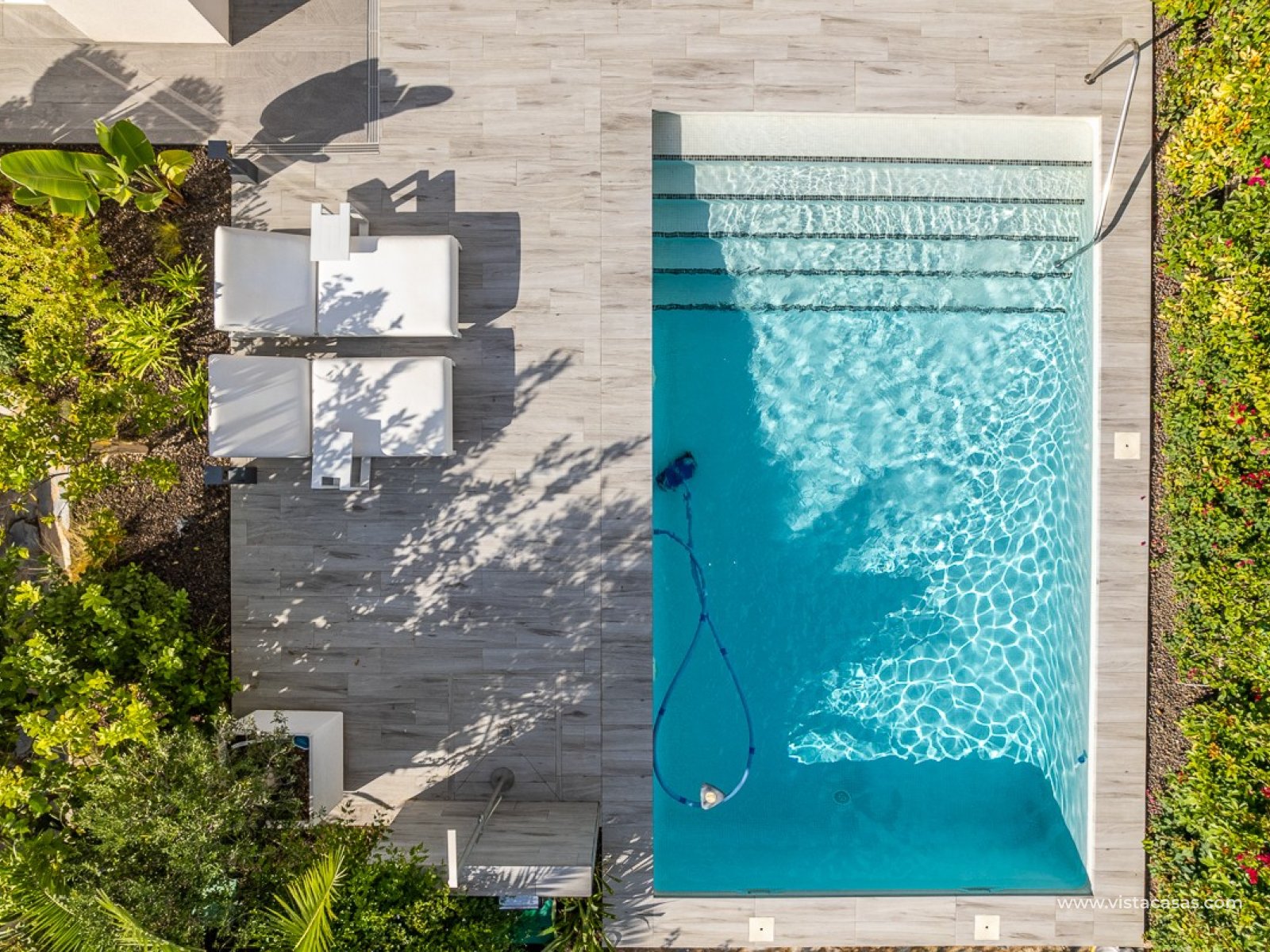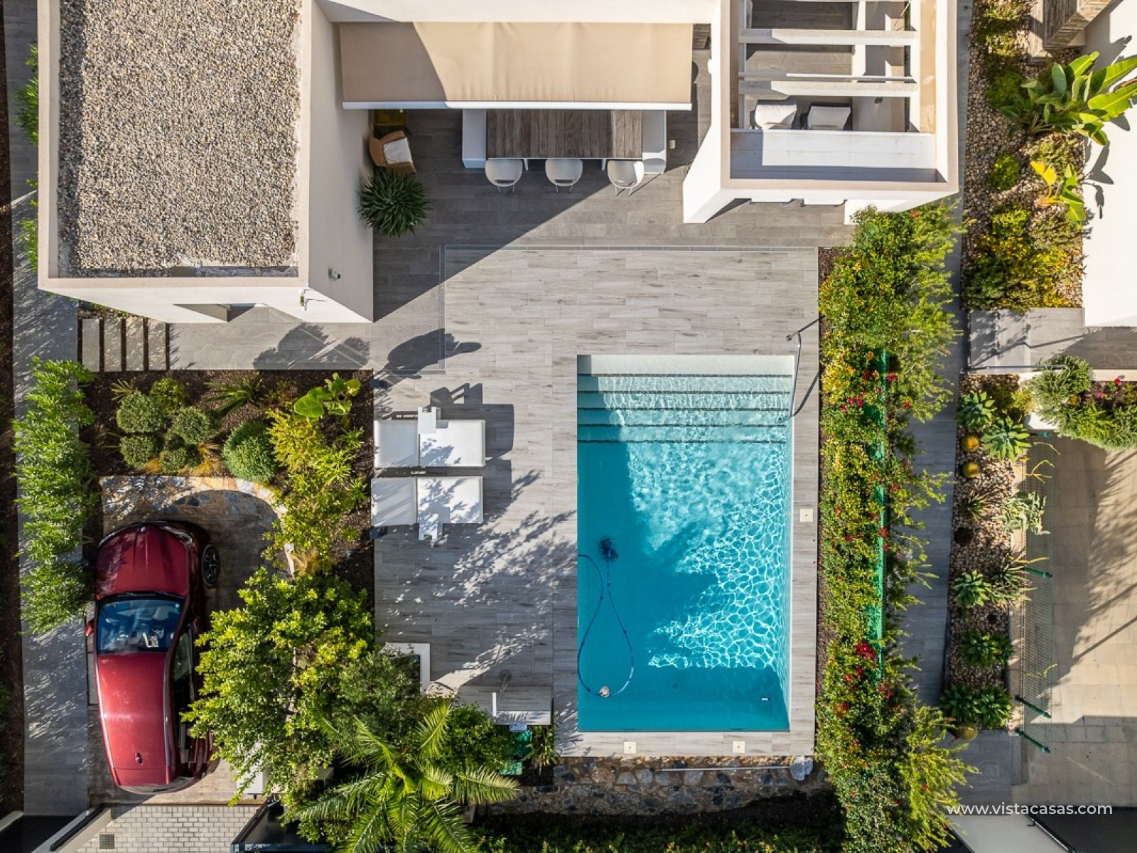 Aire acondicionado frío/calor por zonas Calefacción por suelo radiante en los baños. Sistema de seguridad con videovigilancia automatización del hogar inteligente persianas eléctricas Piscina privada con ducha exterior Punto de carga para vehículos eléctricos Toldos eléctricos múltiples Parking privado con portón automático Jardín colorido con árboles frutales. Extras de alta tecnología en toda la casa.