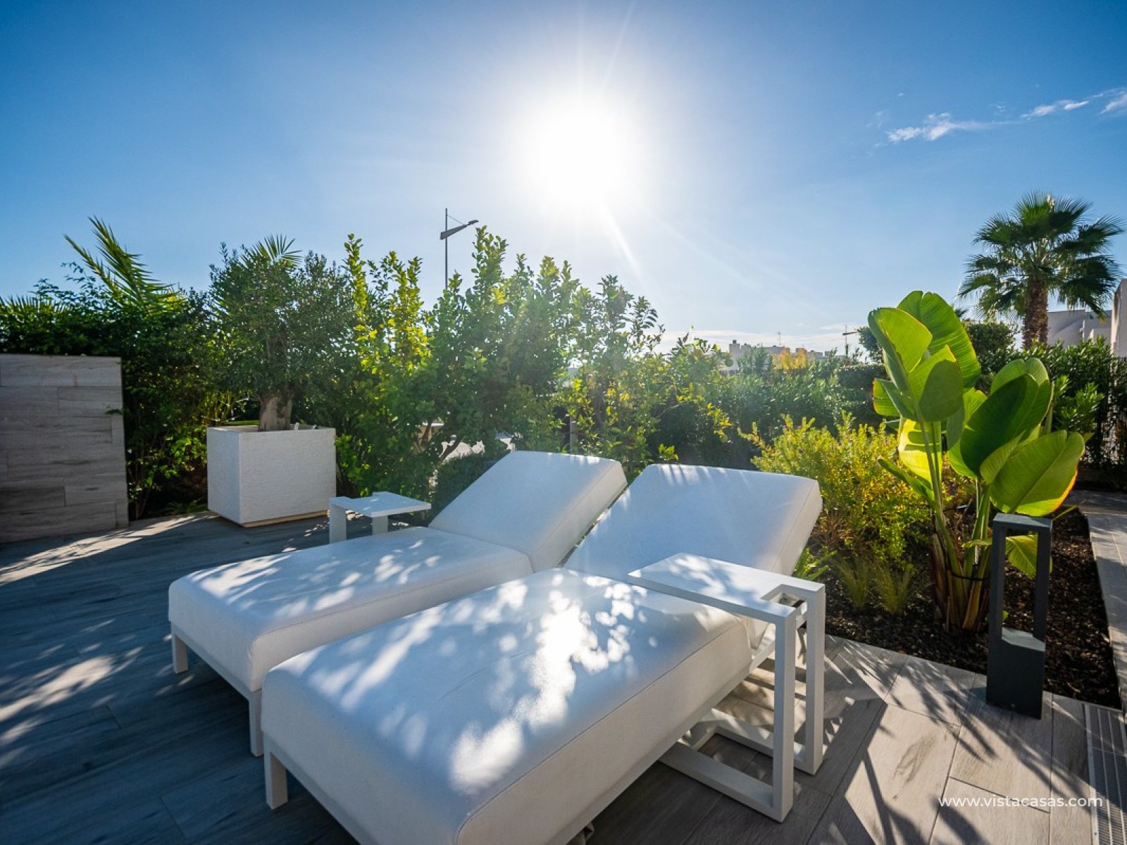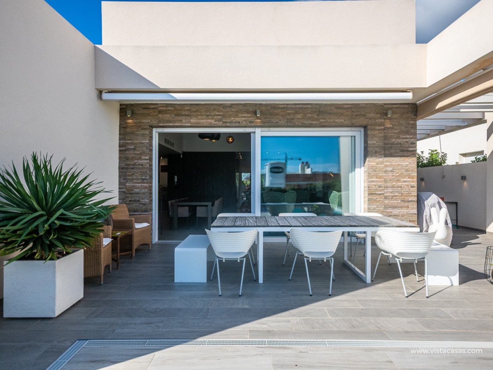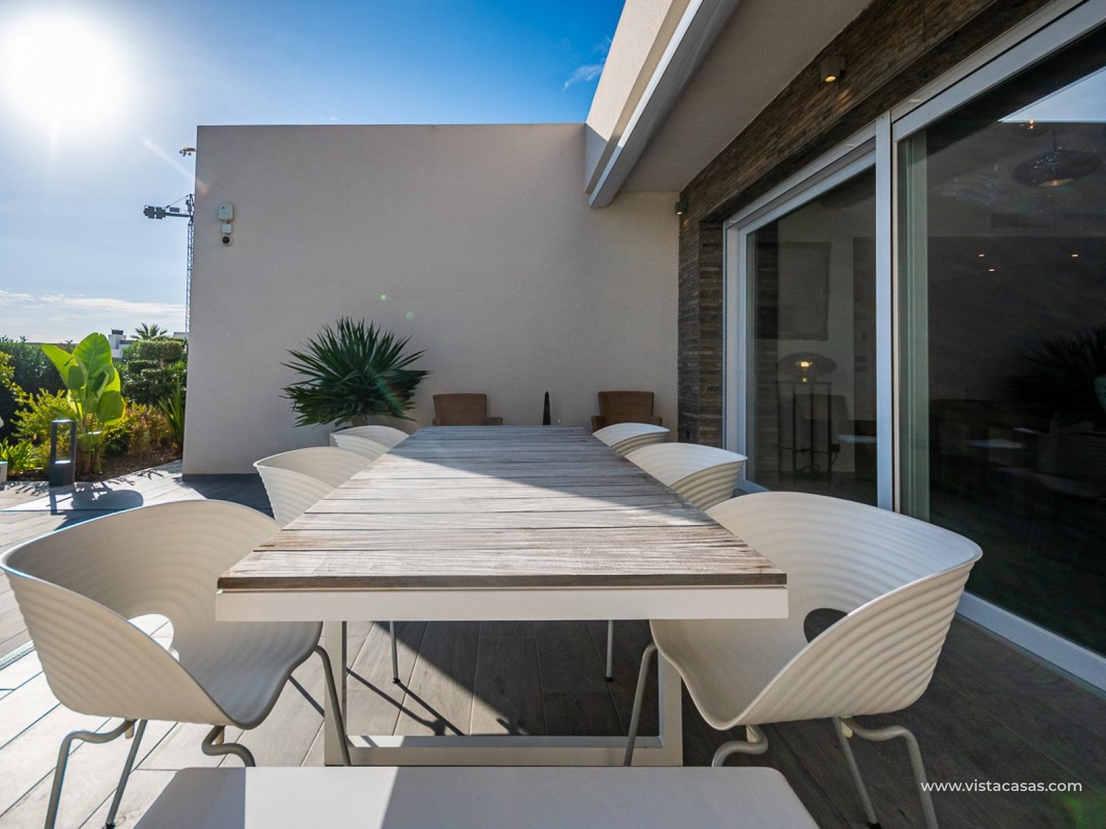 La terraza, parcialmente cubierta por una elegante pérgola con toldos eléctricos , es el lugar ideal para relajarse o entretenerse: un entorno perfecto para disfrutar del clima mediterráneo durante todo el año.
