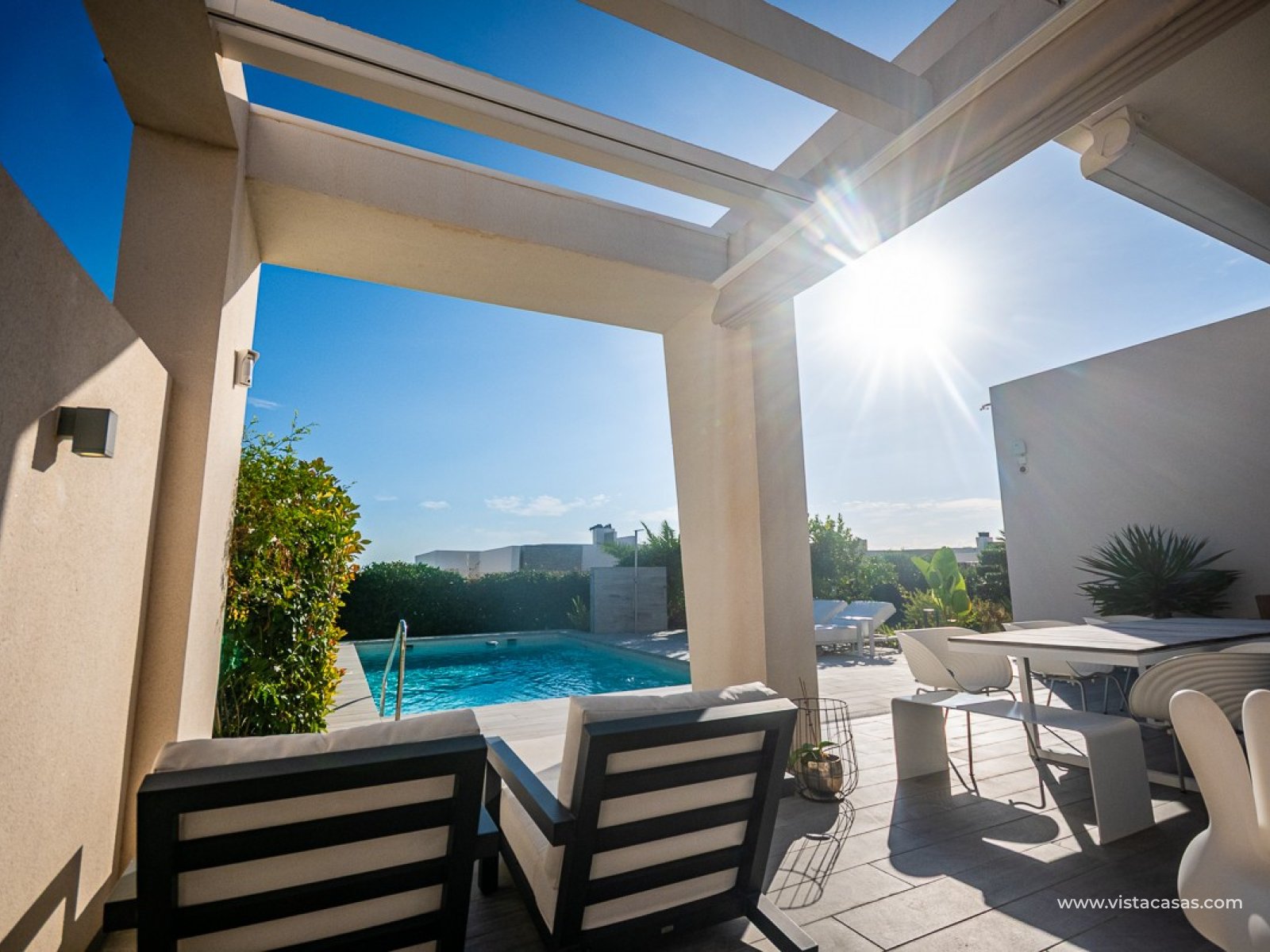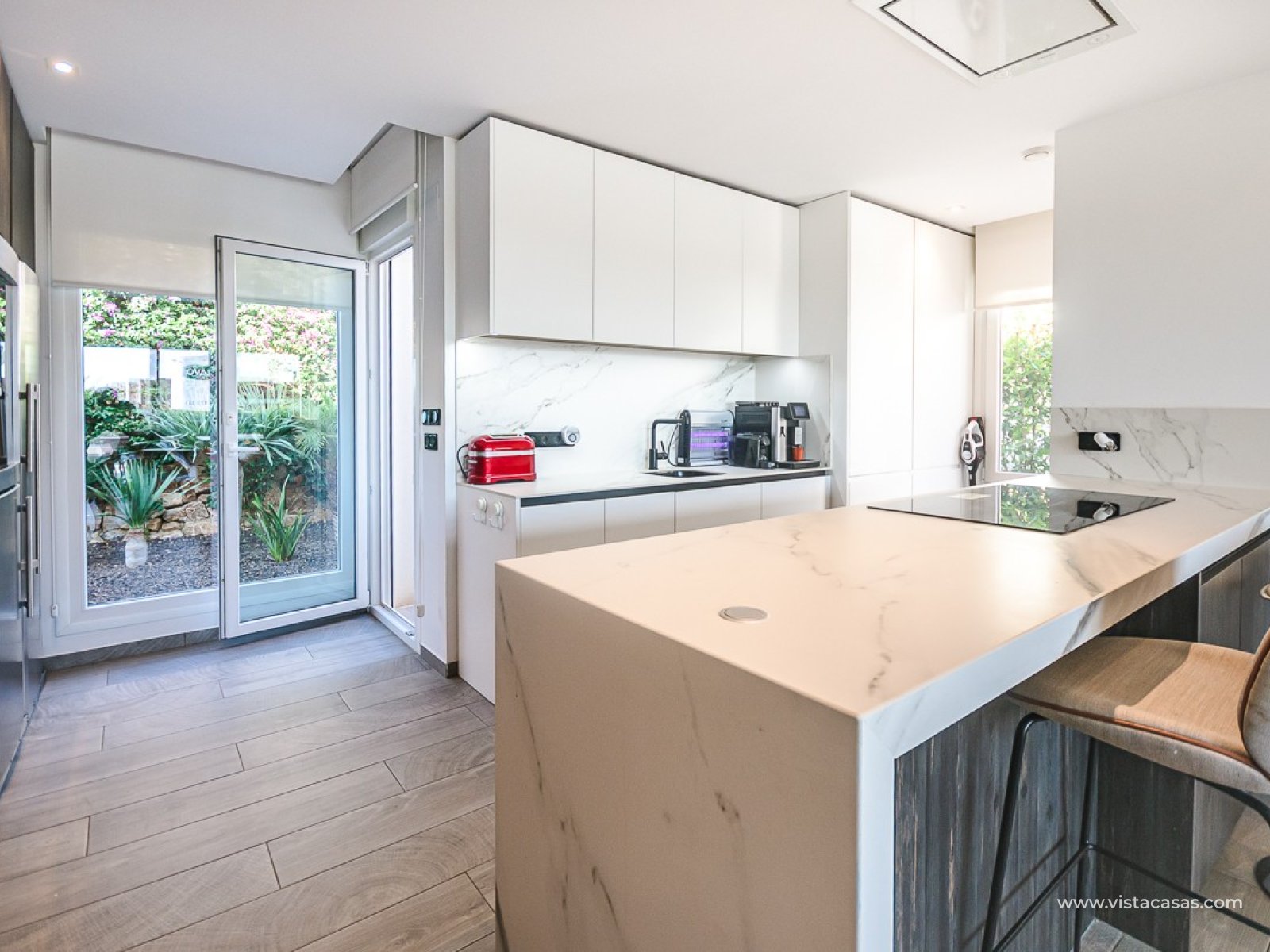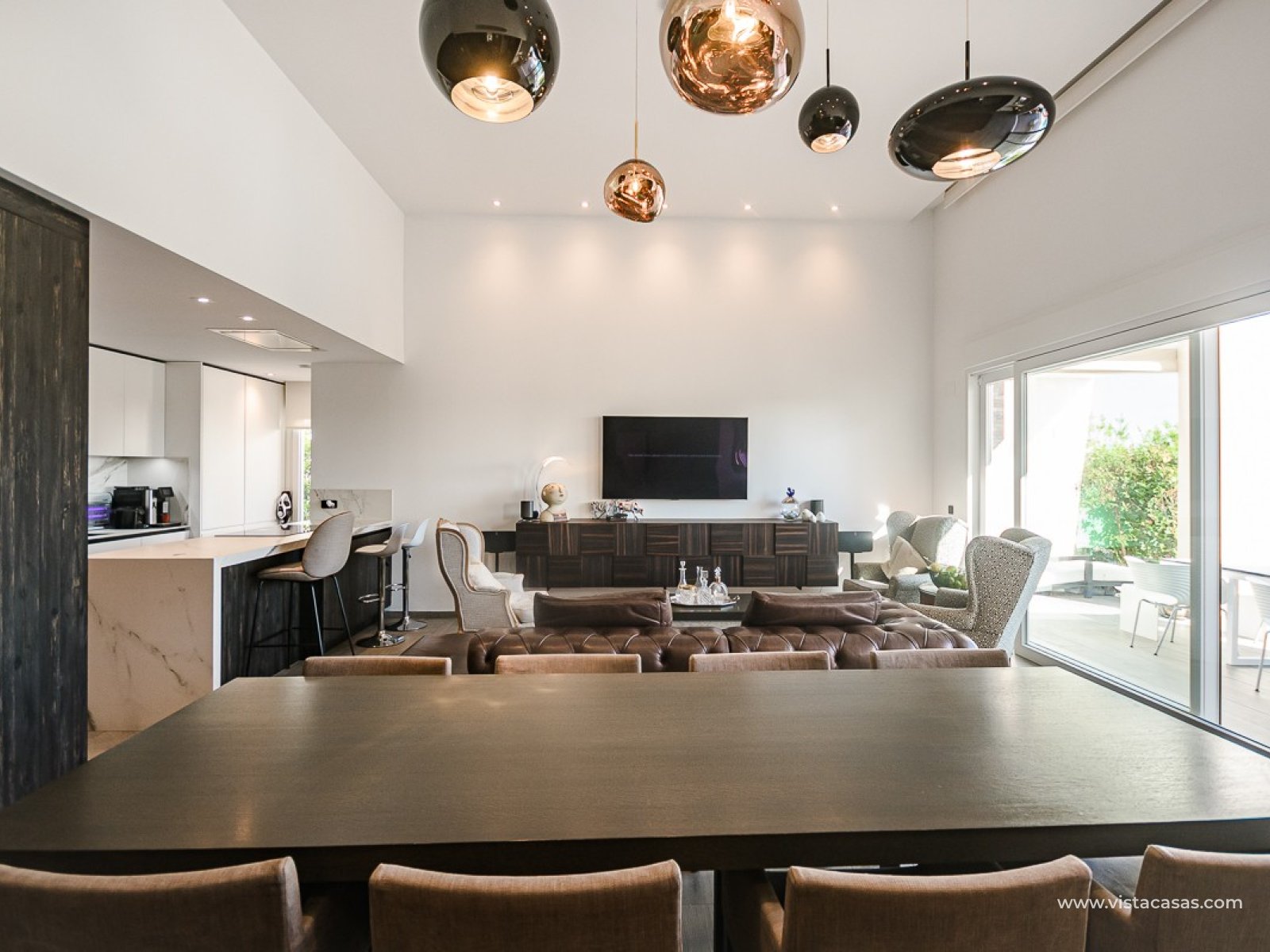 Esta villa única , situada en una espaciosa parcela de 500 m² , ofrece una combinación perfecta de confort moderno y encanto mediterráneo. Su luminosa distribución diáfana conecta a la perfección la sala de estar, la cocina y el comedor , todo ello con acceso a una impresionante terraza en forma de L , un precioso jardín paisajístico y una piscina privada . Gracias a sus amplios ventanales, la luz natural inunda cada rincón de la casa, creando un ambiente cálido y acogedor.
