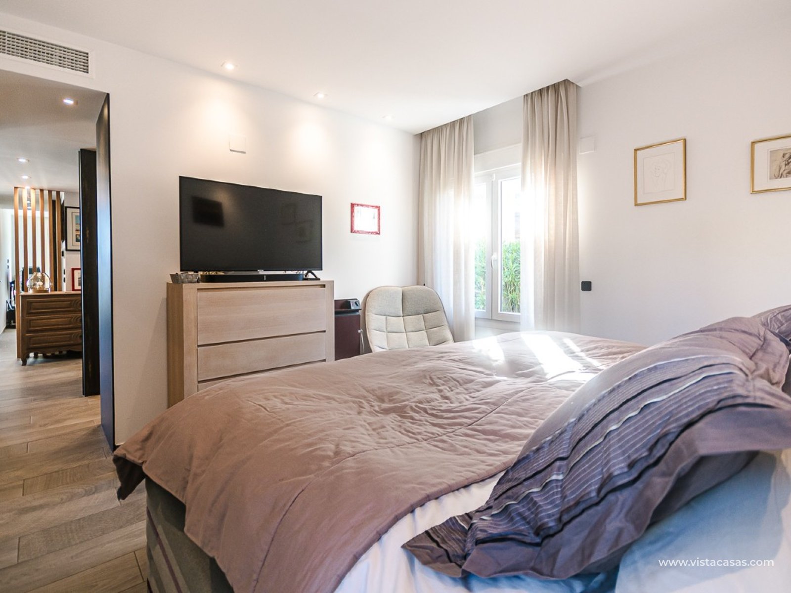 Originalmente diseñada con tres dormitorios , los actuales propietarios han adaptado la distribución a una configuración más espaciosa de dos dormitorios . Con un mínimo esfuerzo, la villa puede reconvertirse fácilmente en una casa de tres dormitorios. El tercer dormitorio puede reconstruirse si el comprador lo desea.