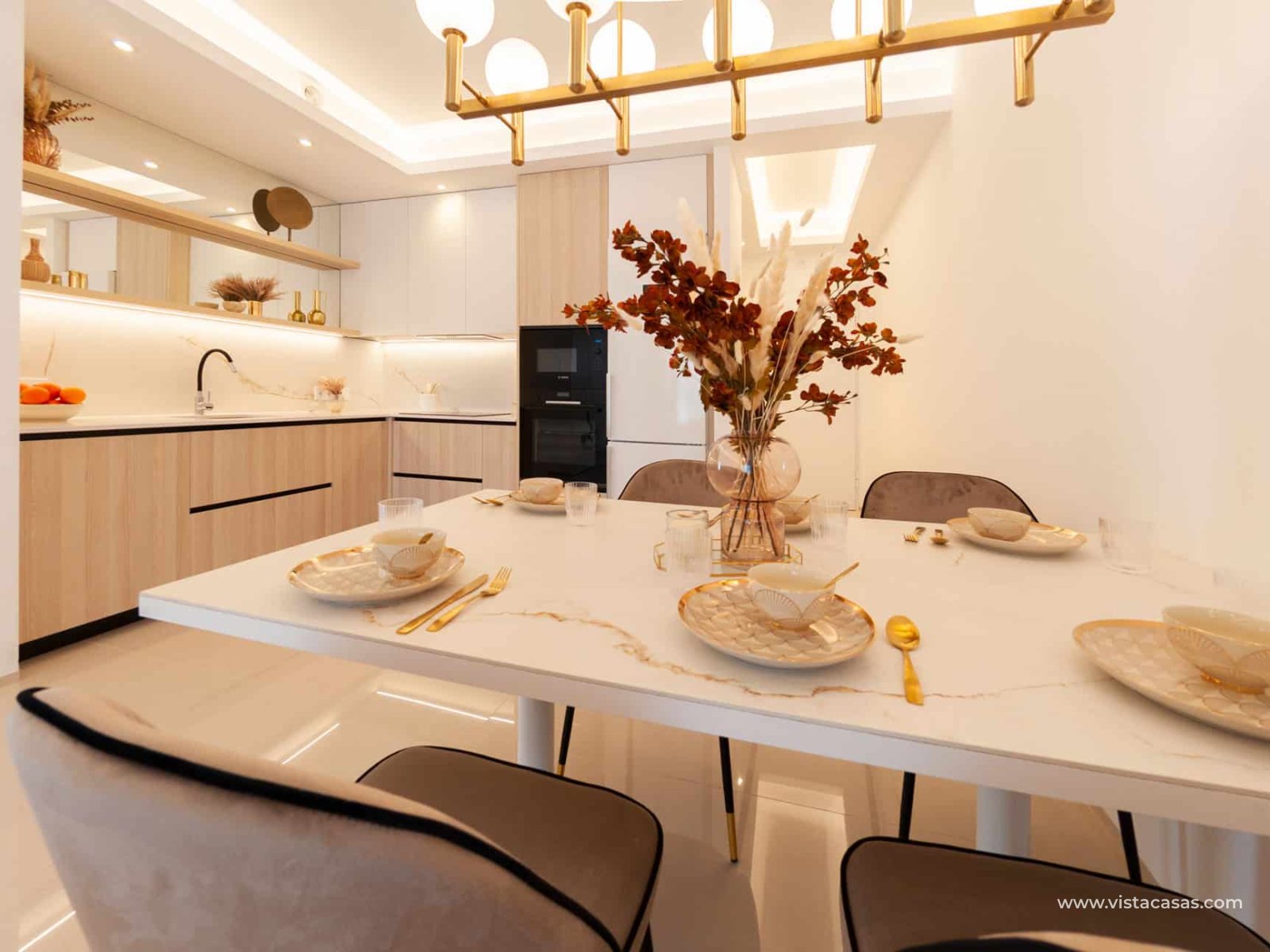 L'intérieur des logements est conçu pour offrir confort et fonctionnalité. Chaque propriété dispose de 3 chambres, offrant suffisamment d'espace pour des familles de différentes tailles. Les salles de bains, disponibles en options de 2 ou 3, sont équipées de finitions modernes. Les cuisines sont entièrement équipées d'appareils électroménagers, facilitant la vie quotidienne. Les placards intégrés dans les chambres offrent un rangement efficace, gardant l'espace ordonné et sans encombrement. De plus, certaines propriétés incluent un jacuzzi, ajoutant une touche de luxe et de détente à la maison.