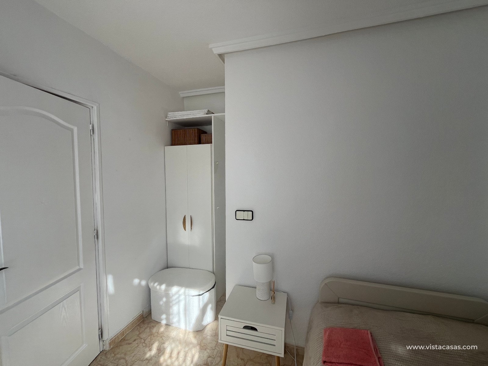 Cette charmante maison de ville de 3 chambres et 2 salles de bain, orientée sud-est, est située dans le quartier prisé de Punta Prima, sur la Costa Blanca , et est proposée à la vente en excellent état. Vendue partiellement meublée, elle offre un cadre de vie lumineux et confortable, idéal pour des vacances ou une résidence principale. Le rez-de-chaussée comprend un salon/salle à manger spacieux et lumineux, équipé d' une climatisation réversible , créant un espace accueillant propice à la détente. La cuisine américaine moderne communique harmonieusement avec le séjour et est complétée par une buanderie séparée , offrant un espace de rangement supplémentaire appréciable. On trouve également à ce niveau deux chambres doubles , chacune dotée d' une armoire intégrée , ainsi qu'une salle de douche familiale contemporaine. À l'avant de la maison, une terrasse offre l'endroit idéal pour profiter du soleil matinal, tandis que le jardin avant et latéral offre un vaste espace extérieur et comprend un abri de jardin pratique. Un escalier intérieur mène à l'étage supérieur, où se trouve la chambre principale . Celle-ci est équipée de placards intégrés, de la climatisation réversible et donne accès à un balcon privé offrant une jolie vue sur la piscine commune . Cet étage comprend également une salle de douche et une porte arrière supplémentaire qui s'ouvre directement sur le solarium privé , idéal pour bronzer, se détendre ou profiter du climat méditerranéen. L'appartement est idéalement situé juste en face de la piscine commune , offrant un accès facile et une vue dégagée agréable. Situé à proximité des commodités locales, des plages, des restaurants et des supermarchés, ce bungalow allie confort, commodité et un excellent espace extérieur dans l'une des zones côtières les plus populaires de la Costa Blanca. Pourquoi choisir Solmar Estates ? Nous sommes fiers d'être membres de l'API (Agente de la Propiedad Inmobiliaria), une association présente dans l'immobilier espagnol depuis de nombreuses années. L'adhésion à l'API est un engagement des agents immobiliers qui implique des obligations en matière de formation, d'expérience et de respect d'un code de déontologie rigoureux. Notre adhésion à l'API offre à nos acheteurs et vendeurs des garanties maximales quant à notre professionnalisme et nos qualifications. Numéro d'enregistrement API : 00280. Pour plus d'informations, cliquez sur le lien ci-dessous. https://tinyurl.com/4hnan8af