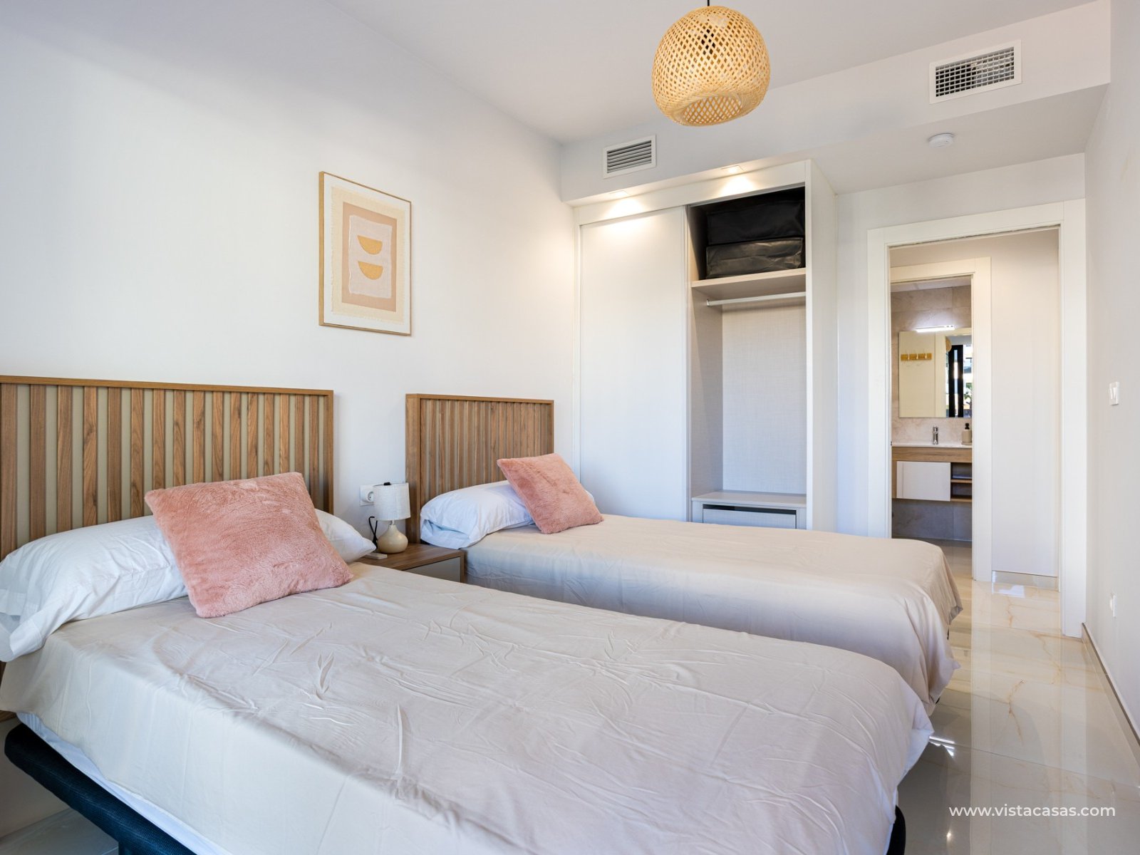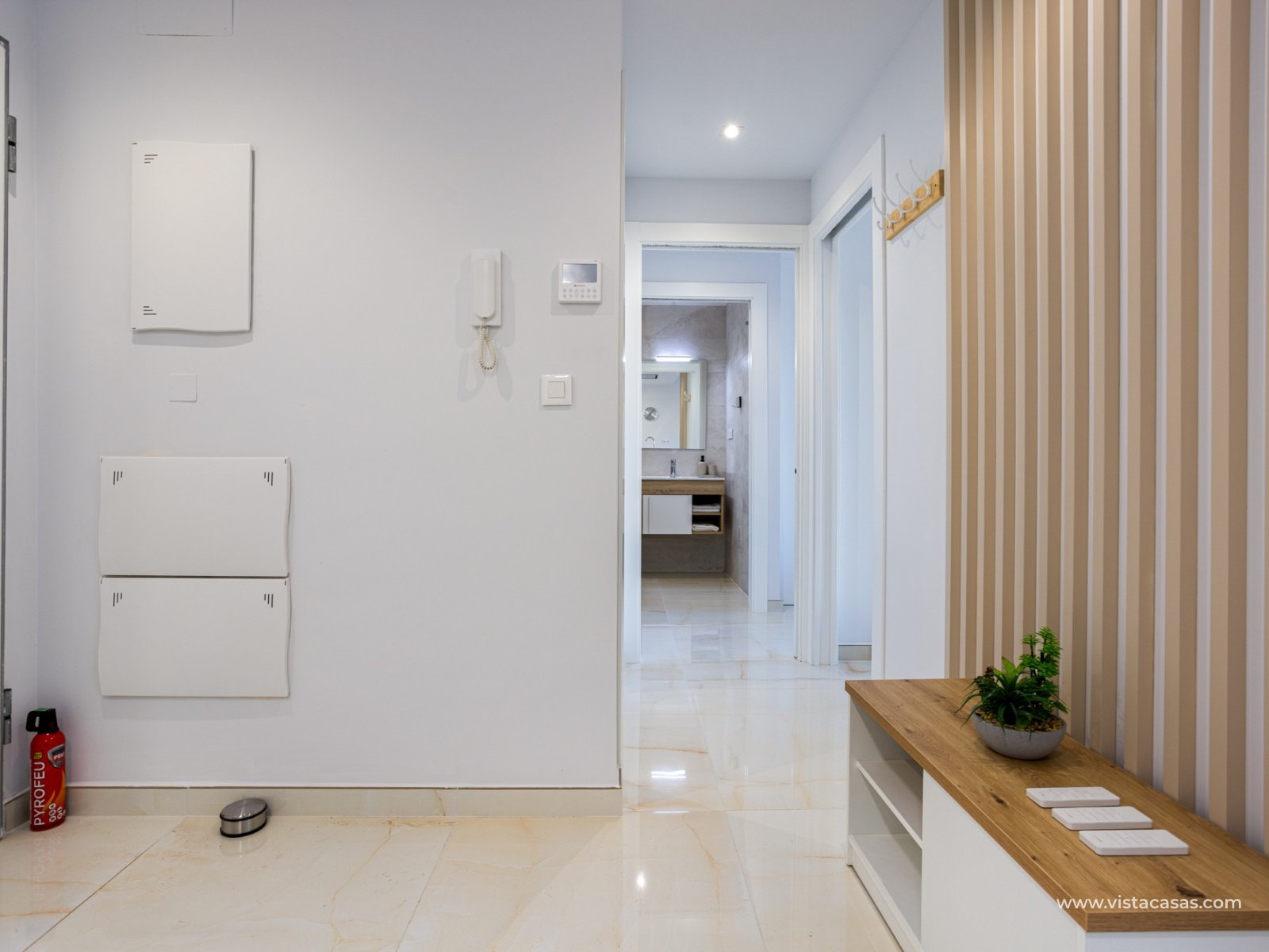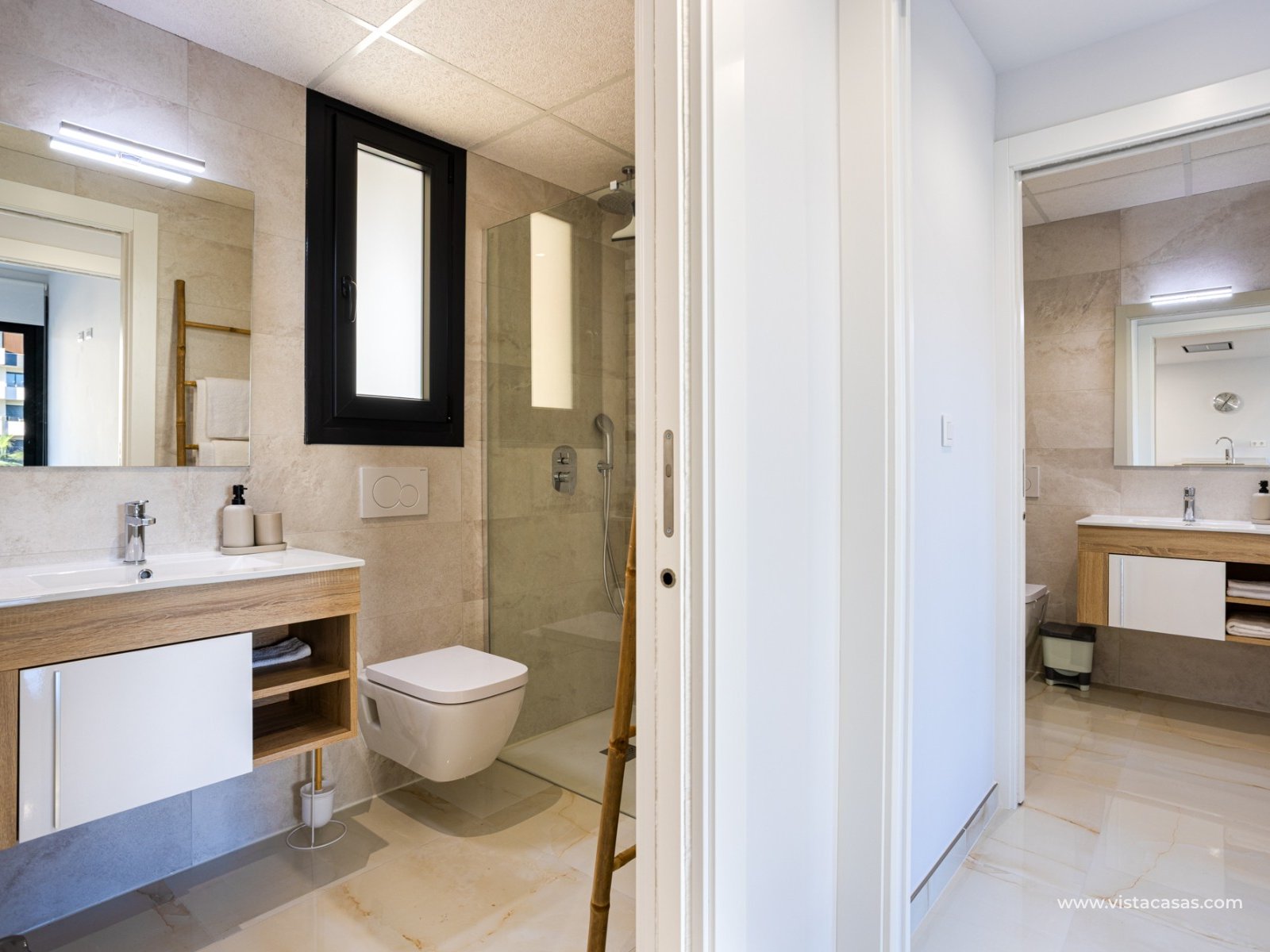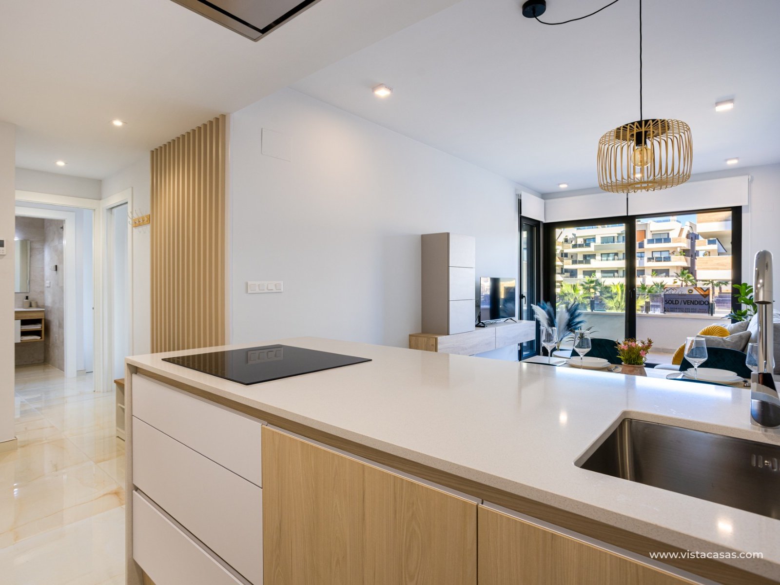 Découvrez ce lumineux appartement moderne au deuxième étage d'un immeuble neuf de moins de six mois à Orihuela Costa ! Conçu pour un confort optimal, il allie lignes épurées, espaces ouverts et finitions modernes, créant une sensation d'espace et de bien-être dans chaque recoin. Dès l'entrée, vous êtes accueilli par un espace de vie ouvert comprenant salon et salle à manger, baigné de lumière naturelle grâce à la terrasse. Cet espace se prolonge harmonieusement vers la cuisine américaine, entièrement équipée d'appareils électroménagers haut de gamme, idéale pour ceux qui recherchent la fonctionnalité sans sacrifier le style. L'appartement dispose de deux chambres spacieuses, chacune dotée de placards intégrés qui optimisent l'espace et ajoutent une touche d'élégance à l'ensemble. Les deux salles de bains modernes et élégantes bénéficient de finitions de haute qualité, créant une atmosphère relaxante et raffinée. Les atouts qui font la différence : Ce bien est prêt à emménager et est vendu entièrement meublé, comme le montrent les photos. Décoré avec goût, il est conçu pour créer une atmosphère chaleureuse et accueillante. La climatisation assure un confort optimal toute l'année. Porte blindée et interphone pour une sécurité renforcée. Accès direct par ascenseur à tous les étages. Espaces extérieurs parfaits pour profiter du climat méditerranéen. La résidence offre une magnifique piscine commune, idéale pour se détendre, bronzer ou passer du temps en famille. Elle comprend également un garage souterrain privé avec une place de parking, ainsi qu'un débarras, parfait pour du rangement supplémentaire. Emplacement stratégique à Orihuela Costa La propriété bénéficie d'un emplacement privilégié, à proximité de toutes les commodités et attractions : Plage : à seulement 8 minutes, idéale pour des excursions à la journée. Lieux de loisirs, restaurants et commerces : à 3 minutes. Terrains de golf internationaux : à 7 minutes. Aéroport : à 40 minutes, avec un accès facile aux vols nationaux et internationaux.