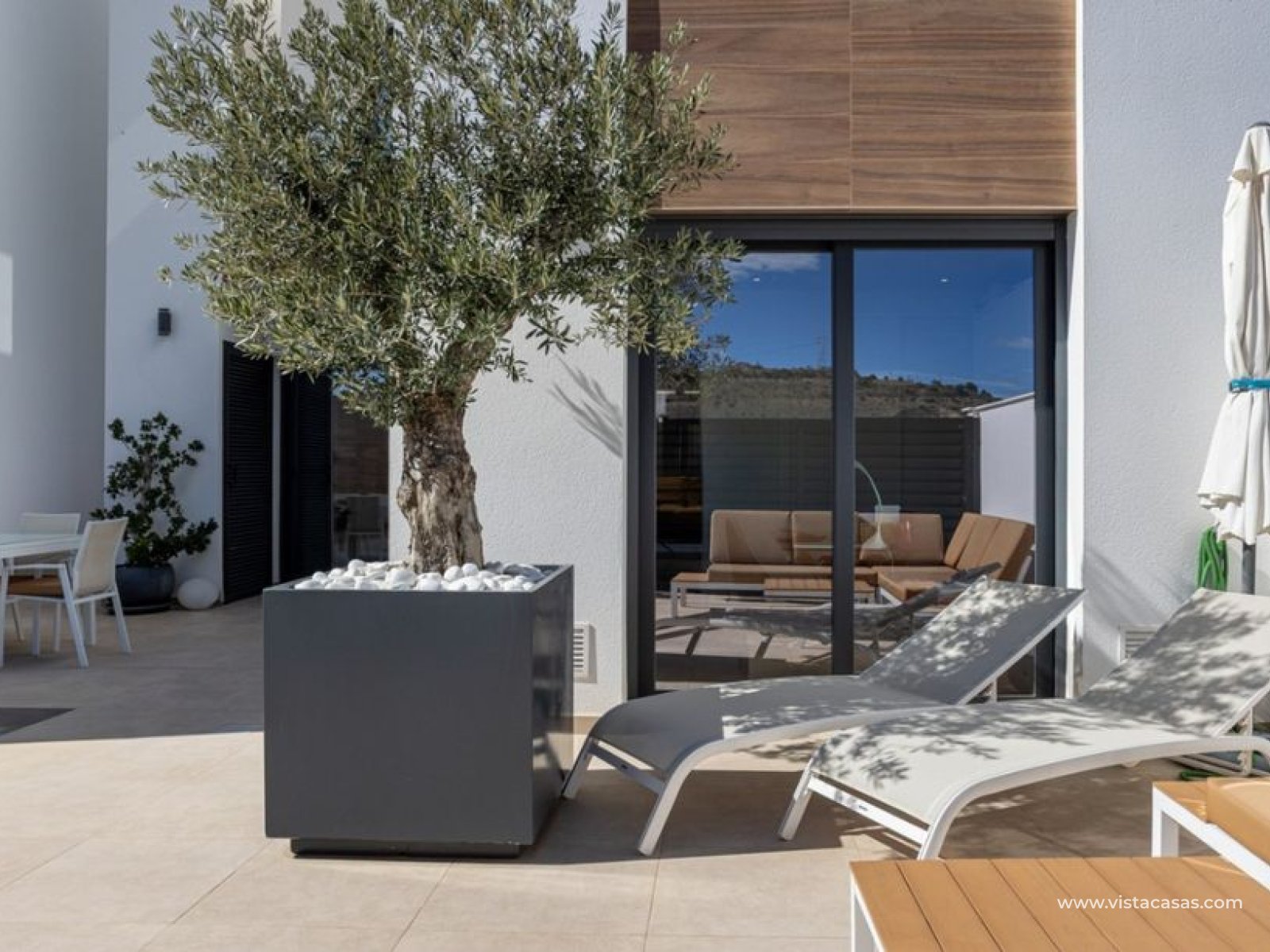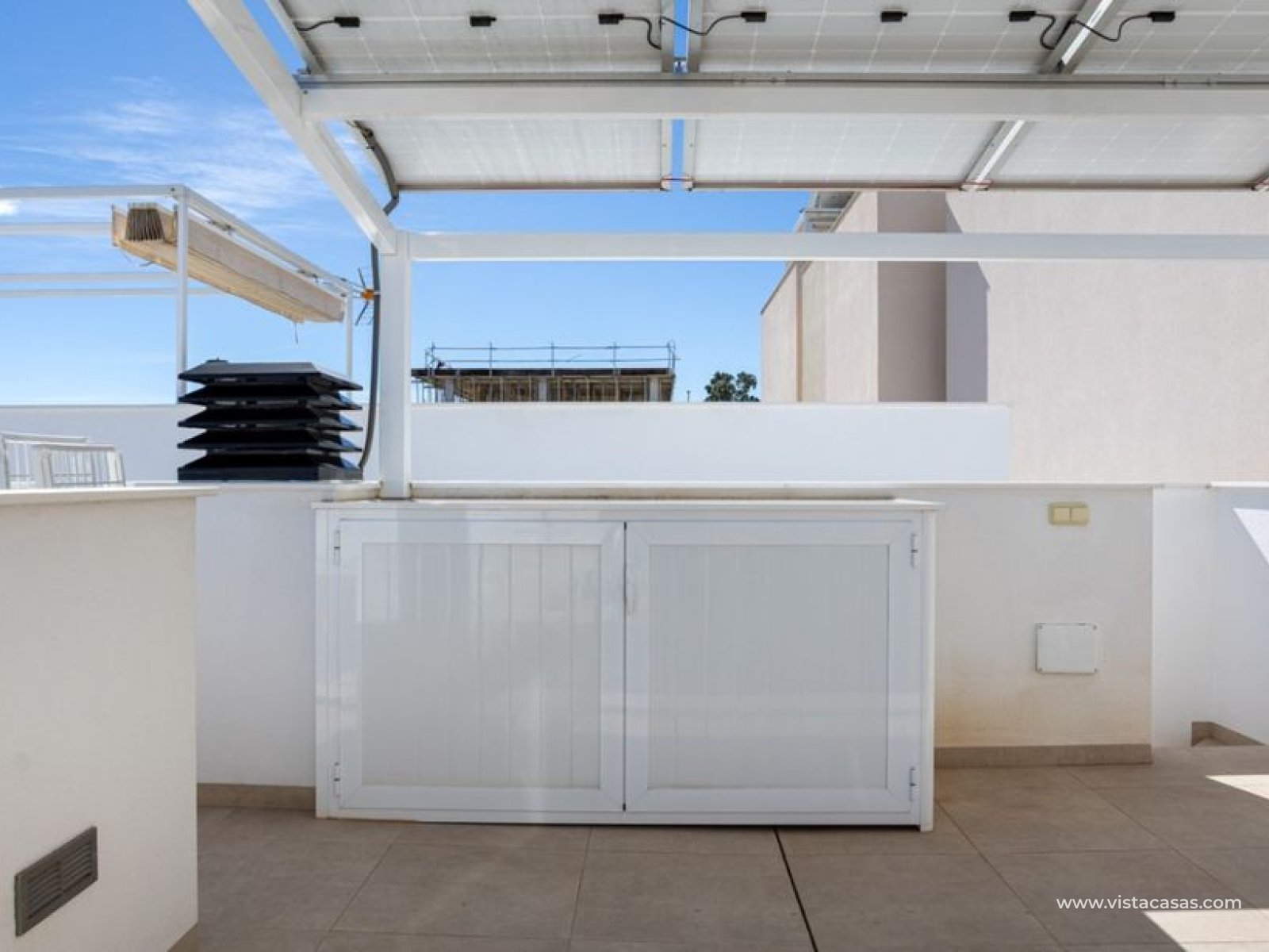 Maison de ville de 3 chambres et 3 salles de bain à Benijofar, Alicante. Découvrez cette élégante maison de ville à Benijofar, Alicante, offrant trois chambres et trois salles de bain dans un emplacement privilégié sur la Costa Blanca Sud. Construite en 2018, cette propriété de style bénéficie d'une situation idéale face à un parc protégé, garantissant une vue dégagée, une intimité totale et une tranquillité absolue, aucun projet de construction n'étant prévu dans le secteur. La maison se trouve à quelques pas du centre-ville, avec ses nombreux restaurants, boutiques et commerces de proximité. À l'intérieur, la maison dispose d'un espace de vie lumineux et ouvert comprenant un salon et une salle à manger, communiquant harmonieusement avec une cuisine moderne et entièrement équipée. De grandes fenêtres inondent l'espace de lumière naturelle et donnent accès à une terrasse et à une piscine privée chauffée par pompe à chaleur, idéale pour se détendre ou recevoir. Les trois chambres avec salle de bain privative offrent des espaces modulables : l'une peut servir de dressing, une autre de bureau, et peut facilement être reconvertie en chambres à part entière, offrant ainsi une grande flexibilité pour les familles ou les invités. Profitez pleinement de la vie en plein air grâce à un spacieux solarium sur le toit offrant une vue panoramique, ainsi qu'à une terrasse, un balcon et un jardin privé entourant la piscine chauffée. La maison bénéficie d'améliorations écoénergétiques telles que des panneaux solaires et une borne de recharge pour véhicule électrique, alliant confort et durabilité. Vendue entièrement meublée et prête à emménager, cette propriété combine le confort moderne et une vue imprenable sur les montagnes, ce qui en fait la maison idéale pour ceux qui recherchent une résidence élégante et clé en main dans un emplacement privilégié. Chambres : 3 Salles de bain : 3 Surface habitable : 127 m² Terrain : 197 m² Orientation : Est Année de construction : 2018 Propriété clé en main Climatisation Entièrement meublée Piscine privée chauffée Panneaux solaires Vue sur les montagnes Balcon Jardin Interphone Terrasse Débarras
