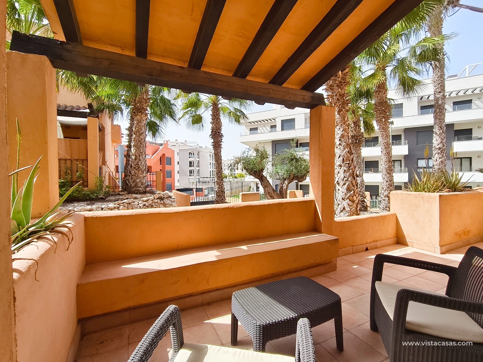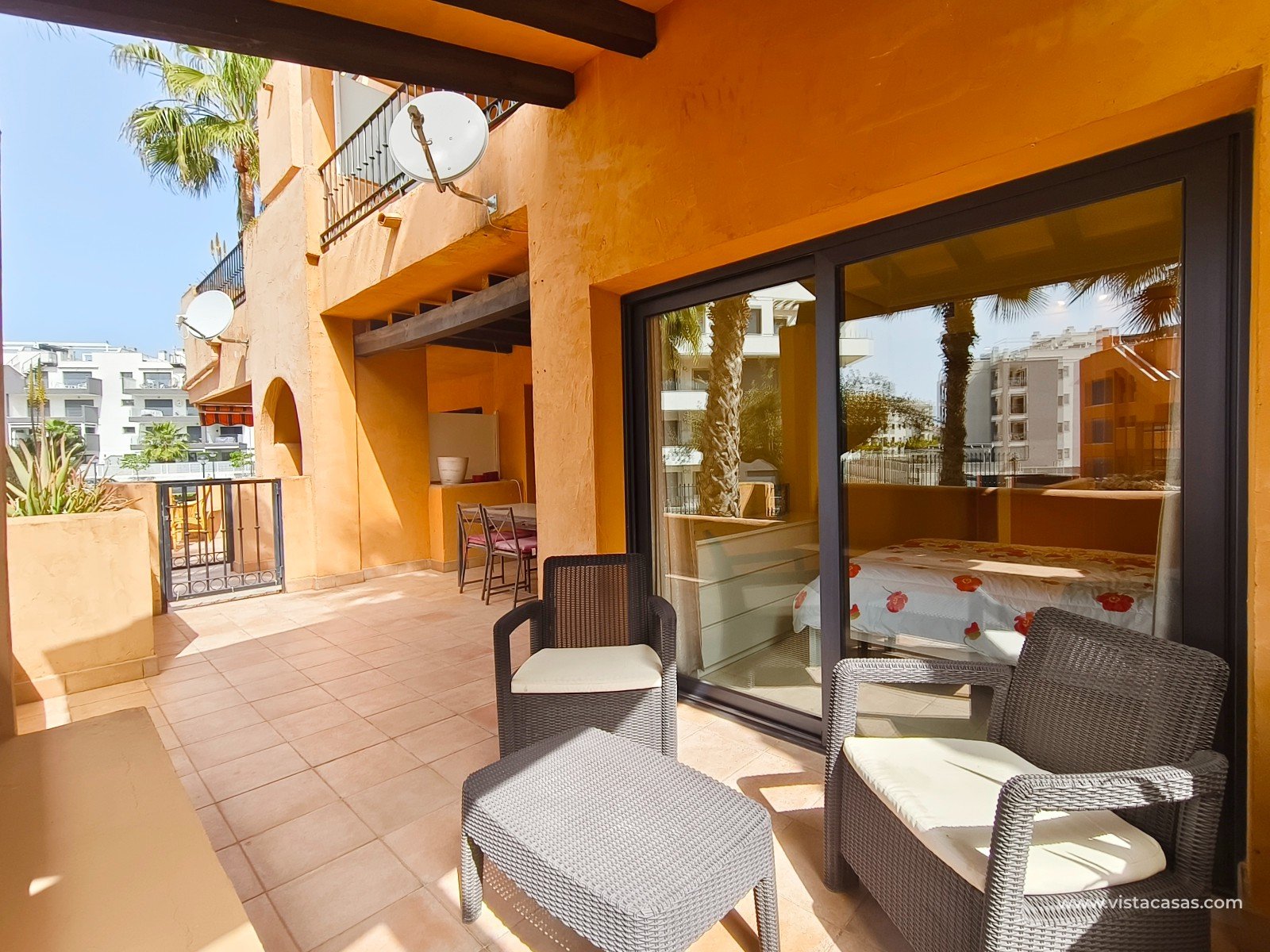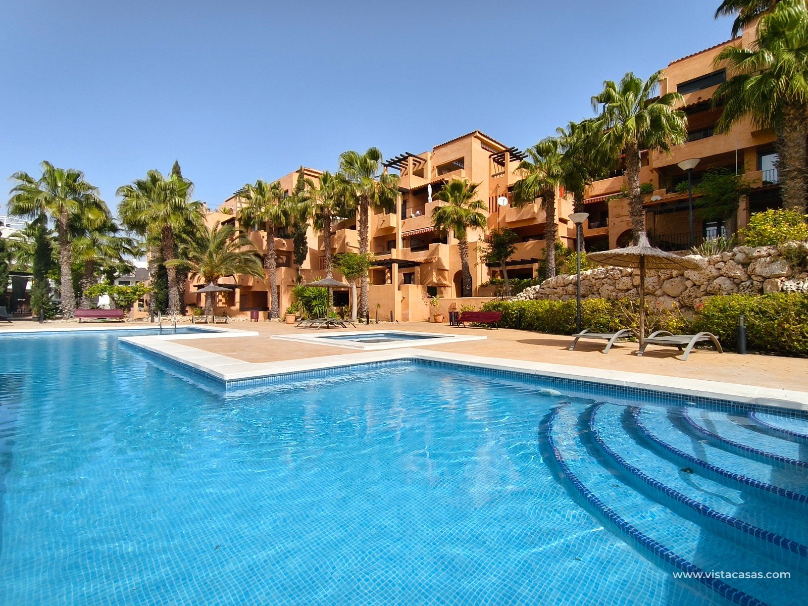 À Orihuela Costa, tout proche du golf de Villamartín, découvrez cet appartement en rez de chaussée, orienté plein sud, au sein d'un complexe avec piscine communautaire. L'appartement, vendu meublé, comprend deux chambres, deux salles de bain, une climatisation centralisée, ainsi que deux terrasses, dont la principale exposée plein sud. Le bien inclut également les électroménagers, une place de parking et une cave en sous-sol. Ne manquez pas cette opportunité rare, idéale pour une résidence principale ou un pied-à-terre ensoleillé. Contactez-nous dès maintenant pour plus d'informations ! Note légale: Le prix indiqué n'inclut pas les frais de notaire, d'enregistrement, les impôts (ITP) ni les autres frais liés à la vente. Un détail des frais supplémentaires vous sera fourni avant la réservation. Frais professionnels de l'agence INCLUS DANS LE PRIX.