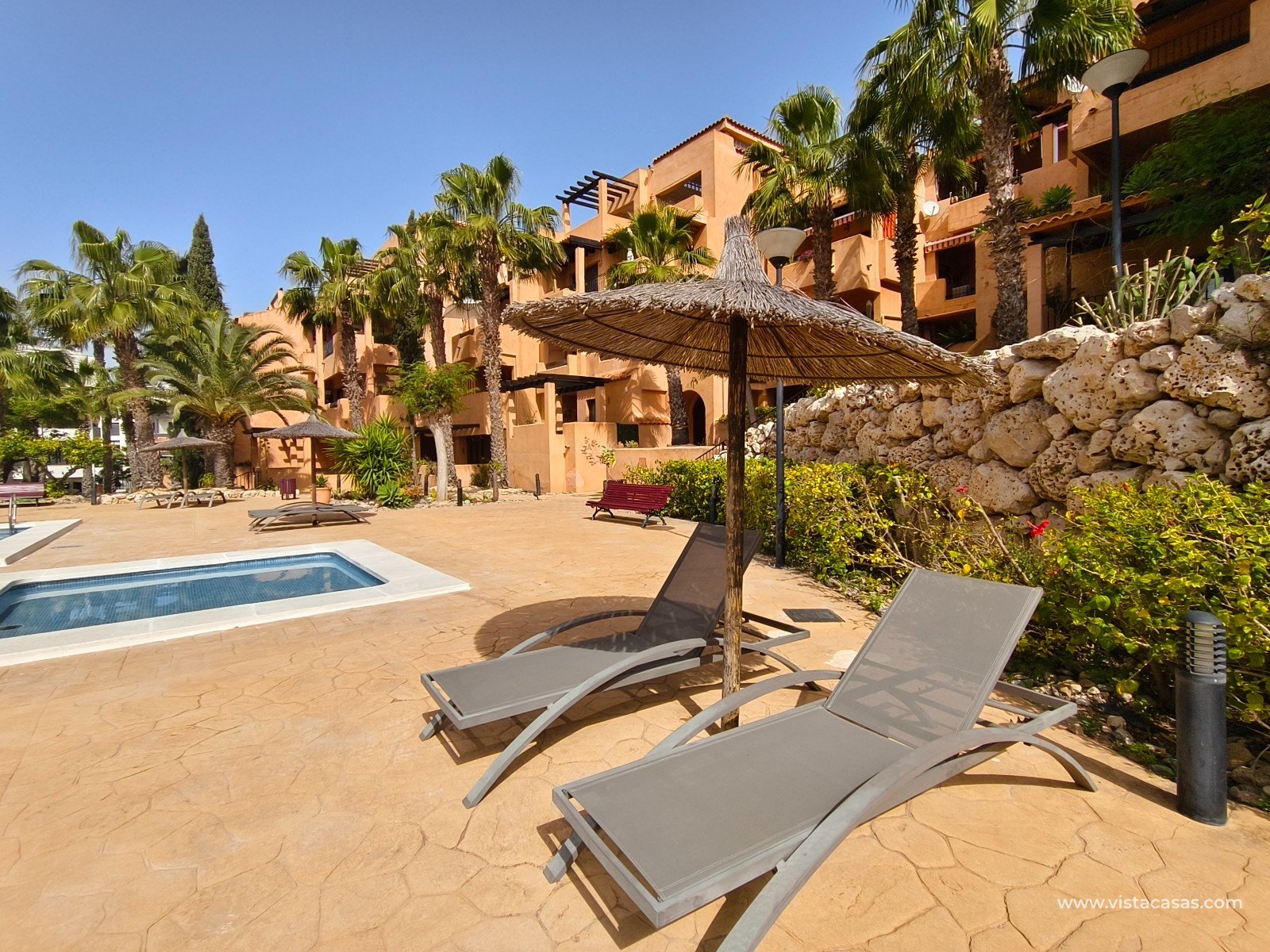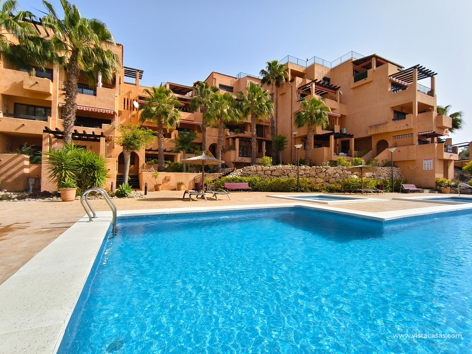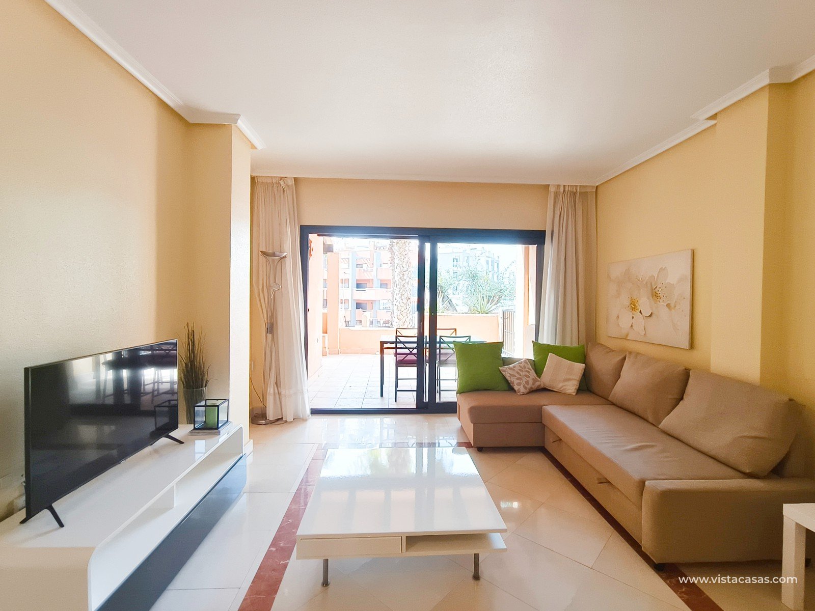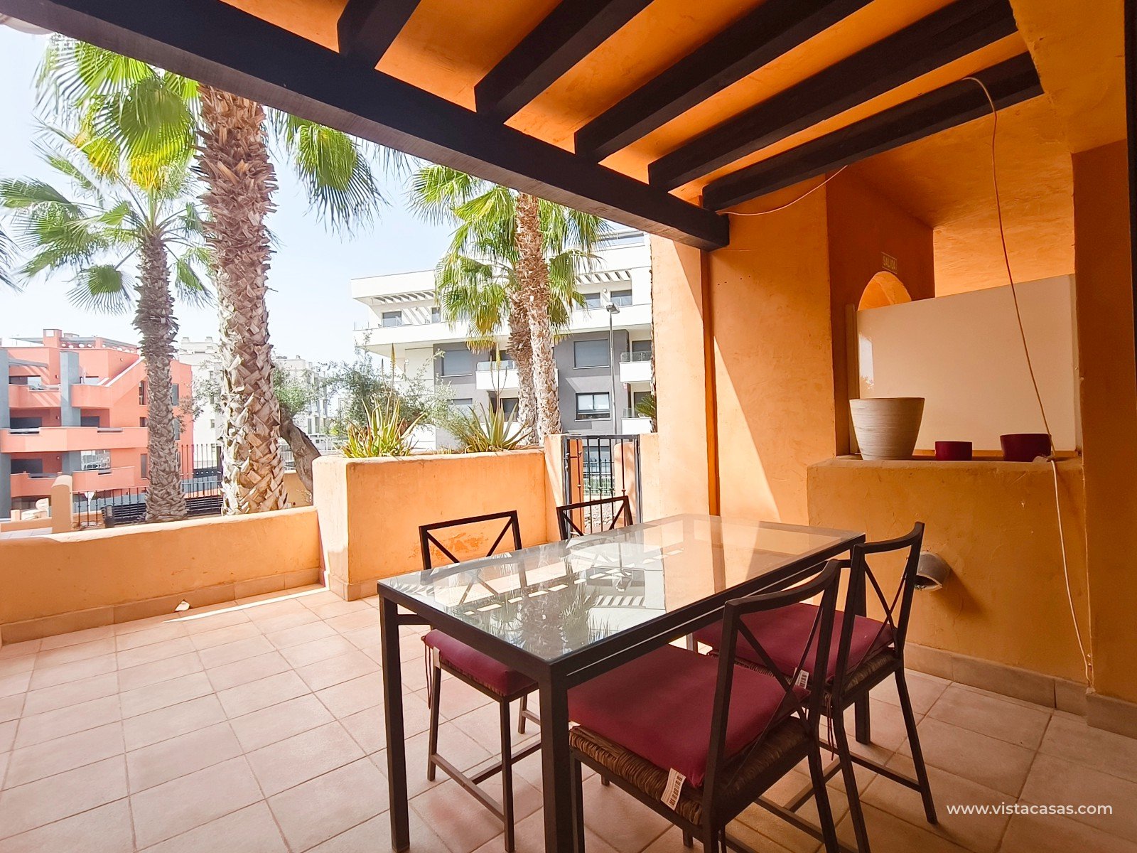 À Orihuela Costa, tout proche du golf de Villamartín, découvrez cet appartement en rez de chaussée, orienté plein sud, au sein d'un complexe avec piscine communautaire. L'appartement, vendu meublé, comprend deux chambres, deux salles de bain, une climatisation centralisée, ainsi que deux terrasses, dont la principale exposée plein sud. Le bien inclut également les électroménagers, une place de parking et une cave en sous-sol. Ne manquez pas cette opportunité rare, idéale pour une résidence principale ou un pied-à-terre ensoleillé. Contactez-nous dès maintenant pour plus d'informations ! Note légale: Le prix indiqué n'inclut pas les frais de notaire, d'enregistrement, les impôts (ITP) ni les autres frais liés à la vente. Un détail des frais supplémentaires vous sera fourni avant la réservation. Frais professionnels de l'agence INCLUS DANS LE PRIX.