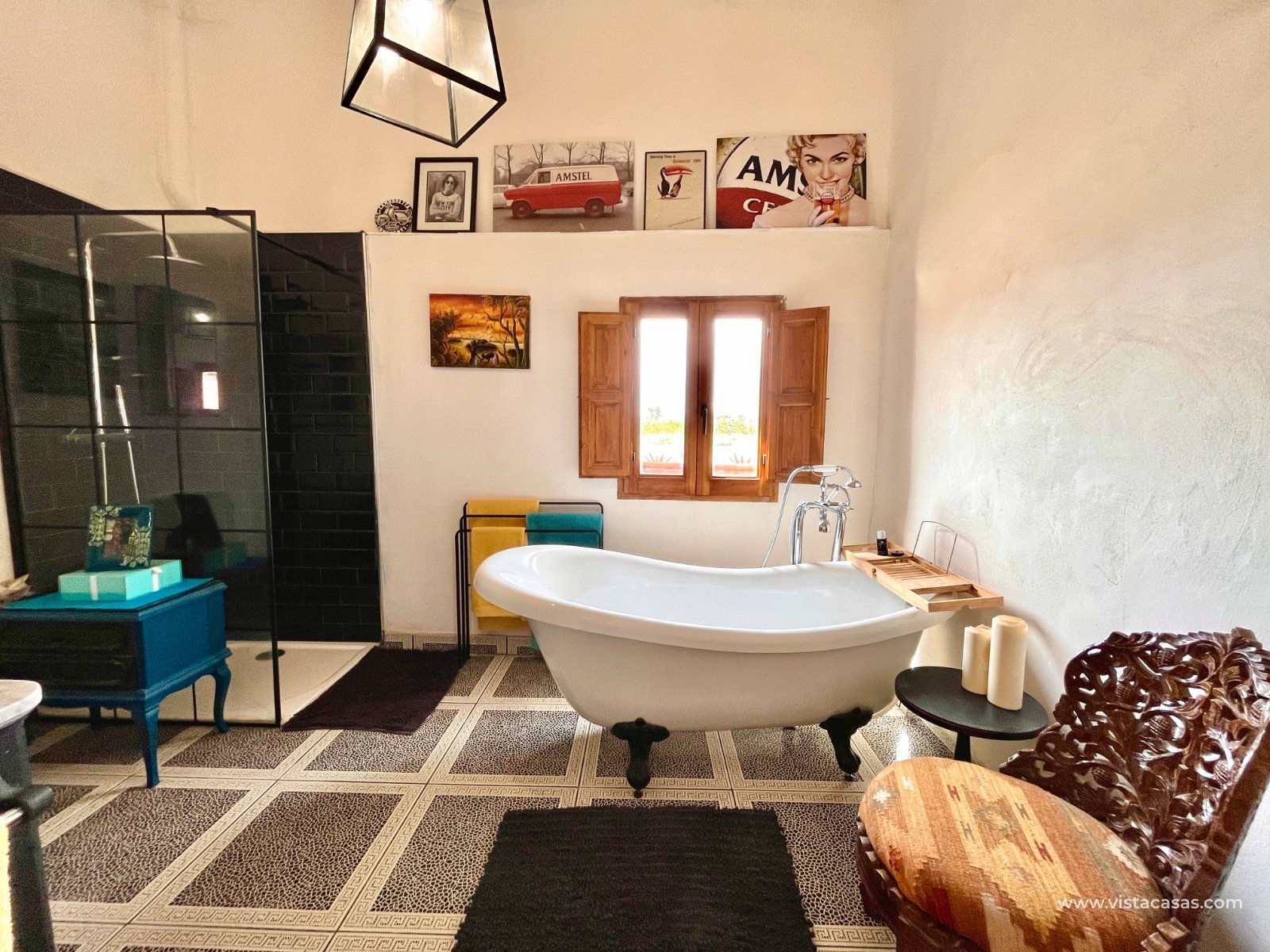 Deze prachtige en gerenoveerde 3-slaapkamer landhuis straalt rustieke charme uit, gecombineerd met moderne luxe. Gelegen op een royaal perceel van 3.999m², biedt dit huis niet alleen privacy en duurzaamheid, maar ook een panoramisch uitzicht op de bergen dat je iedere dag opnieuw zal betoveren. Zelfvoorzienend en milieuvriendelijk wonen was nog nooit zo aantrekkelijk. Het huis is volledig off-grid met zonnepanelen die zorgen voor lage energiekosten en een ecologische levensstijl. De eco-vriendelijke septische tank versterkt de duurzaamheid van deze woning. Binnen wacht een ruime en doordachte indeling op je, inclusief een moderne natte cel en een luxe en-suite badkamer met zowel een douche als een ligbad. Buiten nodigt het bovengrondse zwembad je uit om te ontspannen en af te koelen op warme zomerdagen. De locatie is ideaal: op slechts 2 minuten rijden van het pittoreske dorpje Daya Vieja, waar je een sportcentrum met openbaar zwembad, gezellige winkels, bars en authentieke Spaanse restaurants vindt. De stranden van Guardamar liggen op slechts 10 minuten afstand, terwijl de luchthaven van Alicante binnen 30 minuten bereikbaar is. Voor golfliefhebbers zijn er diverse golfbanen in de buurt. Het nabijgelegen Dolores, een charmant dorp in Alicante, staat bekend om zijn levendige markten en lokale tradities. Rust, comfort en een strategische ligging maken deze woning tot een verborgen parel. Laat je verrassen door de unieke sfeer en plan vandaag nog een bezichtiging!