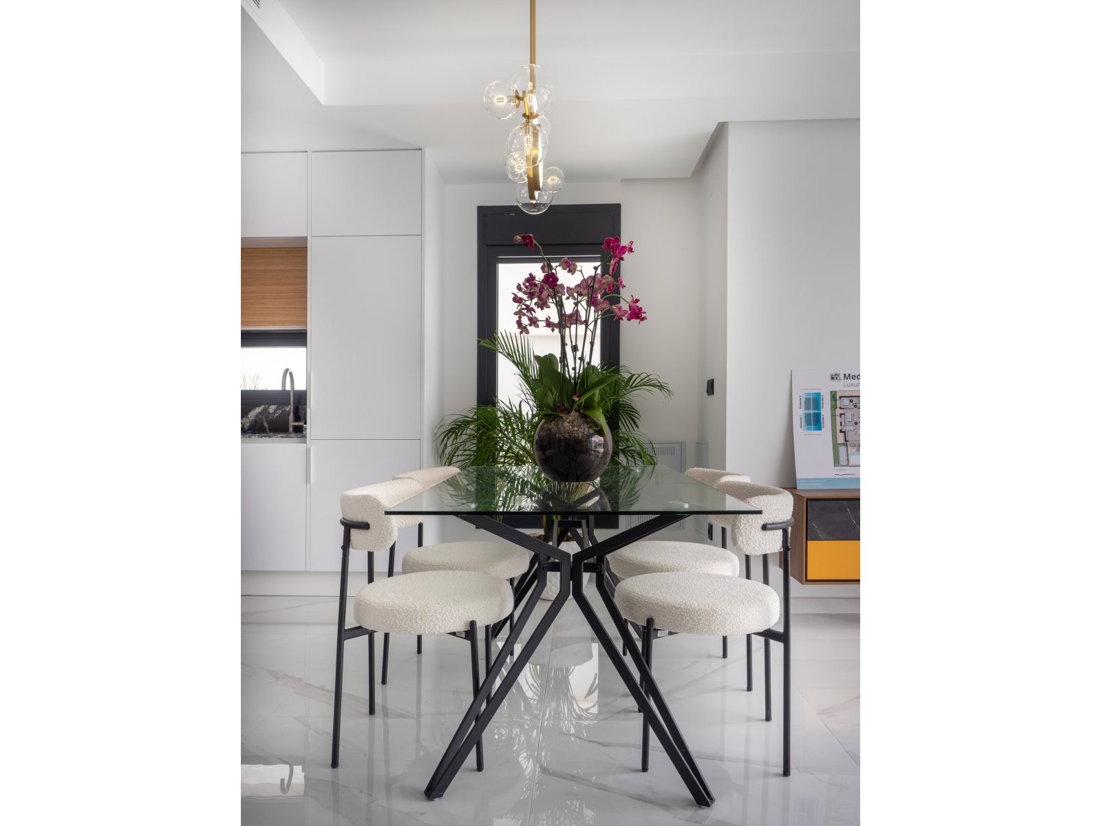 Het interieur van deze woningen is uitgerust met alle moderne gemakken. Ze beschikken over drie slaapkamers en drie badkamers, wat zorgt voor een ruime en functionele ruimte voor het hele gezin. De keramische vloeren geven niet alleen een elegante uitstraling, maar zijn ook gemakkelijk te onderhouden, wat zorgt voor een onberispelijke esthetiek op lange termijn. Bovendien zijn de woningen volledig gemeubileerd en uitgerust met apparaten, wat de verhuizing vergemakkelijkt en het mogelijk maakt om onmiddellijk van uw nieuwe huis te genieten.