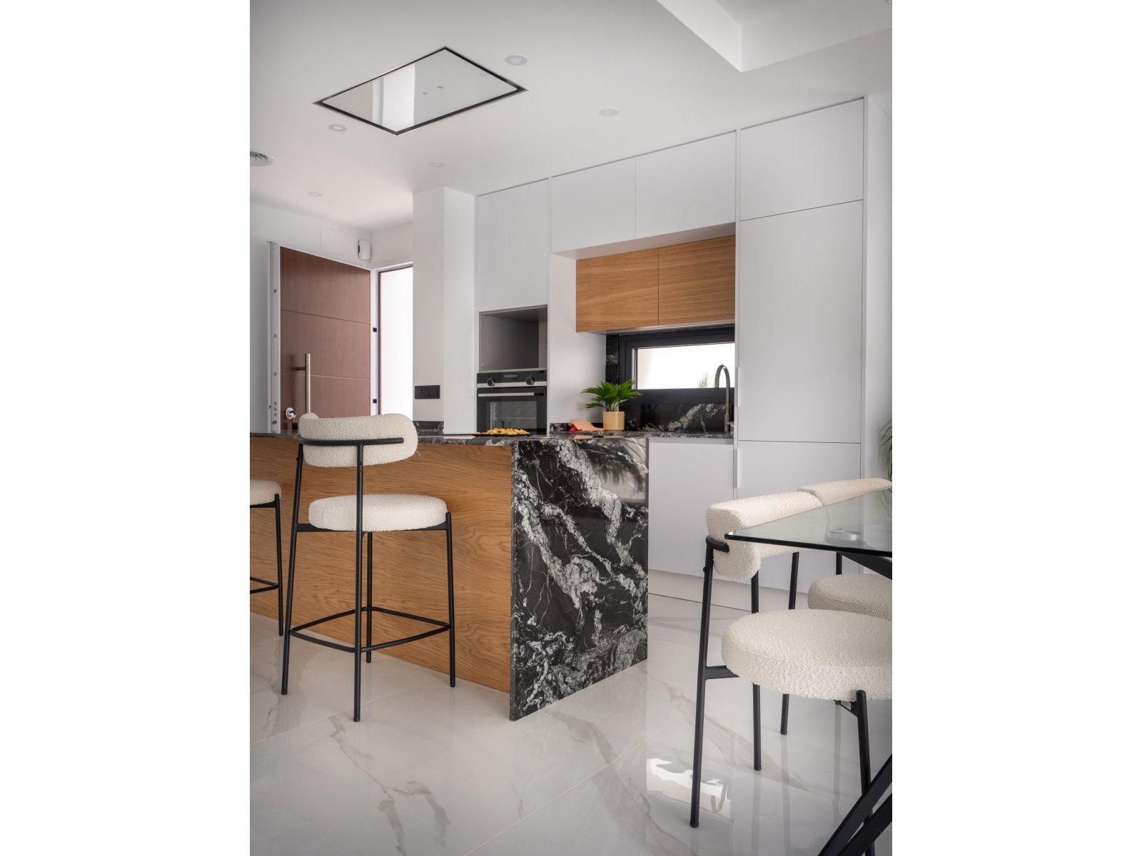 De buitenkant van deze woningen is even indrukwekkend. Elke woning heeft een privé tuin, perfect om uw eigen groene oase te creëren. Het privézwembad is ideaal om af te koelen op warme zomerdagen en biedt een perfecte ruimte om te ontspannen of tijd met het gezin door te brengen. De terrassen en solariums bieden extra buitenruimtes, perfect om te genieten van het mediterrane klimaat of om buitenbijeenkomsten te organiseren met een vrij uitzicht.