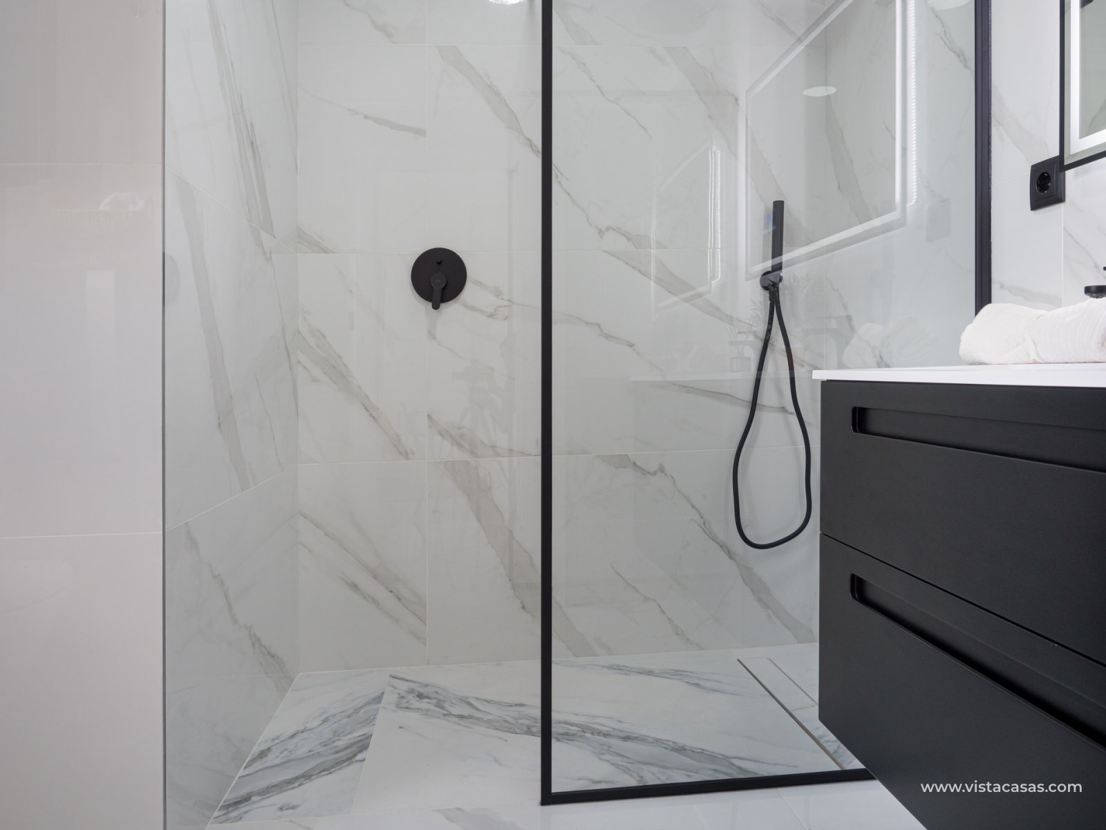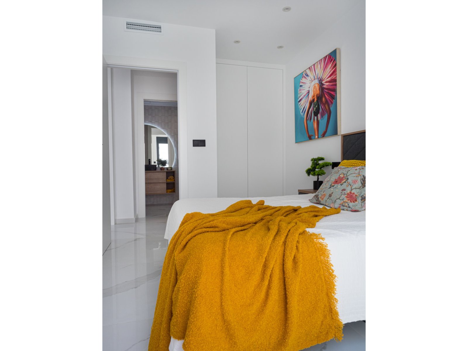 De buitenkant van deze woningen is even indrukwekkend. Elke woning heeft een privé tuin, perfect om uw eigen groene oase te creëren. Het privézwembad is ideaal om af te koelen op warme zomerdagen en biedt een perfecte ruimte om te ontspannen of tijd met het gezin door te brengen. De terrassen en solariums bieden extra buitenruimtes, perfect om te genieten van het mediterrane klimaat of om buitenbijeenkomsten te organiseren met een vrij uitzicht.