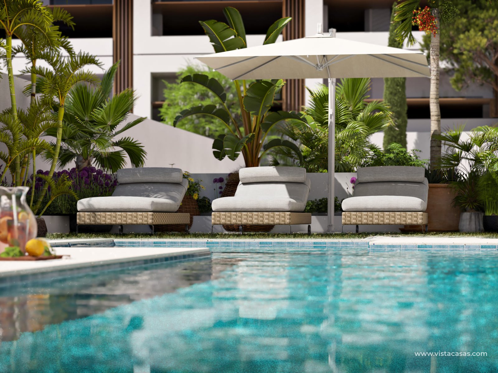 De buitenruimtes van het wooncomplex nodigen uit tot ontspanning en genieten van het mediterrane klimaat. Elke woning beschikt over privéterrassen die perfect zijn om het landschap te bewonderen. Toegang tot een solarium biedt extra ruimte voor ontspanning en recreatie. Bovendien nodigen de ruime tuinen uit tot wandelen in een natuurlijke omgeving, terwijl het gemeenschappelijke zwembad de ideale plek is om af te koelen en te socialiseren op de warmste dagen.