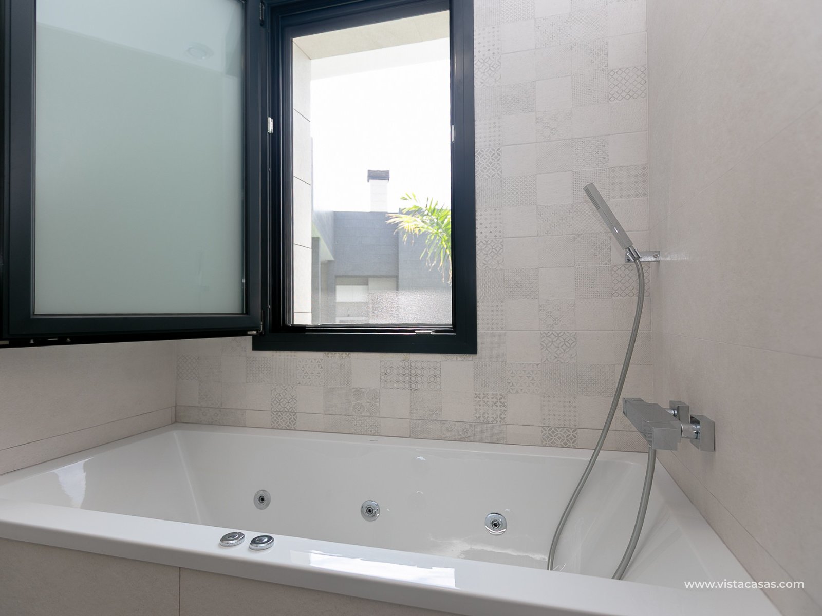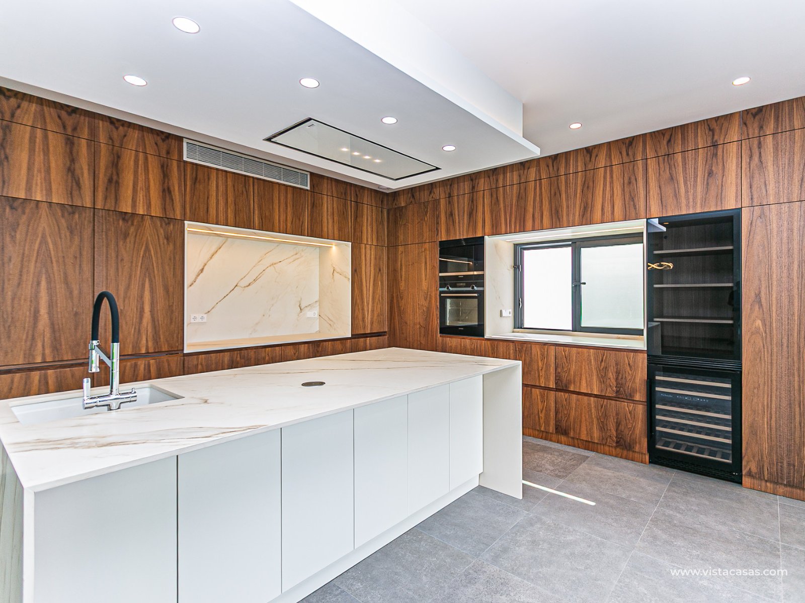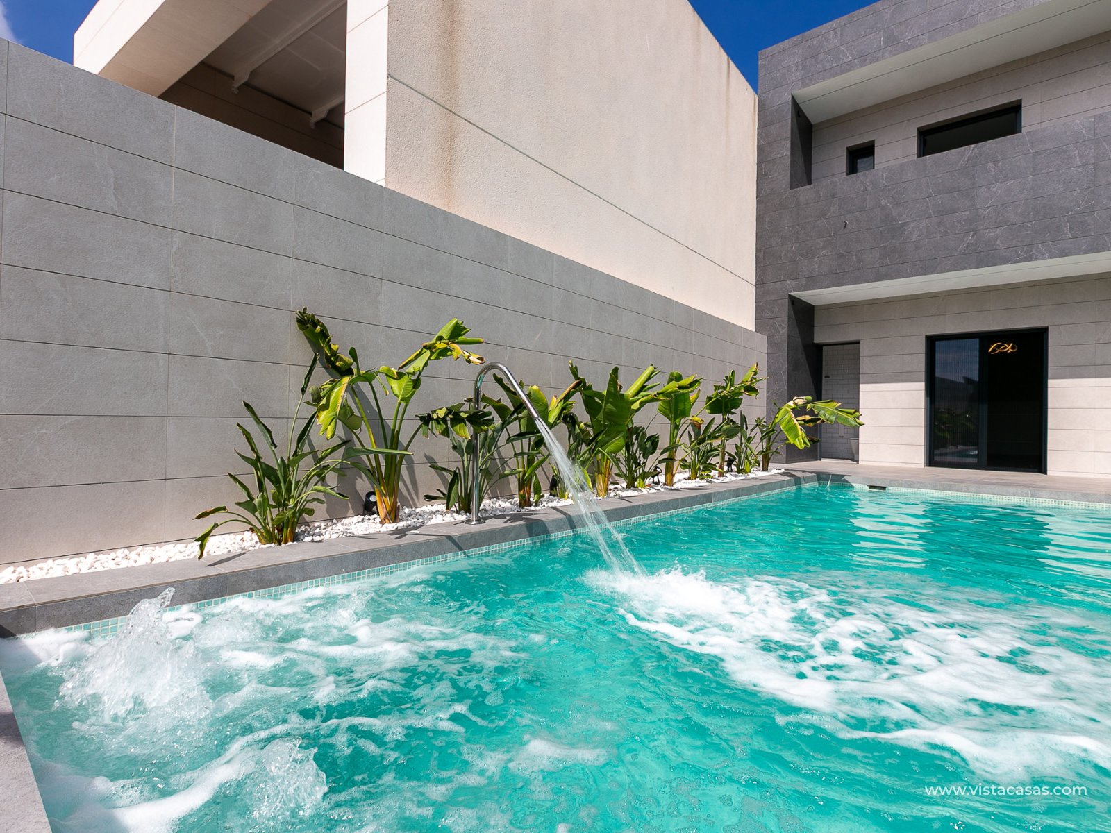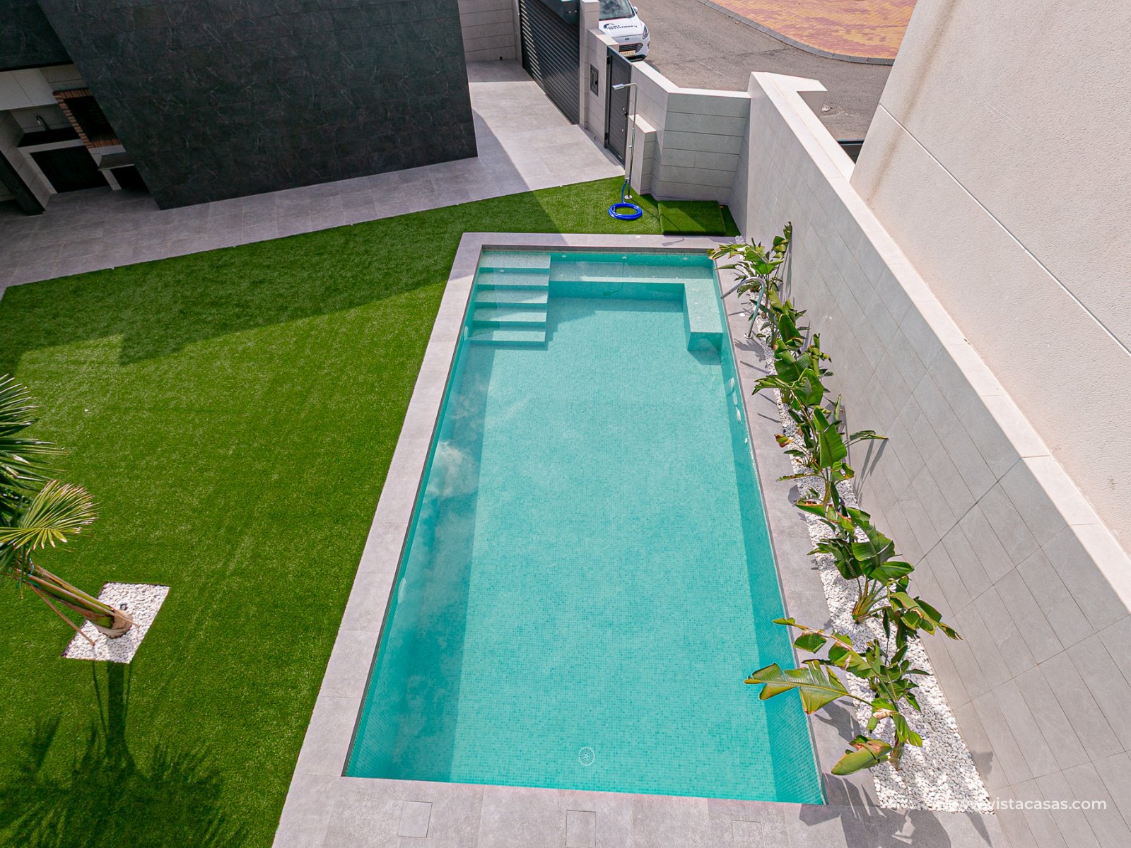 Wij presenteren u deze exclusieve luxe villa in San Pedro del Pinatar, gelegen op een toplocatie dicht bij alle voorzieningen: scholen, universiteit, supermarkten, restaurants, cafés, banken en sportfaciliteiten — alles op loopafstand. De woning onderscheidt zich door haar moderne architectuur, domotica en hoogwaardige afwerking. Belangrijkste kenmerken: Vijf ruime slaapkamers, waaronder een hoofdsuite met inloopkast en luxe badkamer, een juniorsuite, een kamer met en-suite badkamer en twee extra tweepersoonskamers. Vijf badkamers met vier jacuzzi’s en een buiten-gastentoilet. Luxe designkeuken met hoogwaardige apparatuur, onzichtbaar aanrecht en verborgen voorraadkamer. Twee binnenpatio’s, waarvan één met een indrukwekkende bonsai in de hal. 1.000-liter watertank, elektrische open haard “Total Virtuo”, vloerverwarming in het hele huis en domoticasysteem. Stalen beveiligingsrolluiken, gepantserde deuren en zonnepanelen van 10 kW. Overdekte garage met laadpunt voor elektrische auto, volledig uitgeruste barbecue en privézwembad met hydromassage. Groot dakterras met mogelijkheid om een extra kamer te bouwen. Een unieke woning die luxe, comfort en moderne technologie combineert — perfect voor permanent wonen of vakantieverhuur aan de Costa Cálida.