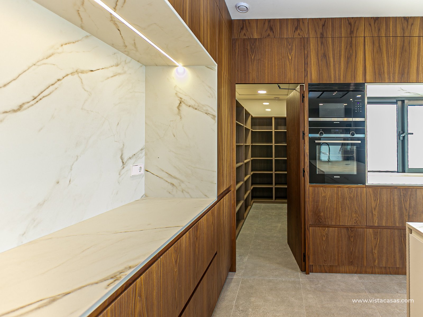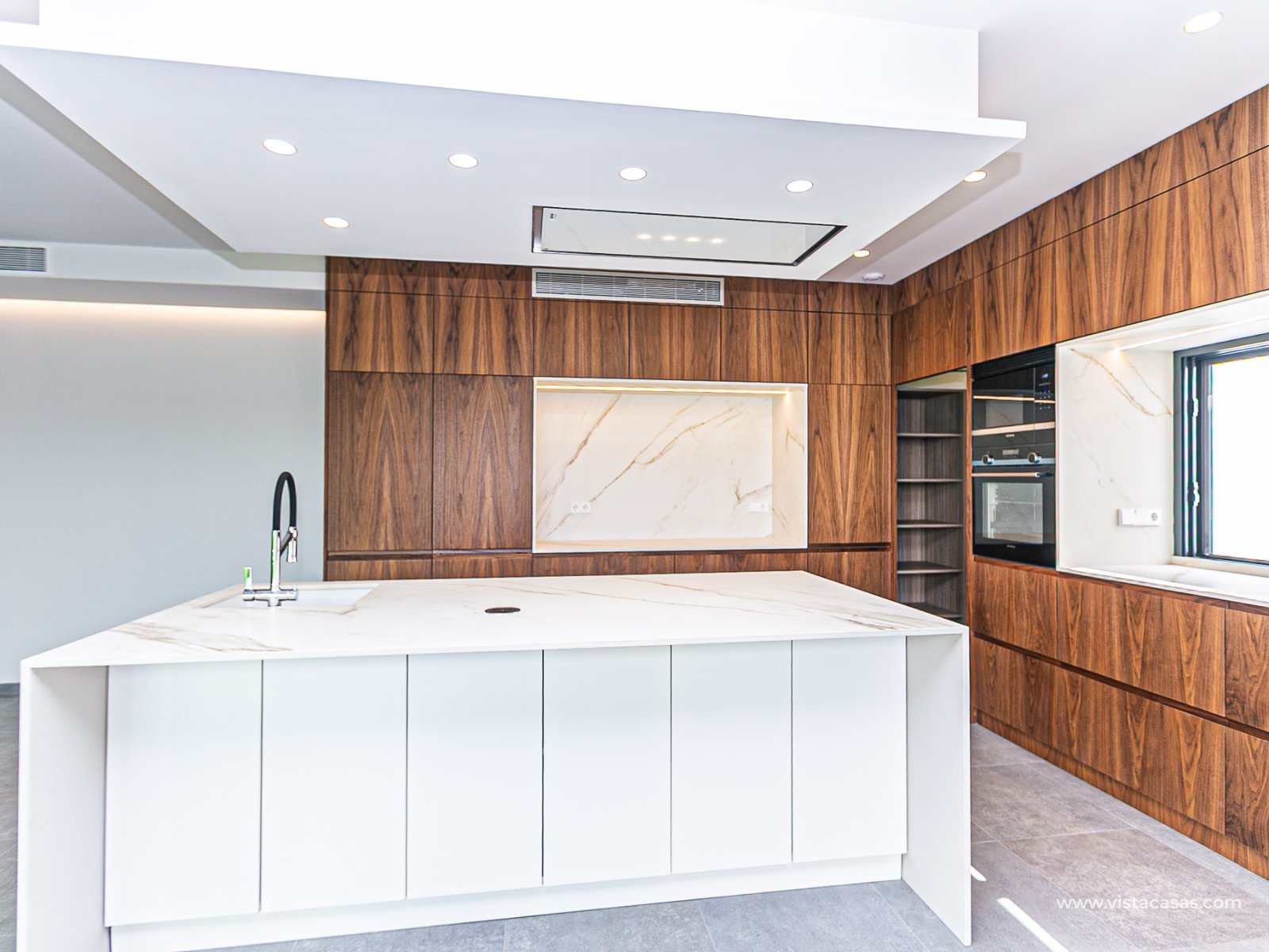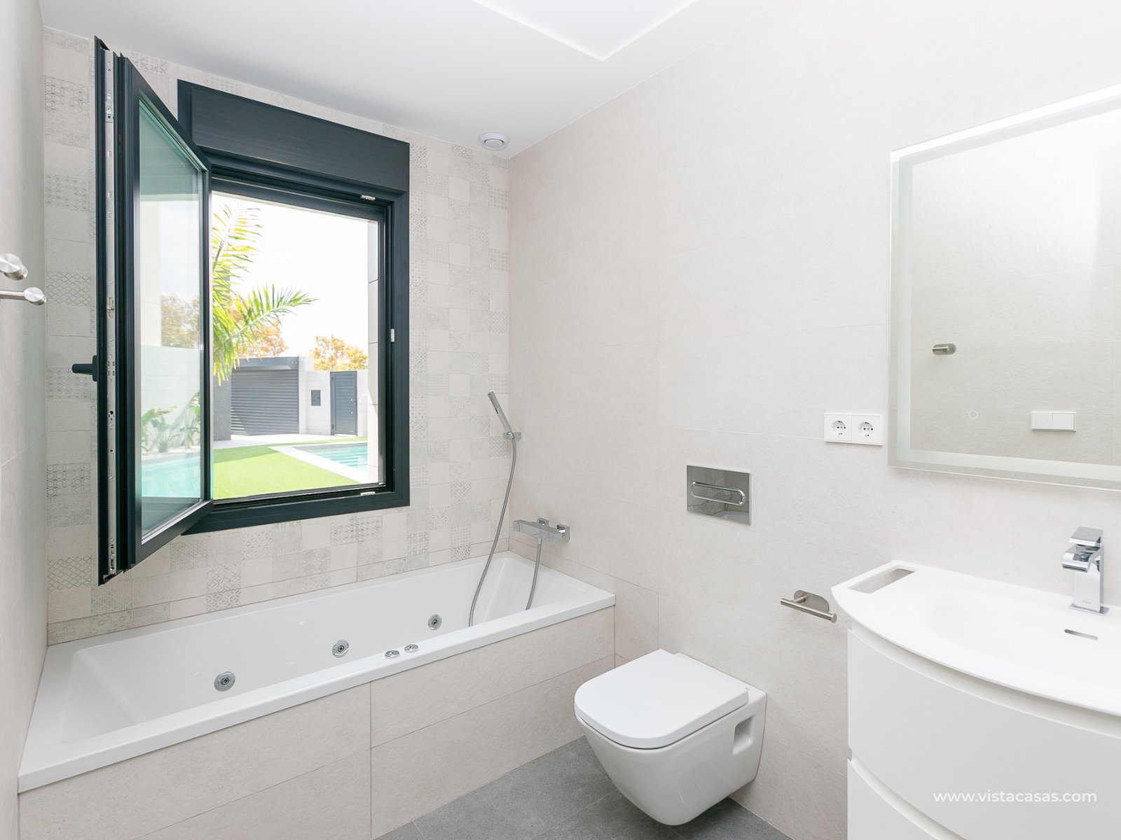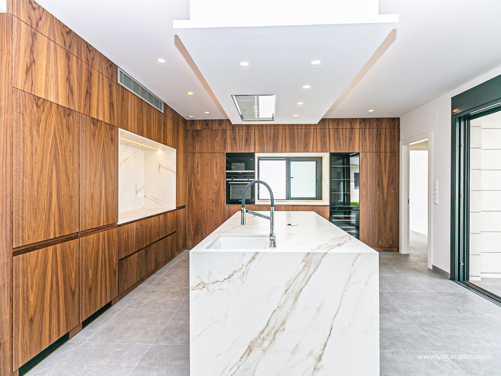 Wij presenteren u deze exclusieve luxe villa in San Pedro del Pinatar, gelegen op een toplocatie dicht bij alle voorzieningen: scholen, universiteit, supermarkten, restaurants, cafés, banken en sportfaciliteiten — alles op loopafstand. De woning onderscheidt zich door haar moderne architectuur, domotica en hoogwaardige afwerking. Belangrijkste kenmerken: Vijf ruime slaapkamers, waaronder een hoofdsuite met inloopkast en luxe badkamer, een juniorsuite, een kamer met en-suite badkamer en twee extra tweepersoonskamers. Vijf badkamers met vier jacuzzi’s en een buiten-gastentoilet. Luxe designkeuken met hoogwaardige apparatuur, onzichtbaar aanrecht en verborgen voorraadkamer. Twee binnenpatio’s, waarvan één met een indrukwekkende bonsai in de hal. 1.000-liter watertank, elektrische open haard “Total Virtuo”, vloerverwarming in het hele huis en domoticasysteem. Stalen beveiligingsrolluiken, gepantserde deuren en zonnepanelen van 10 kW. Overdekte garage met laadpunt voor elektrische auto, volledig uitgeruste barbecue en privézwembad met hydromassage. Groot dakterras met mogelijkheid om een extra kamer te bouwen. Een unieke woning die luxe, comfort en moderne technologie combineert — perfect voor permanent wonen of vakantieverhuur aan de Costa Cálida.