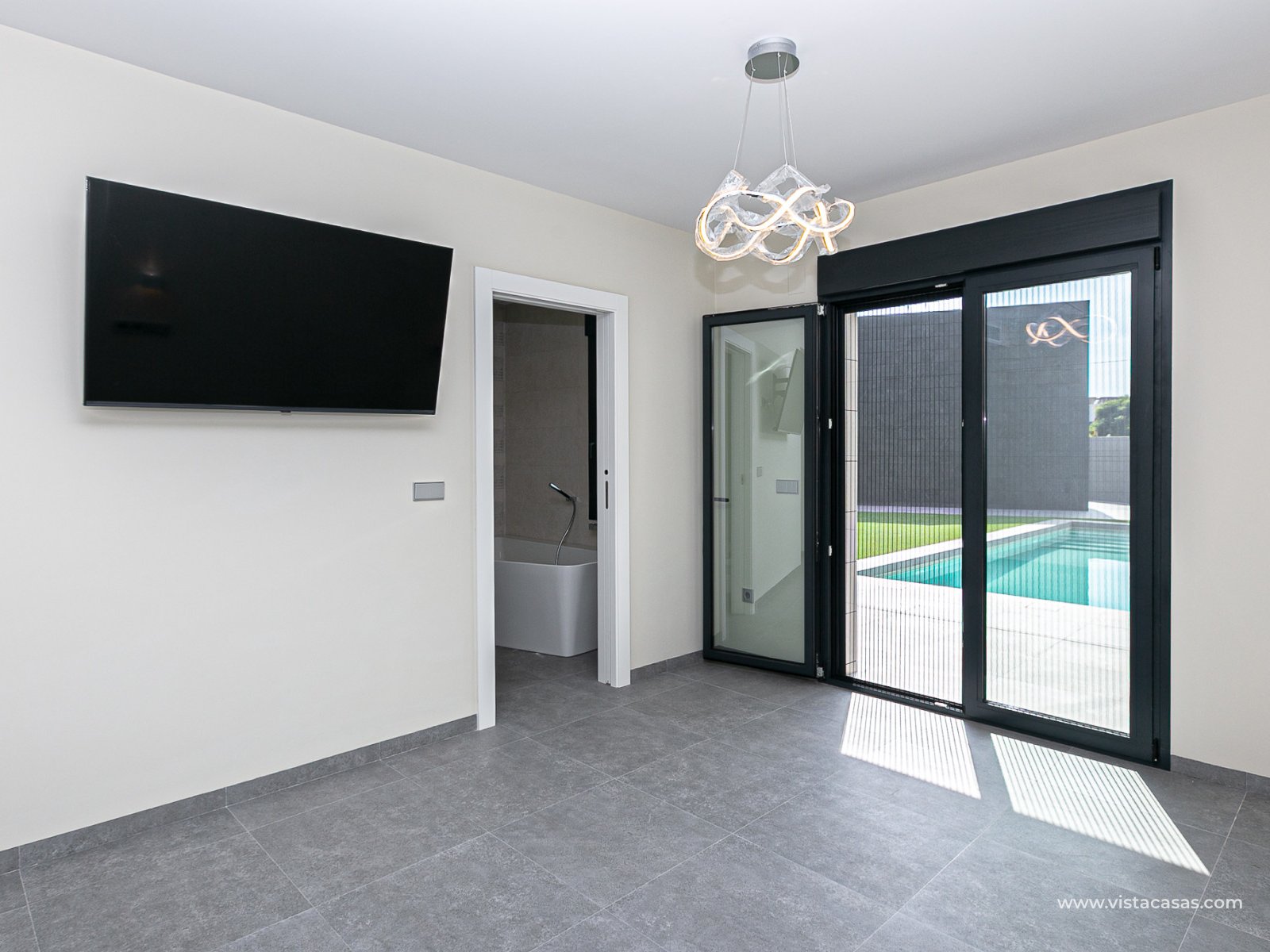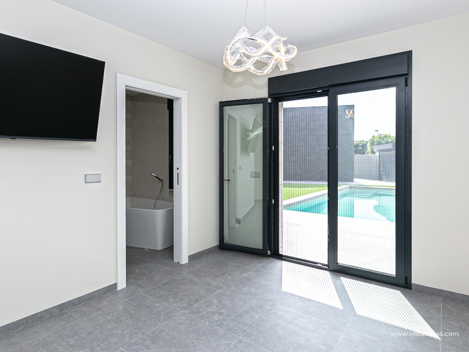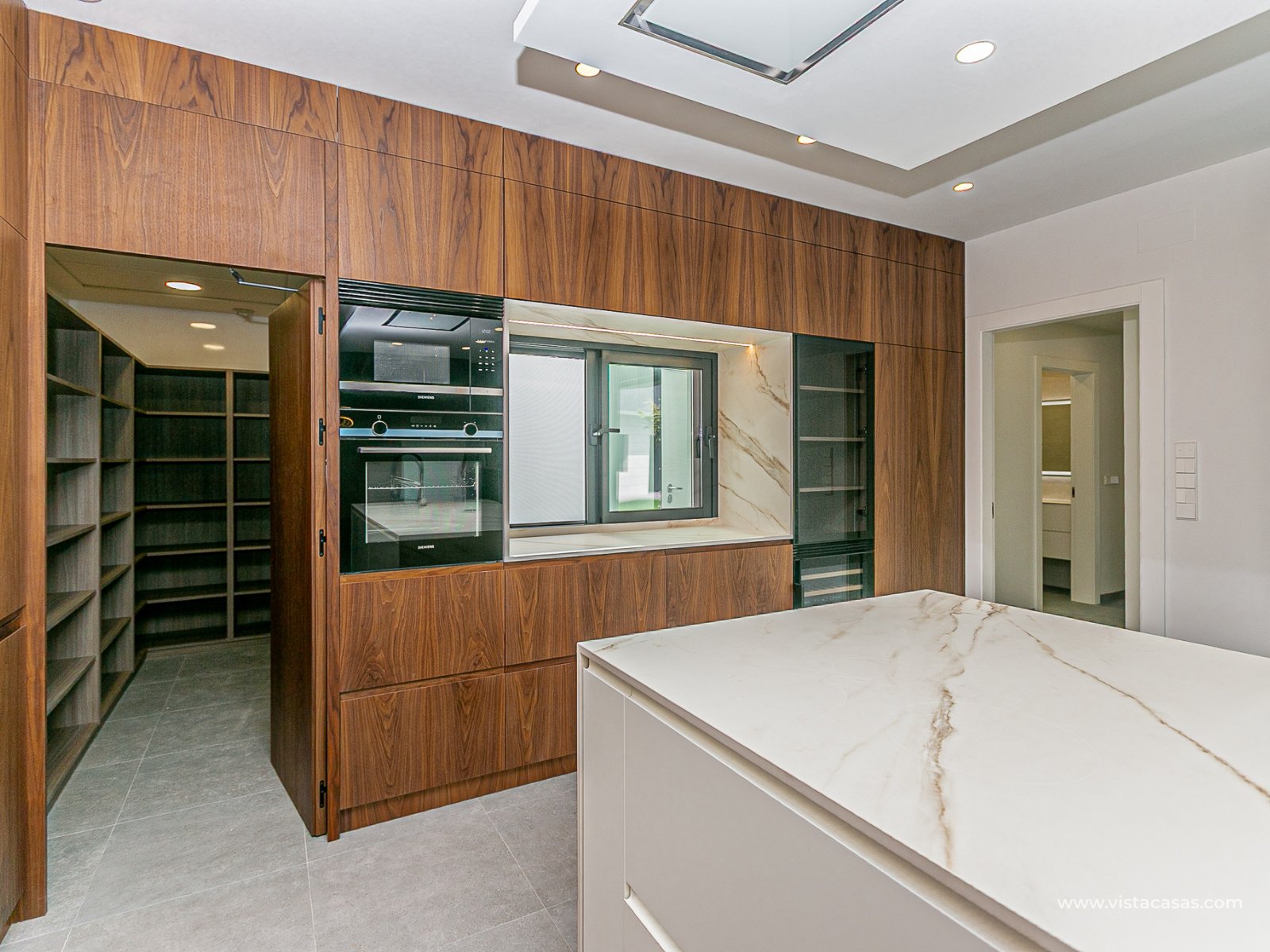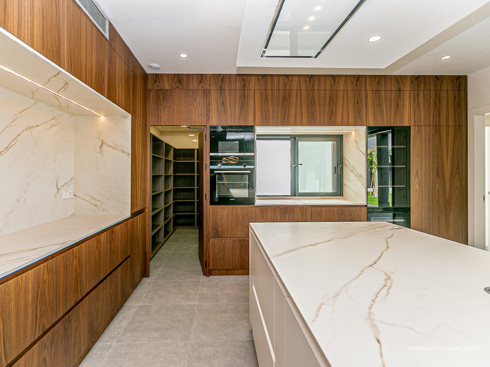 Wij presenteren u deze exclusieve luxe villa in San Pedro del Pinatar, gelegen op een toplocatie dicht bij alle voorzieningen: scholen, universiteit, supermarkten, restaurants, cafés, banken en sportfaciliteiten — alles op loopafstand. De woning onderscheidt zich door haar moderne architectuur, domotica en hoogwaardige afwerking. Belangrijkste kenmerken: Vijf ruime slaapkamers, waaronder een hoofdsuite met inloopkast en luxe badkamer, een juniorsuite, een kamer met en-suite badkamer en twee extra tweepersoonskamers. Vijf badkamers met vier jacuzzi’s en een buiten-gastentoilet. Luxe designkeuken met hoogwaardige apparatuur, onzichtbaar aanrecht en verborgen voorraadkamer. Twee binnenpatio’s, waarvan één met een indrukwekkende bonsai in de hal. 1.000-liter watertank, elektrische open haard “Total Virtuo”, vloerverwarming in het hele huis en domoticasysteem. Stalen beveiligingsrolluiken, gepantserde deuren en zonnepanelen van 10 kW. Overdekte garage met laadpunt voor elektrische auto, volledig uitgeruste barbecue en privézwembad met hydromassage. Groot dakterras met mogelijkheid om een extra kamer te bouwen. Een unieke woning die luxe, comfort en moderne technologie combineert — perfect voor permanent wonen of vakantieverhuur aan de Costa Cálida.