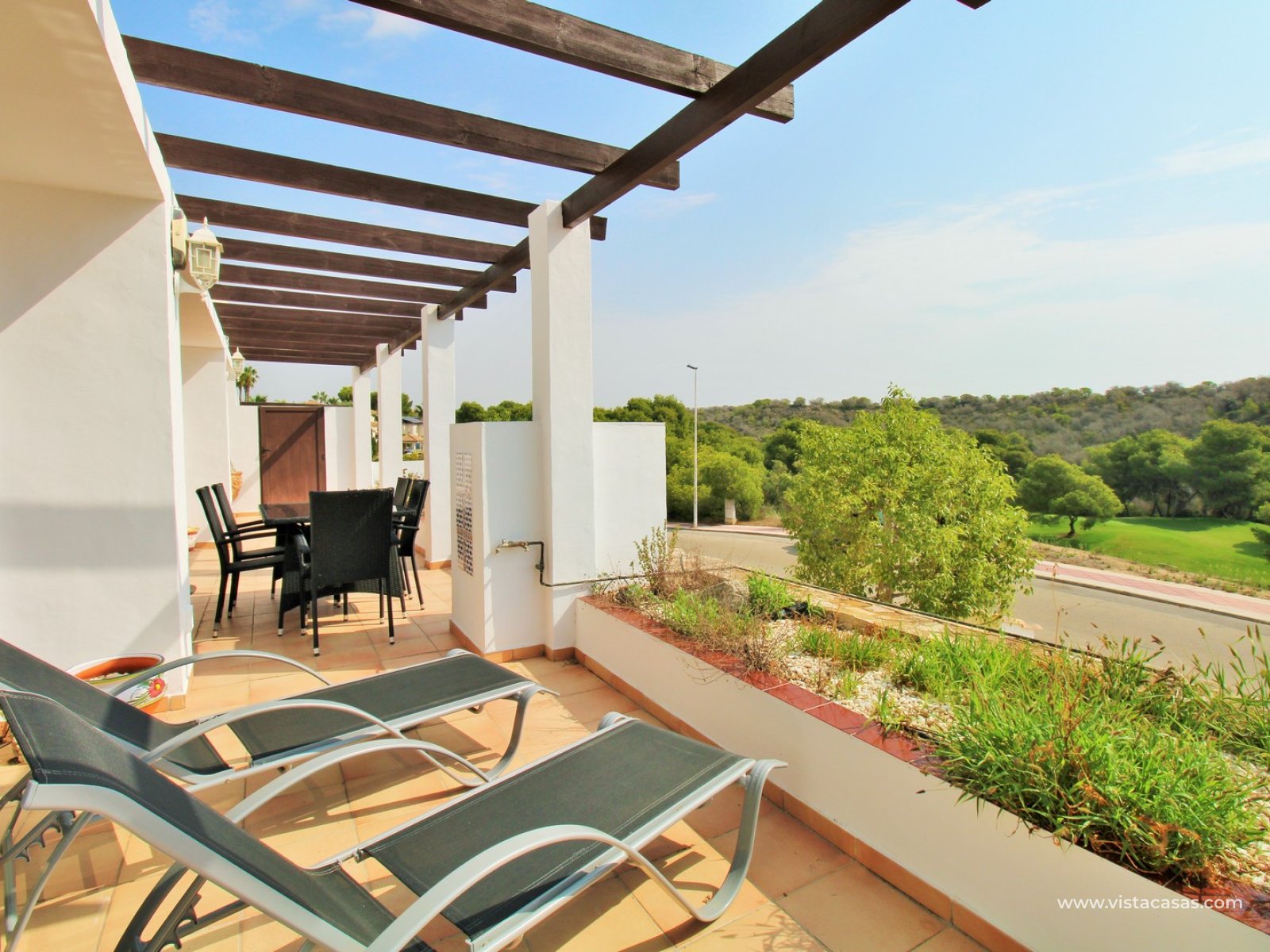 De woning biedt een ruime indeling en prachtig uitzicht over de golfbaan. Het grote terras aan de voorzijde strekt zich uit over de volledige breedte van het appartement — perfect om buiten te dineren of te ontspannen in de zon.