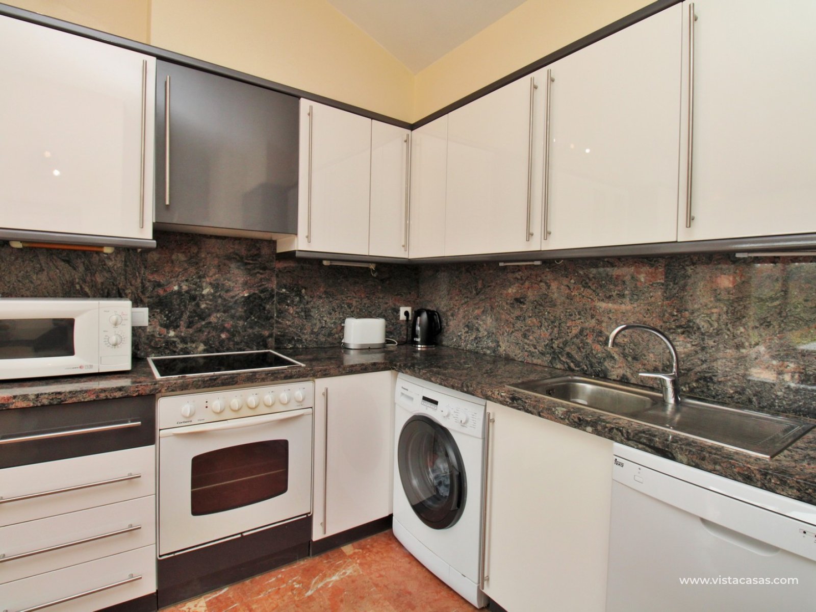 Bewoners hebben toegang tot een mooi onderhouden gemeenschappelijk zwembad en tuin. Wordt volledig gemeubileerd verkocht met witgoed en airconditioning.
