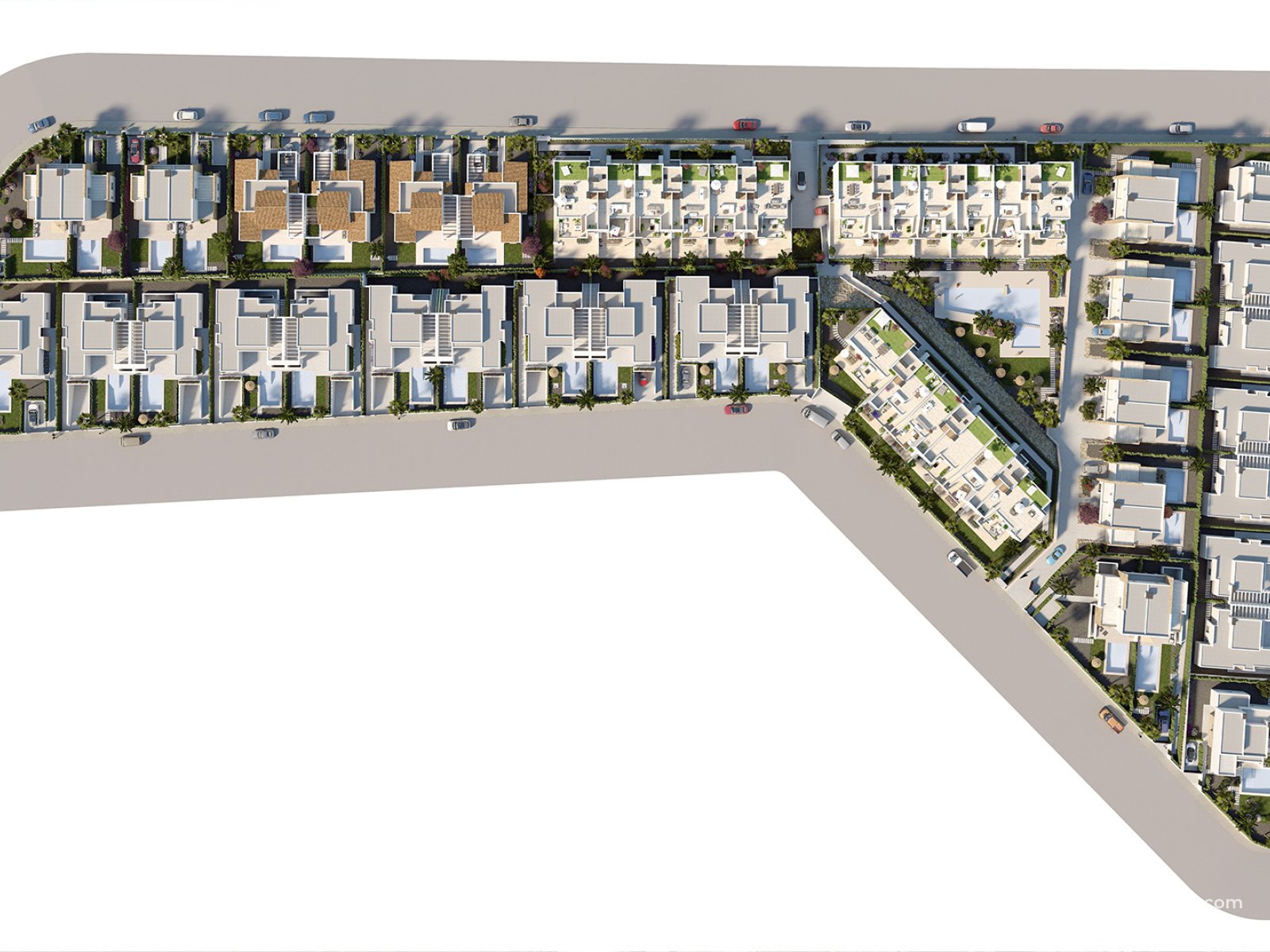 De locatie in Algorfa is ideaal om te genieten van een leven in de gemeenschap, met gemakkelijke toegang tot lokale voorzieningen en bezienswaardigheden. Dit wooncomplex bevindt zich in een serene omgeving, perfect voor degenen die willen ontsnappen aan de drukte zonder in te boeten op het gemak van dichtbij alles wat nodig is. De woningen bieden een aantrekkelijke buitenruimte, inclusief een privétuin, een terras en een solarium, wat meerdere mogelijkheden biedt om van het mediterrane klimaat te genieten. Bovendien beschikt elke woning over een privézwembad, een luxe die het mogelijk maakt om je te verfrissen op warme zomerdagen.
