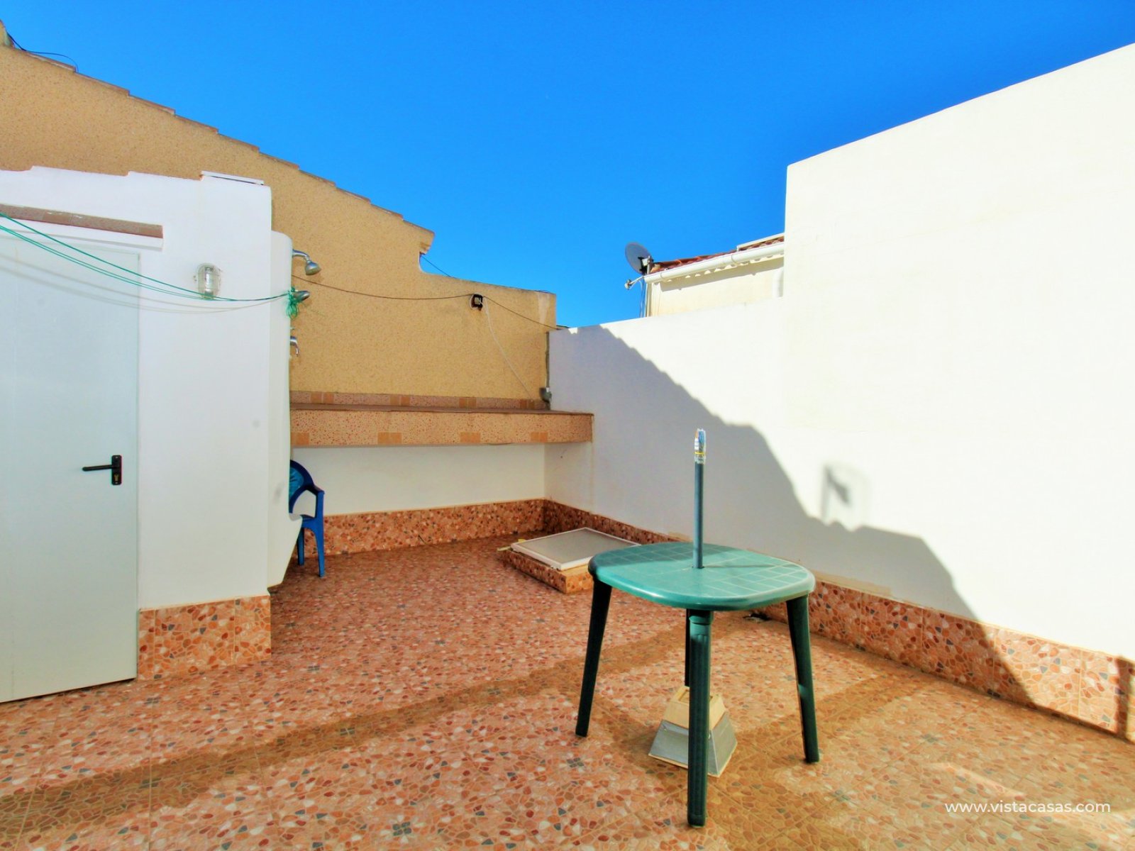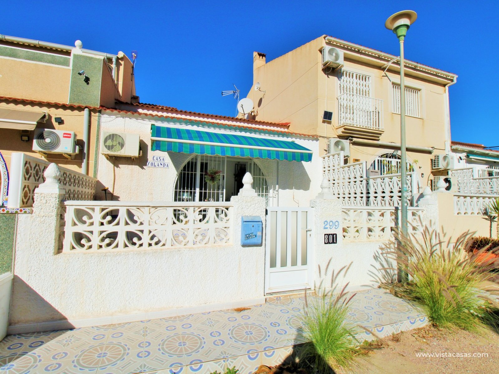 Deze zuid-oost georiënteerde bungalow met 2 slaapkamers ligt in het populaire La Siesta in Torrevieja, aan een rustig gemeenschappelijk pad dat veel privacy biedt. Aan de voorzijde bevindt zich een zonnige terras/tuin met een afgesloten veranda.