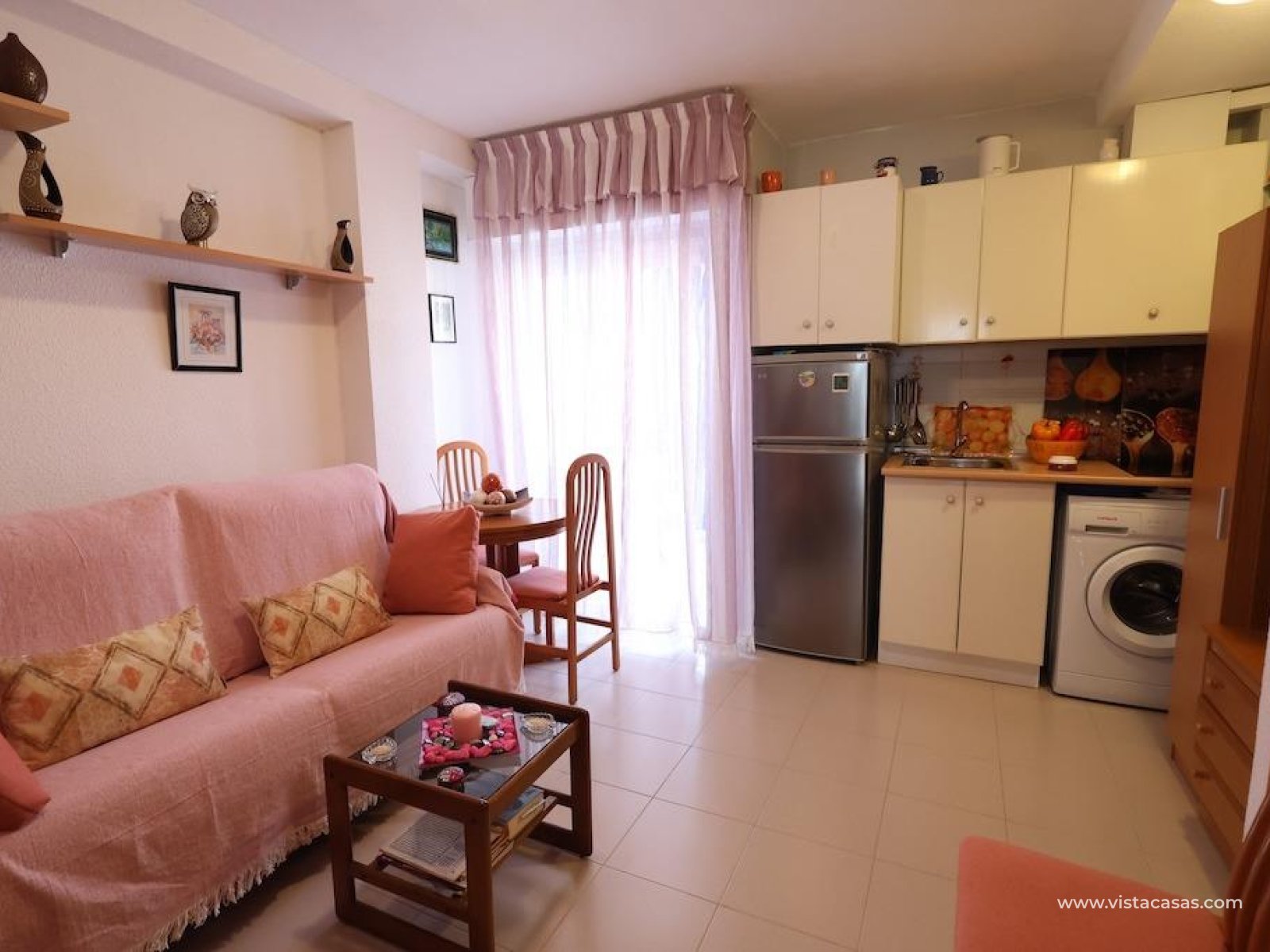 Appartement La Mata op de 3e verdieping (met lift) op slechts 250 meter van het strand. Het heeft een oppervlakte van 35 m2 met 1 slaapkamer, badkamer, woonkamer, keuken en een klein glazen terras. De woning wordt gemeubileerd verkocht.