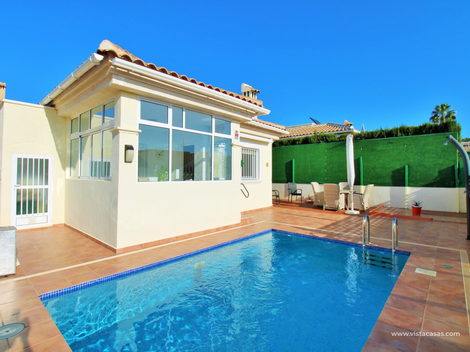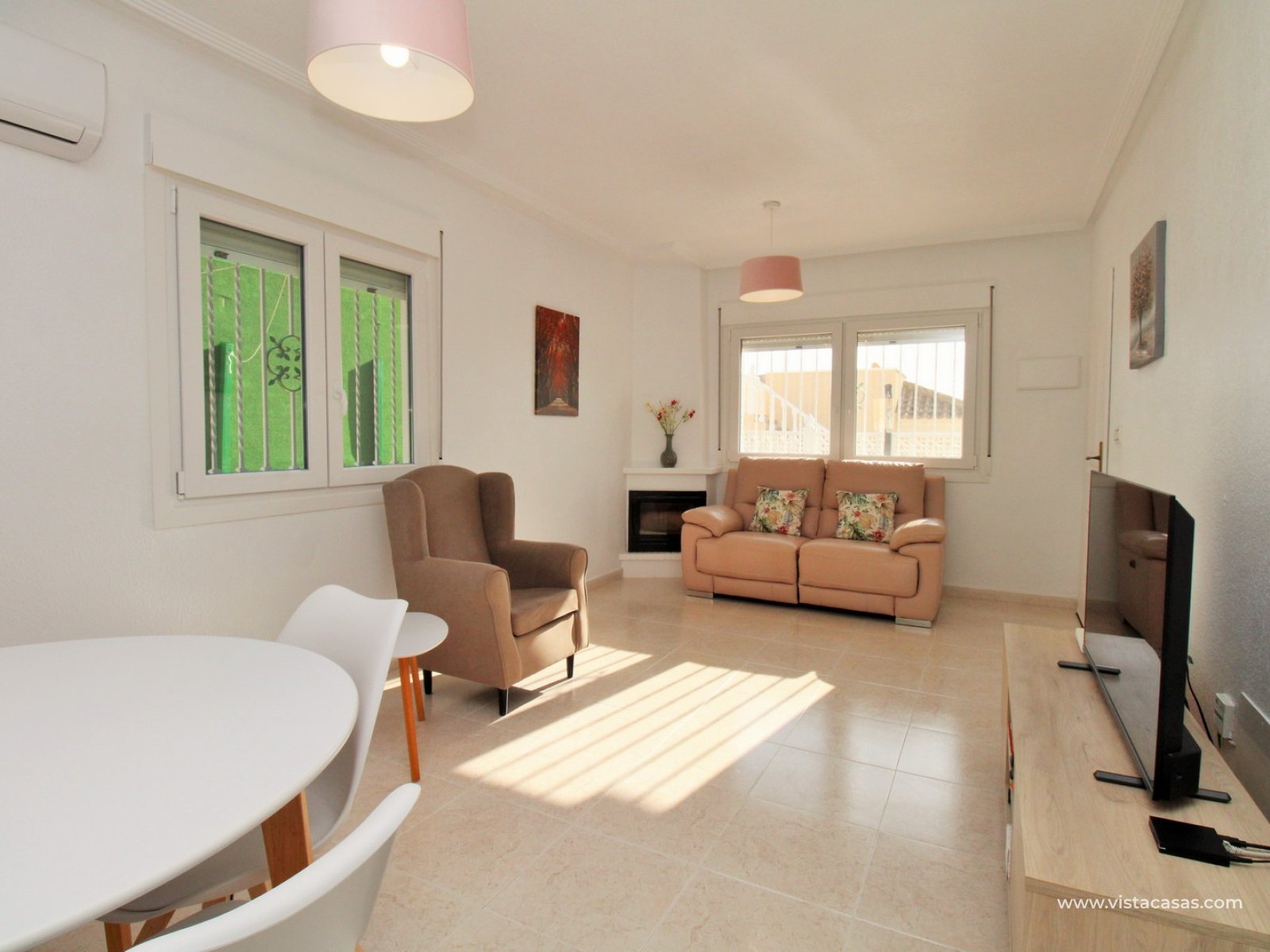 Extra’s zijn onder andere nieuwe airconditioning units, PVC ramen met dubbel glas, kantel-draaisysteem en zonwering, horren, en de woning wordt gedeeltelijk gemeubileerd verkocht. De villa maakt deel uit van een goed onderhouden gemeenschap met toegang tot een groot gemeenschappelijk zwembad in de nabijheid.