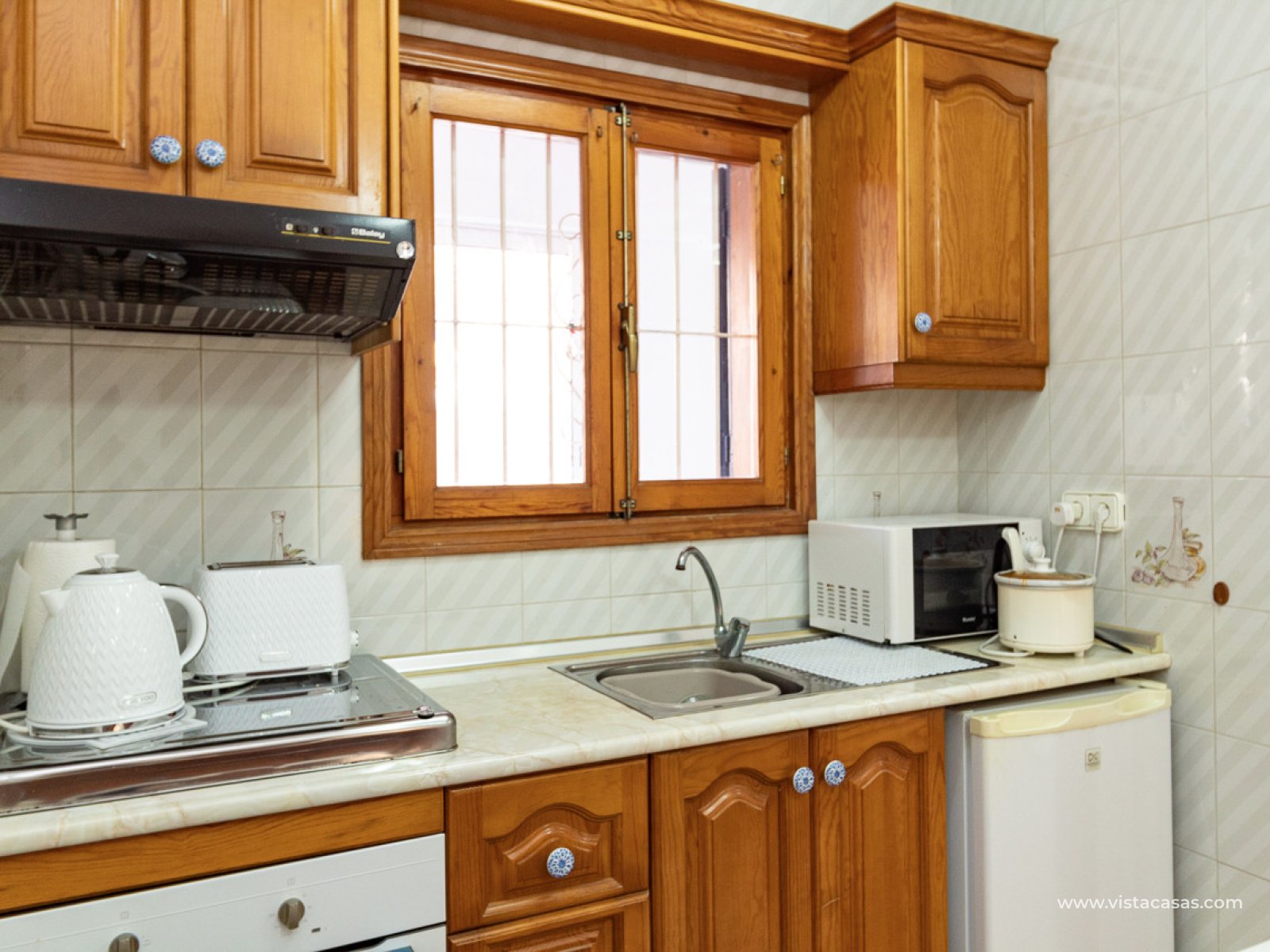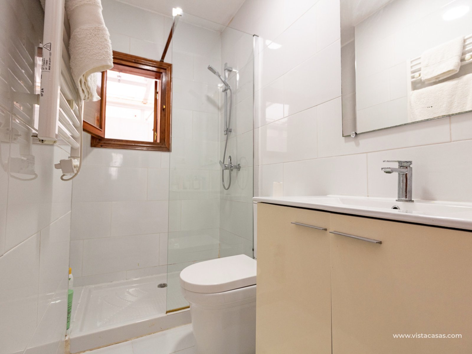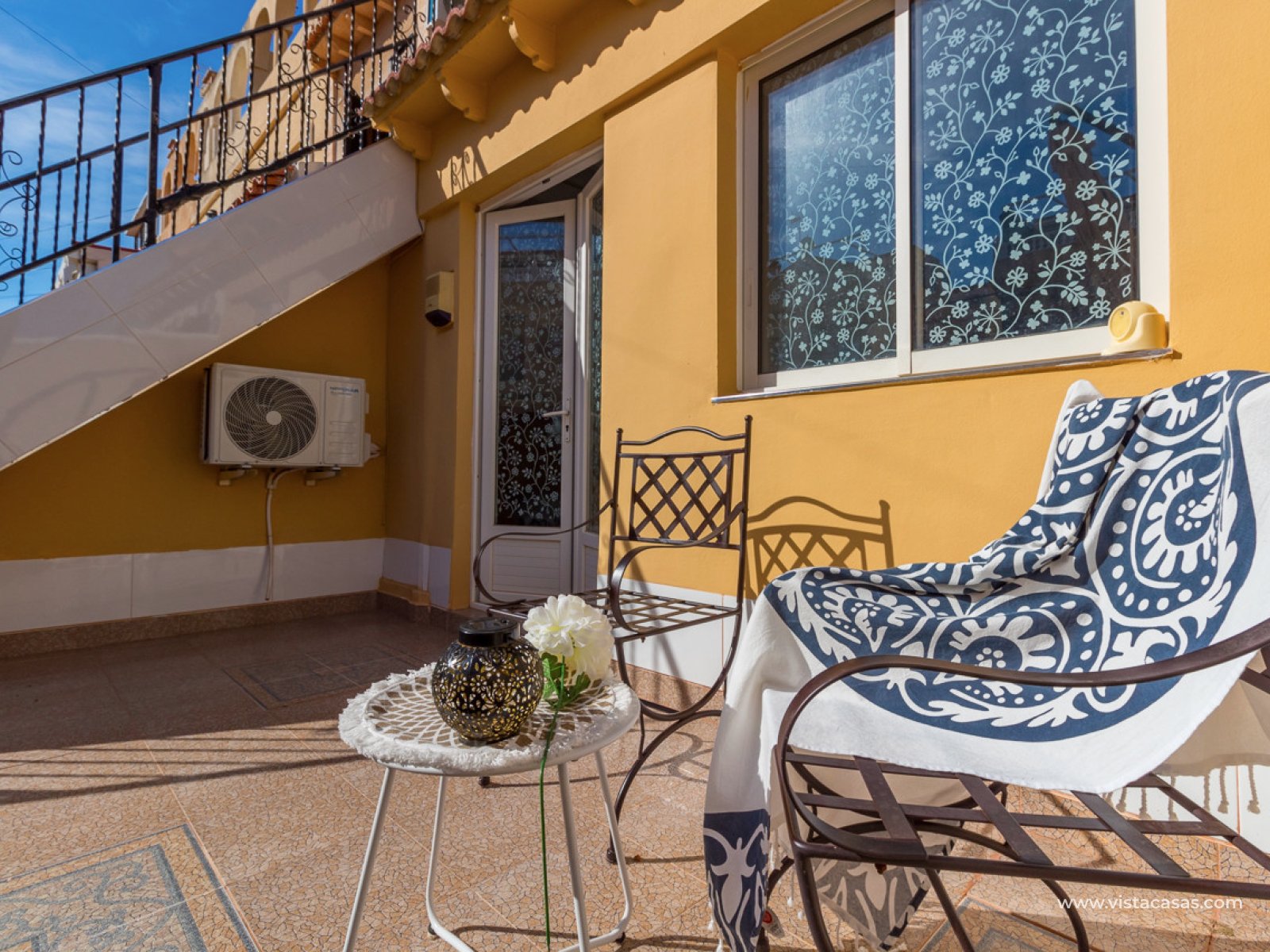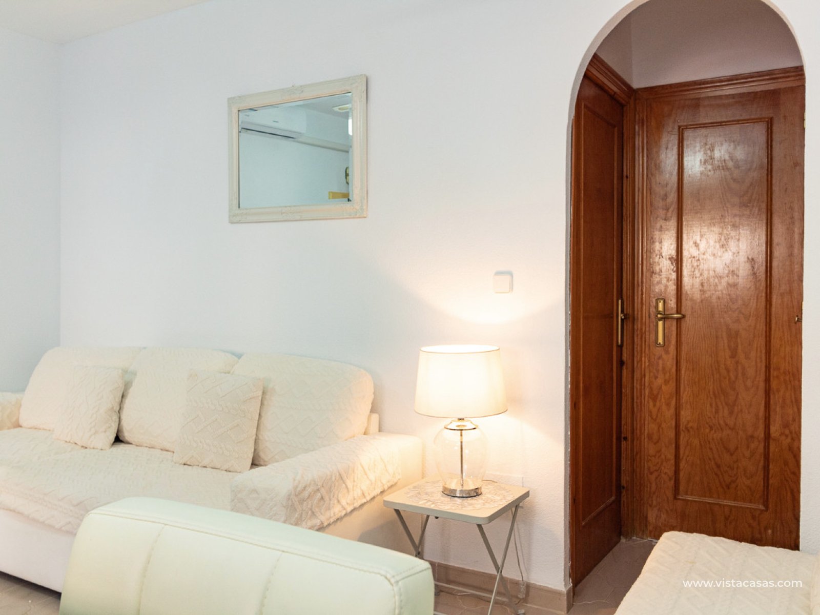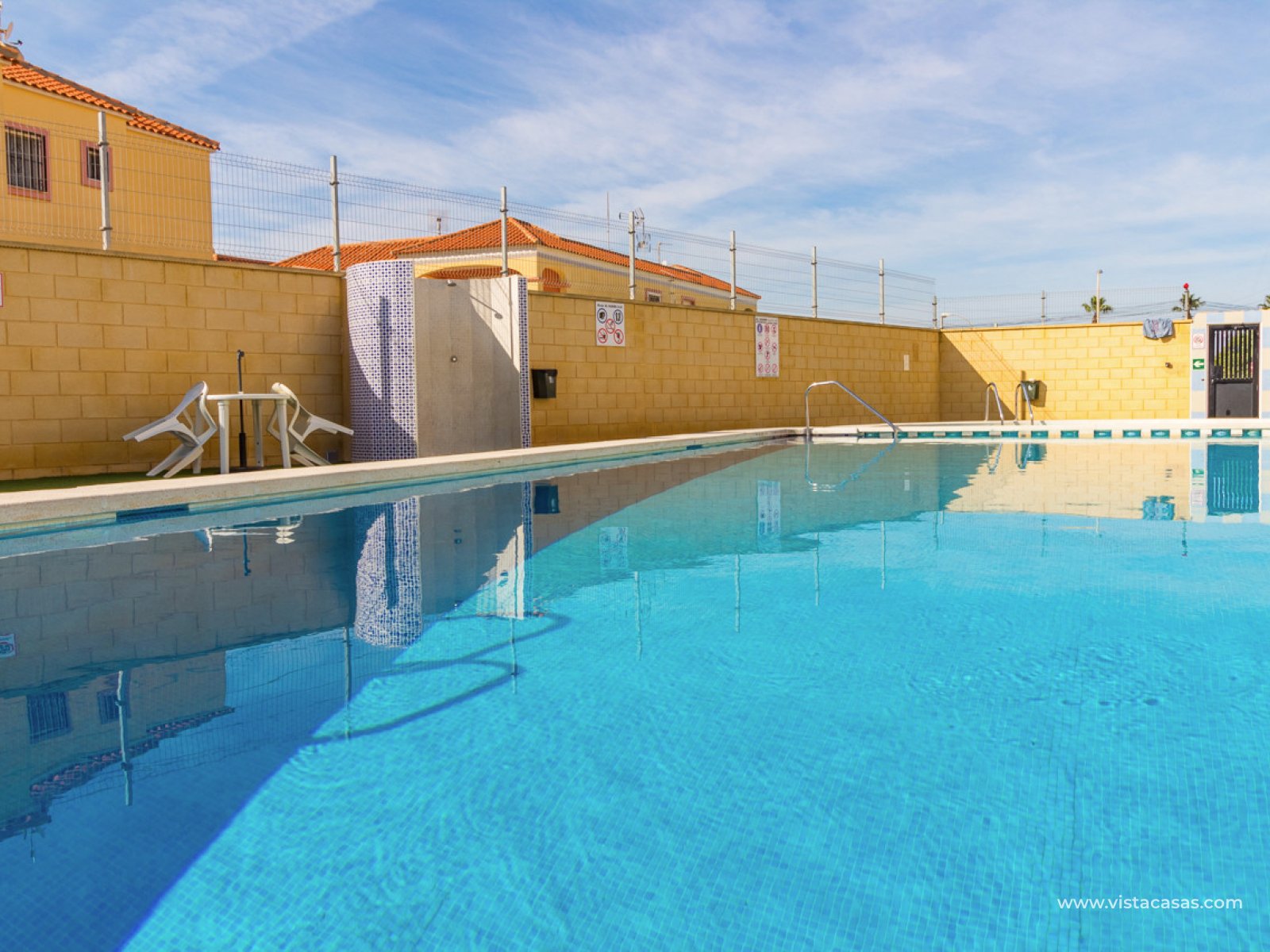 Goed onderhouden appartement op de begane grond, gelegen in El Chaparral. De woning heeft een open woonkamer met eetgedeelte en keuken met ontbijtbar, een tweepersoonsslaapkamer met inbouwkasten en toegang tot een overdekt terras aan de achterkant met een extra douche (handig na een dag op het strand) en een slaapbank, plus een badkamer met moderne douche. Aan de voorkant is er een afgesloten veranda, ideaal om te ontspannen in de winterzon, te eten of als kantoor te gebruiken. Het appartement beschikt over een privépatio op het oosten met hoge muren voor extra privacy. Wordt verkocht zoals het is – volledig gemeubileerd en instapklaar – inclusief nieuwe airconditioning, witgoed en beveiligingsluiken/roosters.Gelegen in een kleine gemeenschap met zwembad en tuinen voor bewoners (direct naast het appartement) en op loopafstand van winkels, bars, restaurants, het nieuwe Siesta Park en de Pumptrack. De stranden en haven van Torrevieja liggen op slechts 5 minuten rijden, evenals het winkelcentrum Habaneras, Carrefour, en vrijetijdsactiviteiten zoals het waterpark, de bioscoop en bowling. Neem vandaag nog contact met ons op voor meer informatie of een bezichtiging!