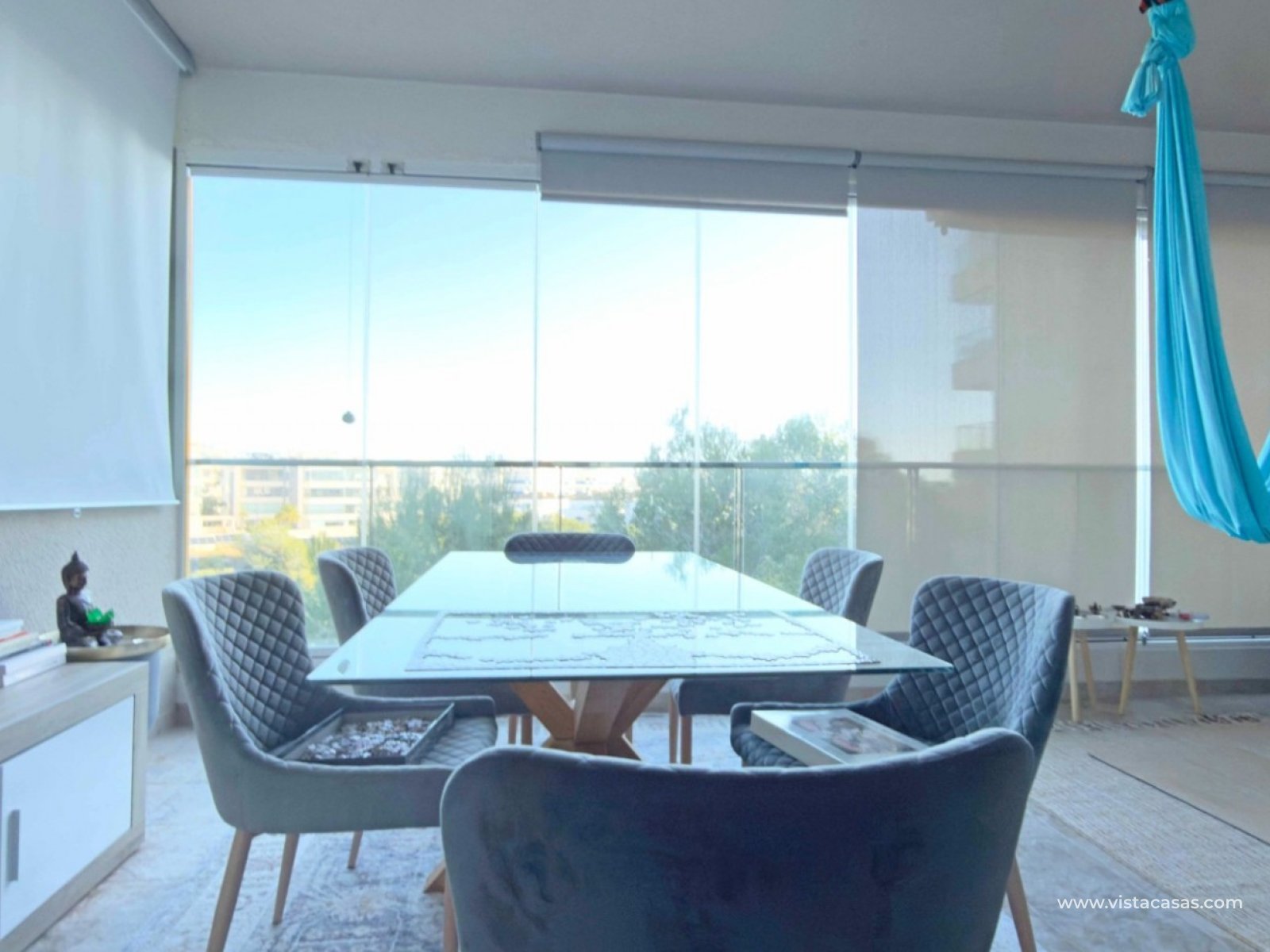 Gelegen in de populaire wijk Los Dolses, Orihuela Costa, biedt dit stijlvolle appartement op de eerste verdieping comfort, kwaliteit en een uitstekende leefomgeving binnen een beveiligde en goed onderhouden woonresidentie. Het appartement beschikt over twee ruime slaapkamers en twee moderne badkamers, ideaal voor zowel permanente bewoning als vakantiegebruik. De lichte woon- en eetkamer in open indeling geeft direct toegang tot een groot privébalkon met vrij uitzicht op het park, perfect om buiten te eten of te ontspannen in de zon. De woning wordt volledig gemeubileerd verkocht en is direct instapklaar of geschikt voor verhuur. De hoogwaardige afwerking en slimme indeling zorgen voor een comfortabele en aangename woonervaring. Bewoners hebben toegang tot prachtig aangelegde tuinen, een gemeenschappelijk zwembad, een spa en parkeergelegenheid, alles binnen een afgesloten en veilige omgeving. Dankzij de ligging nabij La Zenia Boulevard, golfbanen, stranden en alle voorzieningen is dit appartement een uitstekende keuze als vakantiehuis, investering of permanente woning aan de Costa Blanca. Een instapklare woning op een toplocatie.