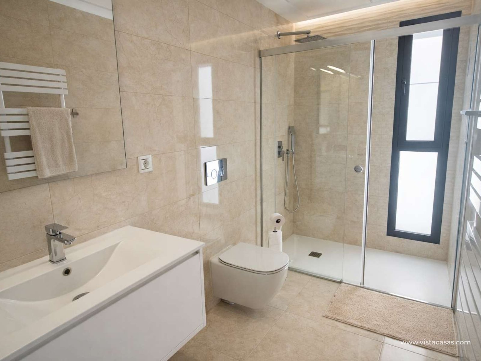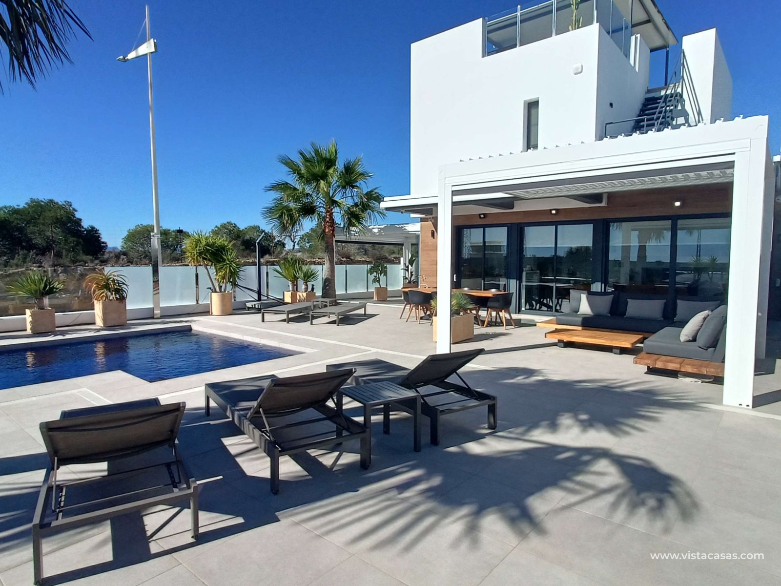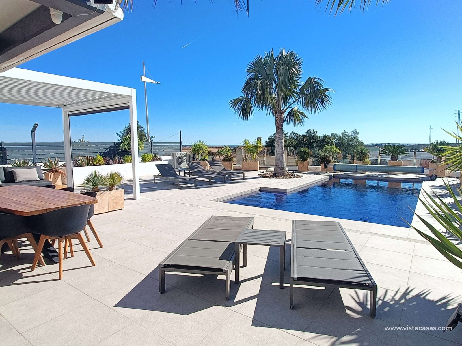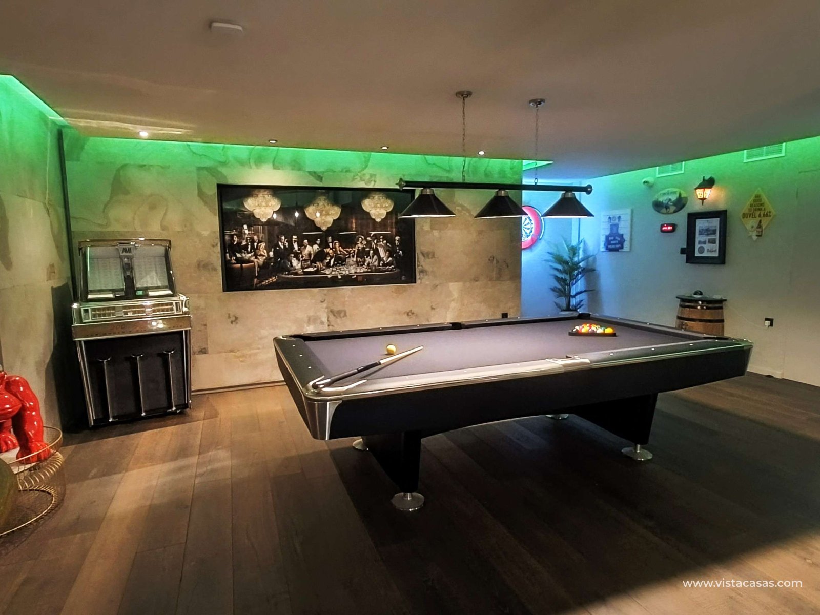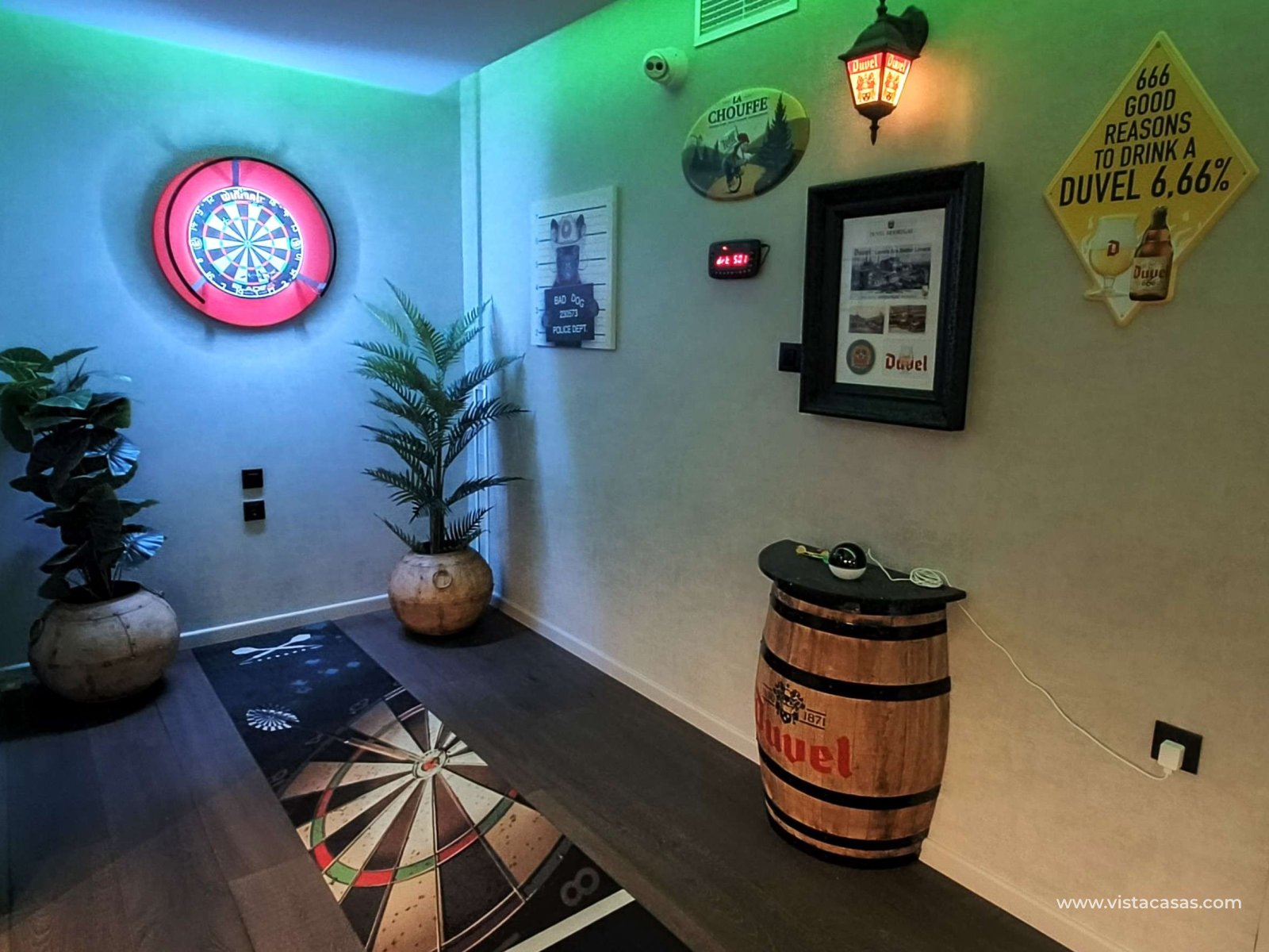 Deze uitzonderlijke vrijstaande villa is ideaal gelegen in het prestigieuze La Finca Golf & Spa Resort en biedt een perfecte mix van modern design, comfort en uitstekend buitenleven. De woning ligt op een gewilde locatie en geniet van een rustige omgeving, terwijl het op loopafstand ligt van het commerciële centrum van La Finca en op slechts 10 minuten rijden van de charmante stadjes Algorfa en Ciudad Quesada. Bij binnenkomst in de villa wordt u verwelkomd in een lichte en ruime open woon- en eetkamer, die naadloos aansluit op een volledig ingerichte moderne keuken. Kamerhoge ramen laten veel natuurlijk licht binnen en creëren een heerlijk gevoel van openheid, terwijl ze ook een prachtig uitzicht op het terras en het omringende landschap bieden. De smetteloze keuken is voorzien van een stijlvolle ontbijtbar die zowel extra opbergruimte als een praktische sociale ruimte biedt, perfect voor een informele maaltijd of om gasten te ontvangen. Op de begane grond bevindt zich ook een van de drie royale slaapkamers, compleet met inbouwkasten en elegante glazen schuifdeuren die uitkomen op een eigen zijterras - een ideale plek om 's ochtends in de frisse lucht van een kopje koffie te genieten. Een moderne familiebadkamer met een strakke inloopdouche en minimalistische inrichting bevindt zich vlakbij. In de hal bevindt zich ook een discrete kledingkast die dienst doet als centrale hub voor de elektriciteit van het pand, die het afgelopen jaar is vernieuwd, wat extra gemoedsrust biedt. Op de eerste verdieping bevindt zich de indrukwekkende hoofdslaapkamer, voorzien van inbouwkasten, een stijlvolle en-suite badkamer en een prachtig uitzicht vanuit de grote ramen. Op deze verdieping bevinden zich ook de derde slaapkamer en een tweede familiebadkamer. Beide slaapkamers hebben directe toegang tot het balkon op de eerste verdieping, een prachtige uitbreiding van de leefruimte waar u kunt genieten van de zon en naadloze toegang heeft tot het uitgestrekte solarium boven. Een van de opvallende kenmerken van deze villa is het spectaculaire solarium op het dak, dat een ongelooflijk 360 graden panoramisch uitzicht biedt, inclusief uitzicht op de zee in de verte. Deze royale ruimte is perfect om gasten te ontvangen, te ontspannen met het gezin of gewoon te zonnebaden terwijl u geniet van het mediterrane klimaat. Het pand beschikt ook over een indrukwekkende kelder die zorgvuldig is omgetoverd tot een veelzijdige recreatieruimte, compleet met een thuisbioscoop en bar - een ideale setting voor entertainment. Deze flexibele ruimte kan gemakkelijk worden aangepast aan de behoeften van de nieuwe eigenaar, of het nu gaat om een speelkamer, fitnessruimte, kantoor of extra woonruimte. De huidige eigenaren hebben de functionaliteit verbeterd door een binnenmuur te plaatsen die de hoofdrecreatieruimte scheidt van de ruime dubbele garage, die ook is voorzien van kamerhoge kasten voor uitgebreide opslagruimte en plaats biedt aan twee grote voertuigen. Grenzend aan de entertainmentruimte bevindt zich een ruime bijkeuken, slim gepositioneerd om wasapparatuur discreet uit het zicht te houden en tegelijkertijd een praktische werkruimte te bieden voor dagelijks gebruik. Aan de buitenkant blinkt de villa echt uit door zijn overvloed aan buitenruimte. De prachtig ontworpen buitenruimte is toegankelijk vanuit zowel de hoofdlounge als de omheinde ingang en beschikt over een groot verwarmd zwembad dat dankzij de gunstige ligging van het pand de hele dag zon heeft. Rondom het zwembad bevindt zich een speciale eet- en zithoek, perfect om te genieten van lange zomerdagen en ontspannen avonden in de buitenlucht. Twee bioklimatische pergola's bieden flexibele schaduw en privacy, waardoor de buitenruimte het hele jaar door beter bruikbaar is. Deze prachtige woning wordt verder verrijkt door een reeks hoogwaardige extra's, waaronder airconditioning in het hele huis, zonnepanelen, elektrische zonwering, horren aangebracht op de schuifdeuren van de woonkamer en alle slaapkamers, een buitendouche, versterkte betonnen fundering met structurele balken, vloerverwarming in de badkamers, een uitgebreid beveiligingssysteem met camera's en een zwembadafdekking. De woning wordt gedeeltelijk gemeubileerd aangeboden, waarbij over bepaalde meubelstukken kan worden onderhandeld. De villa ligt in het gerenommeerde La Finca Golf & Spa Resort en profiteert van een prachtig onderhouden omgeving rondom een bekroonde golfbaan, luxe spafaciliteiten en een levendig winkelgebied met restaurants, cafés en essentiële voorzieningen. Het resort staat bekend om zijn rustige sfeer, schilderachtige omgeving en uitstekende bereikbaarheid, waardoor het een zeer gewilde locatie is voor zowel permanent wonen als vakantieplezier aan de Costa Blanca.