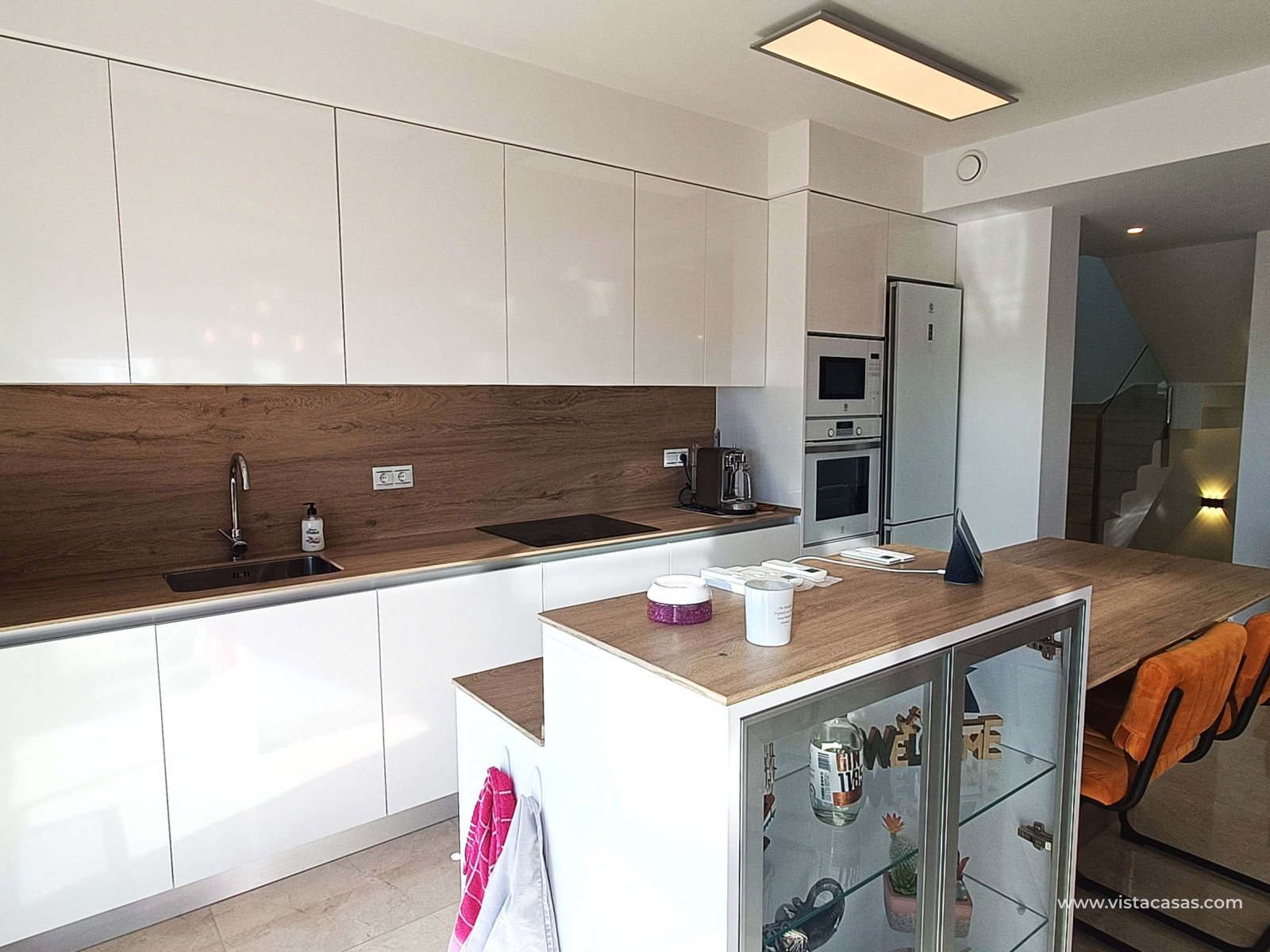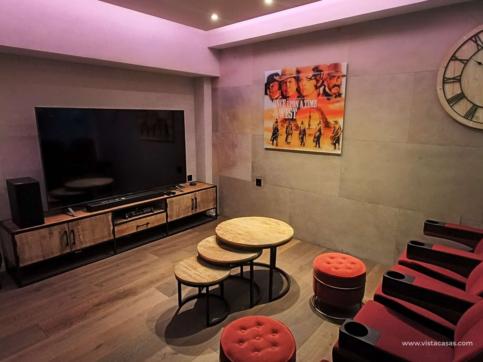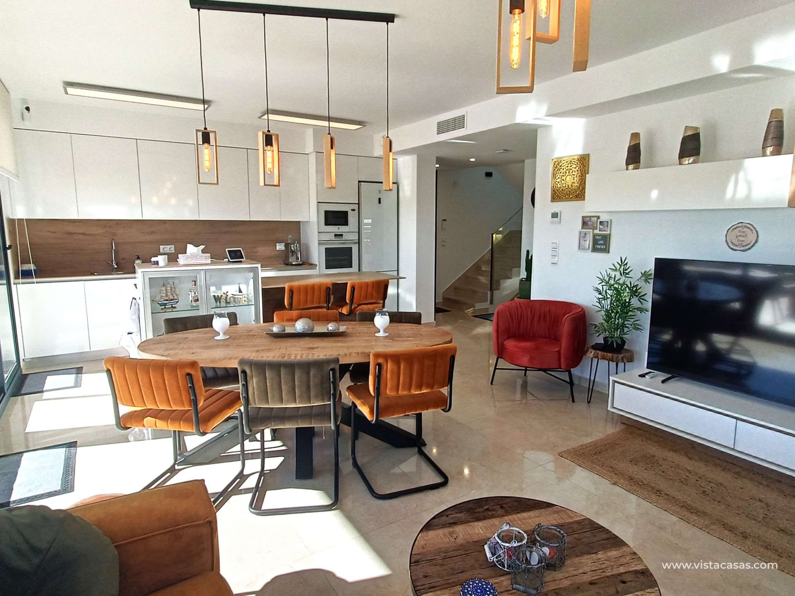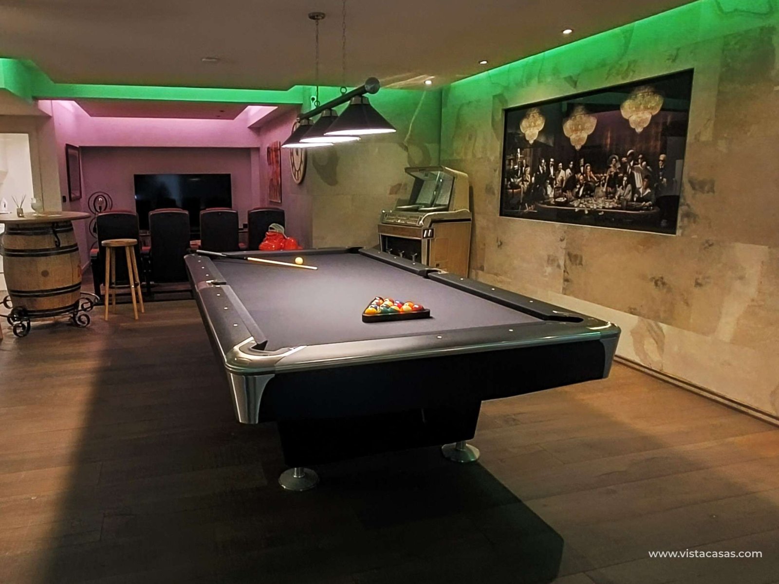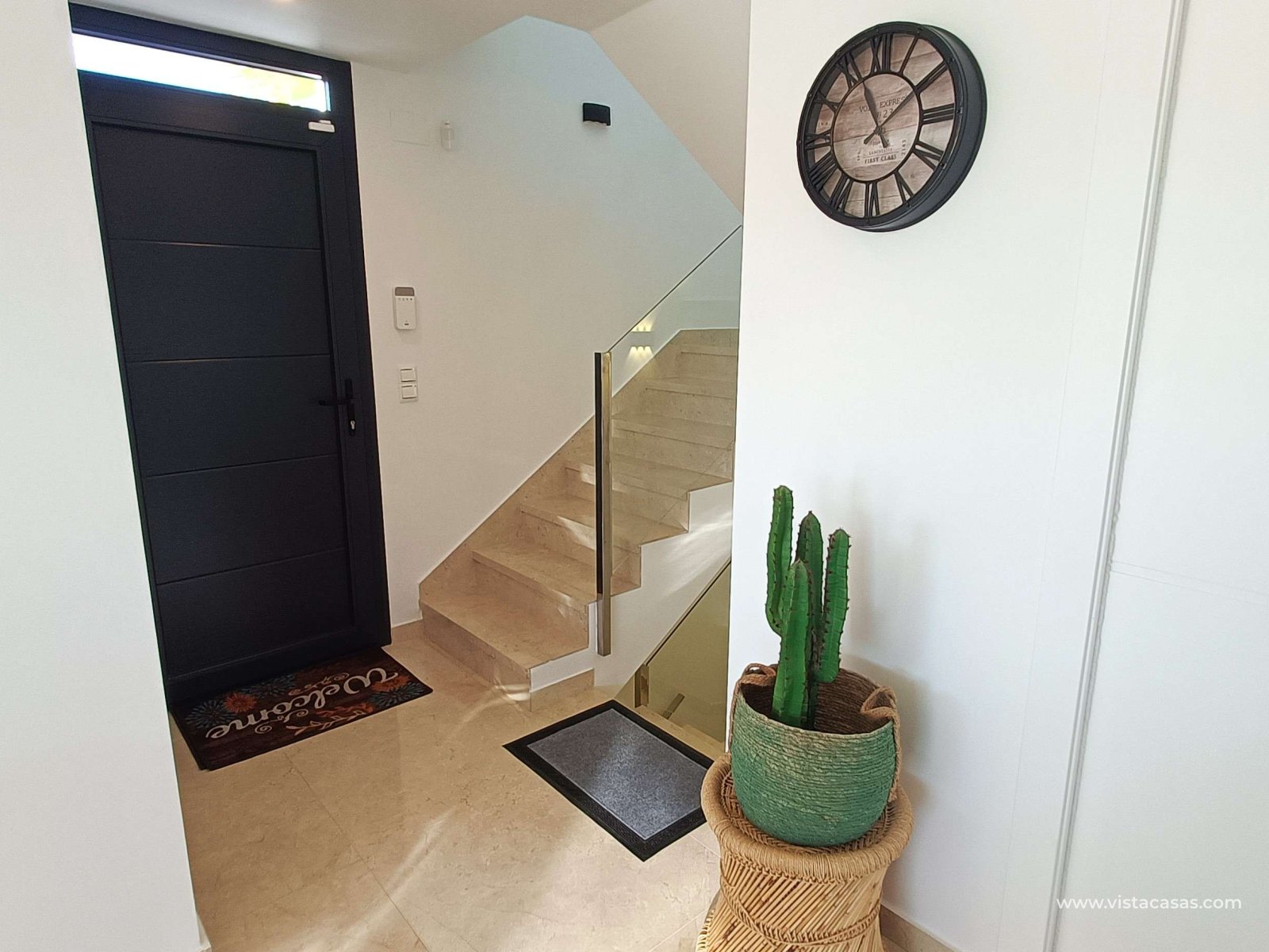 Deze uitzonderlijke vrijstaande villa is ideaal gelegen in het prestigieuze La Finca Golf & Spa Resort en biedt een perfecte mix van modern design, comfort en uitstekend buitenleven. De woning ligt op een gewilde locatie en geniet van een rustige omgeving, terwijl het op loopafstand ligt van het commerciële centrum van La Finca en op slechts 10 minuten rijden van de charmante stadjes Algorfa en Ciudad Quesada. Bij binnenkomst in de villa wordt u verwelkomd in een lichte en ruime open woon- en eetkamer, die naadloos aansluit op een volledig ingerichte moderne keuken. Kamerhoge ramen laten veel natuurlijk licht binnen en creëren een heerlijk gevoel van openheid, terwijl ze ook een prachtig uitzicht op het terras en het omringende landschap bieden. De smetteloze keuken is voorzien van een stijlvolle ontbijtbar die zowel extra opbergruimte als een praktische sociale ruimte biedt, perfect voor een informele maaltijd of om gasten te ontvangen. Op de begane grond bevindt zich ook een van de drie royale slaapkamers, compleet met inbouwkasten en elegante glazen schuifdeuren die uitkomen op een eigen zijterras - een ideale plek om 's ochtends in de frisse lucht van een kopje koffie te genieten. Een moderne familiebadkamer met een strakke inloopdouche en minimalistische inrichting bevindt zich vlakbij. In de hal bevindt zich ook een discrete kledingkast die dienst doet als centrale hub voor de elektriciteit van het pand, die het afgelopen jaar is vernieuwd, wat extra gemoedsrust biedt. Op de eerste verdieping bevindt zich de indrukwekkende hoofdslaapkamer, voorzien van inbouwkasten, een stijlvolle en-suite badkamer en een prachtig uitzicht vanuit de grote ramen. Op deze verdieping bevinden zich ook de derde slaapkamer en een tweede familiebadkamer. Beide slaapkamers hebben directe toegang tot het balkon op de eerste verdieping, een prachtige uitbreiding van de leefruimte waar u kunt genieten van de zon en naadloze toegang heeft tot het uitgestrekte solarium boven. Een van de opvallende kenmerken van deze villa is het spectaculaire solarium op het dak, dat een ongelooflijk 360 graden panoramisch uitzicht biedt, inclusief uitzicht op de zee in de verte. Deze royale ruimte is perfect om gasten te ontvangen, te ontspannen met het gezin of gewoon te zonnebaden terwijl u geniet van het mediterrane klimaat. Het pand beschikt ook over een indrukwekkende kelder die zorgvuldig is omgetoverd tot een veelzijdige recreatieruimte, compleet met een thuisbioscoop en bar - een ideale setting voor entertainment. Deze flexibele ruimte kan gemakkelijk worden aangepast aan de behoeften van de nieuwe eigenaar, of het nu gaat om een speelkamer, fitnessruimte, kantoor of extra woonruimte. De huidige eigenaren hebben de functionaliteit verbeterd door een binnenmuur te plaatsen die de hoofdrecreatieruimte scheidt van de ruime dubbele garage, die ook is voorzien van kamerhoge kasten voor uitgebreide opslagruimte en plaats biedt aan twee grote voertuigen. Grenzend aan de entertainmentruimte bevindt zich een ruime bijkeuken, slim gepositioneerd om wasapparatuur discreet uit het zicht te houden en tegelijkertijd een praktische werkruimte te bieden voor dagelijks gebruik. Aan de buitenkant blinkt de villa echt uit door zijn overvloed aan buitenruimte. De prachtig ontworpen buitenruimte is toegankelijk vanuit zowel de hoofdlounge als de omheinde ingang en beschikt over een groot verwarmd zwembad dat dankzij de gunstige ligging van het pand de hele dag zon heeft. Rondom het zwembad bevindt zich een speciale eet- en zithoek, perfect om te genieten van lange zomerdagen en ontspannen avonden in de buitenlucht. Twee bioklimatische pergola's bieden flexibele schaduw en privacy, waardoor de buitenruimte het hele jaar door beter bruikbaar is. Deze prachtige woning wordt verder verrijkt door een reeks hoogwaardige extra's, waaronder airconditioning in het hele huis, zonnepanelen, elektrische zonwering, horren aangebracht op de schuifdeuren van de woonkamer en alle slaapkamers, een buitendouche, versterkte betonnen fundering met structurele balken, vloerverwarming in de badkamers, een uitgebreid beveiligingssysteem met camera's en een zwembadafdekking. De woning wordt gedeeltelijk gemeubileerd aangeboden, waarbij over bepaalde meubelstukken kan worden onderhandeld. De villa ligt in het gerenommeerde La Finca Golf & Spa Resort en profiteert van een prachtig onderhouden omgeving rondom een bekroonde golfbaan, luxe spafaciliteiten en een levendig winkelgebied met restaurants, cafés en essentiële voorzieningen. Het resort staat bekend om zijn rustige sfeer, schilderachtige omgeving en uitstekende bereikbaarheid, waardoor het een zeer gewilde locatie is voor zowel permanent wonen als vakantieplezier aan de Costa Blanca.