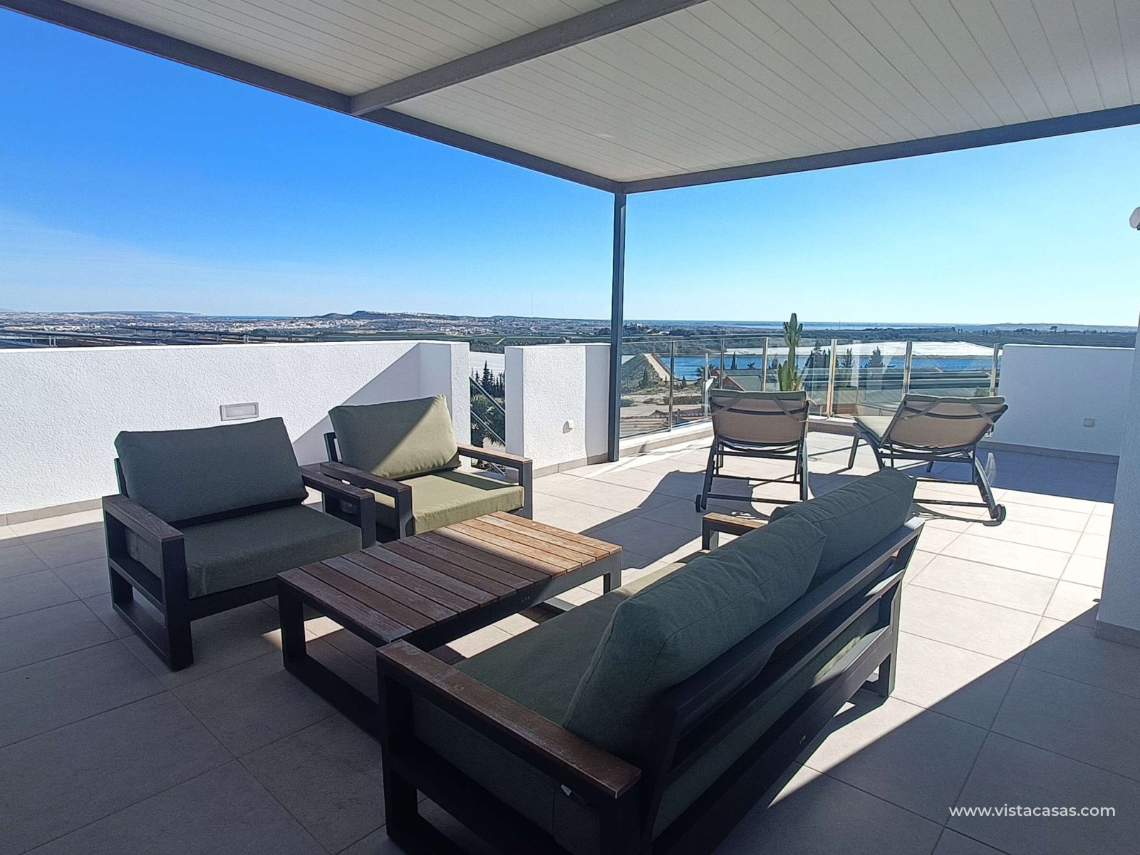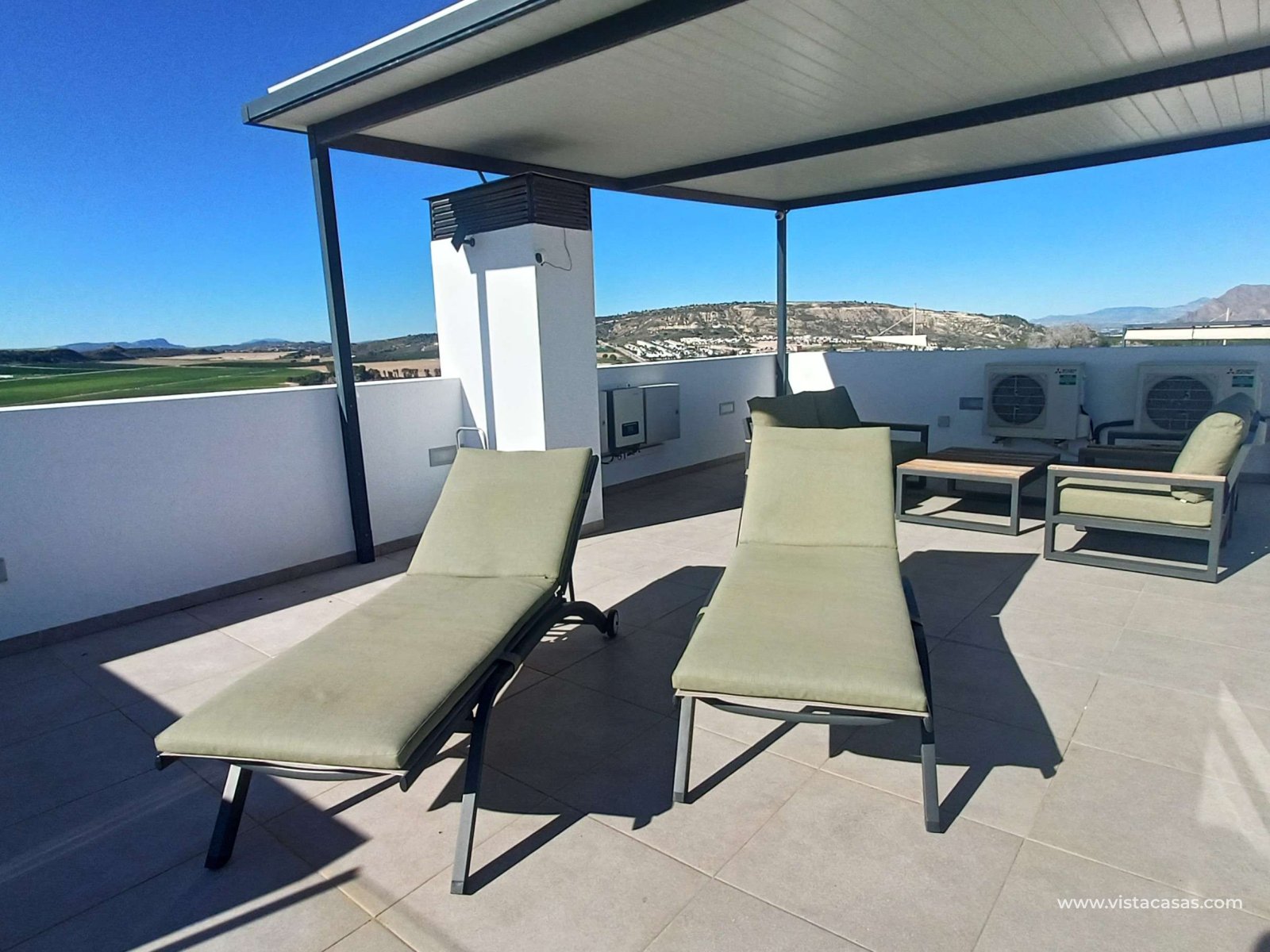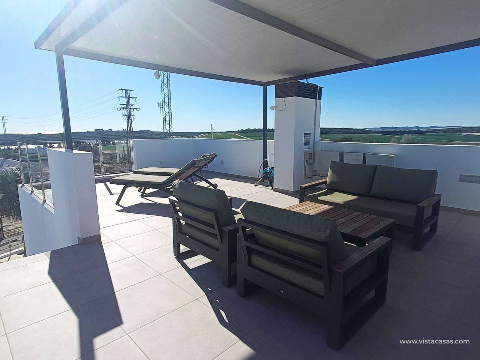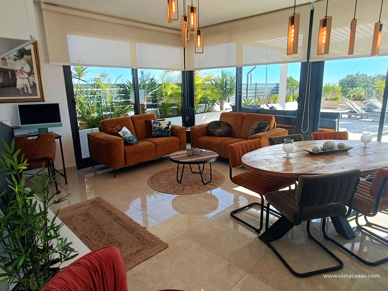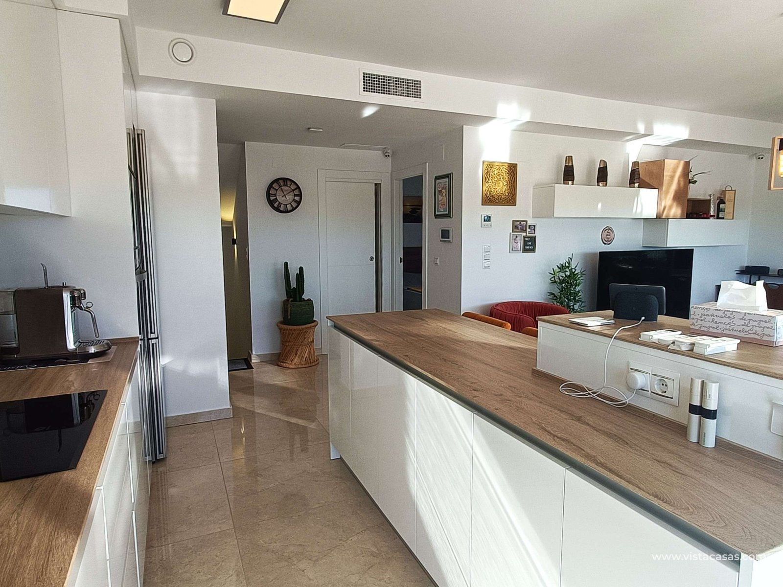 Deze uitzonderlijke vrijstaande villa is ideaal gelegen in het prestigieuze La Finca Golf & Spa Resort en biedt een perfecte mix van modern design, comfort en uitstekend buitenleven. De woning ligt op een gewilde locatie en geniet van een rustige omgeving, terwijl het op loopafstand ligt van het commerciële centrum van La Finca en op slechts 10 minuten rijden van de charmante stadjes Algorfa en Ciudad Quesada. Bij binnenkomst in de villa wordt u verwelkomd in een lichte en ruime open woon- en eetkamer, die naadloos aansluit op een volledig ingerichte moderne keuken. Kamerhoge ramen laten veel natuurlijk licht binnen en creëren een heerlijk gevoel van openheid, terwijl ze ook een prachtig uitzicht op het terras en het omringende landschap bieden. De smetteloze keuken is voorzien van een stijlvolle ontbijtbar die zowel extra opbergruimte als een praktische sociale ruimte biedt, perfect voor een informele maaltijd of om gasten te ontvangen. Op de begane grond bevindt zich ook een van de drie royale slaapkamers, compleet met inbouwkasten en elegante glazen schuifdeuren die uitkomen op een eigen zijterras - een ideale plek om 's ochtends in de frisse lucht van een kopje koffie te genieten. Een moderne familiebadkamer met een strakke inloopdouche en minimalistische inrichting bevindt zich vlakbij. In de hal bevindt zich ook een discrete kledingkast die dienst doet als centrale hub voor de elektriciteit van het pand, die het afgelopen jaar is vernieuwd, wat extra gemoedsrust biedt. Op de eerste verdieping bevindt zich de indrukwekkende hoofdslaapkamer, voorzien van inbouwkasten, een stijlvolle en-suite badkamer en een prachtig uitzicht vanuit de grote ramen. Op deze verdieping bevinden zich ook de derde slaapkamer en een tweede familiebadkamer. Beide slaapkamers hebben directe toegang tot het balkon op de eerste verdieping, een prachtige uitbreiding van de leefruimte waar u kunt genieten van de zon en naadloze toegang heeft tot het uitgestrekte solarium boven. Een van de opvallende kenmerken van deze villa is het spectaculaire solarium op het dak, dat een ongelooflijk 360 graden panoramisch uitzicht biedt, inclusief uitzicht op de zee in de verte. Deze royale ruimte is perfect om gasten te ontvangen, te ontspannen met het gezin of gewoon te zonnebaden terwijl u geniet van het mediterrane klimaat. Het pand beschikt ook over een indrukwekkende kelder die zorgvuldig is omgetoverd tot een veelzijdige recreatieruimte, compleet met een thuisbioscoop en bar - een ideale setting voor entertainment. Deze flexibele ruimte kan gemakkelijk worden aangepast aan de behoeften van de nieuwe eigenaar, of het nu gaat om een speelkamer, fitnessruimte, kantoor of extra woonruimte. De huidige eigenaren hebben de functionaliteit verbeterd door een binnenmuur te plaatsen die de hoofdrecreatieruimte scheidt van de ruime dubbele garage, die ook is voorzien van kamerhoge kasten voor uitgebreide opslagruimte en plaats biedt aan twee grote voertuigen. Grenzend aan de entertainmentruimte bevindt zich een ruime bijkeuken, slim gepositioneerd om wasapparatuur discreet uit het zicht te houden en tegelijkertijd een praktische werkruimte te bieden voor dagelijks gebruik. Aan de buitenkant blinkt de villa echt uit door zijn overvloed aan buitenruimte. De prachtig ontworpen buitenruimte is toegankelijk vanuit zowel de hoofdlounge als de omheinde ingang en beschikt over een groot verwarmd zwembad dat dankzij de gunstige ligging van het pand de hele dag zon heeft. Rondom het zwembad bevindt zich een speciale eet- en zithoek, perfect om te genieten van lange zomerdagen en ontspannen avonden in de buitenlucht. Twee bioklimatische pergola's bieden flexibele schaduw en privacy, waardoor de buitenruimte het hele jaar door beter bruikbaar is. Deze prachtige woning wordt verder verrijkt door een reeks hoogwaardige extra's, waaronder airconditioning in het hele huis, zonnepanelen, elektrische zonwering, horren aangebracht op de schuifdeuren van de woonkamer en alle slaapkamers, een buitendouche, versterkte betonnen fundering met structurele balken, vloerverwarming in de badkamers, een uitgebreid beveiligingssysteem met camera's en een zwembadafdekking. De woning wordt gedeeltelijk gemeubileerd aangeboden, waarbij over bepaalde meubelstukken kan worden onderhandeld. De villa ligt in het gerenommeerde La Finca Golf & Spa Resort en profiteert van een prachtig onderhouden omgeving rondom een bekroonde golfbaan, luxe spafaciliteiten en een levendig winkelgebied met restaurants, cafés en essentiële voorzieningen. Het resort staat bekend om zijn rustige sfeer, schilderachtige omgeving en uitstekende bereikbaarheid, waardoor het een zeer gewilde locatie is voor zowel permanent wonen als vakantieplezier aan de Costa Blanca.
