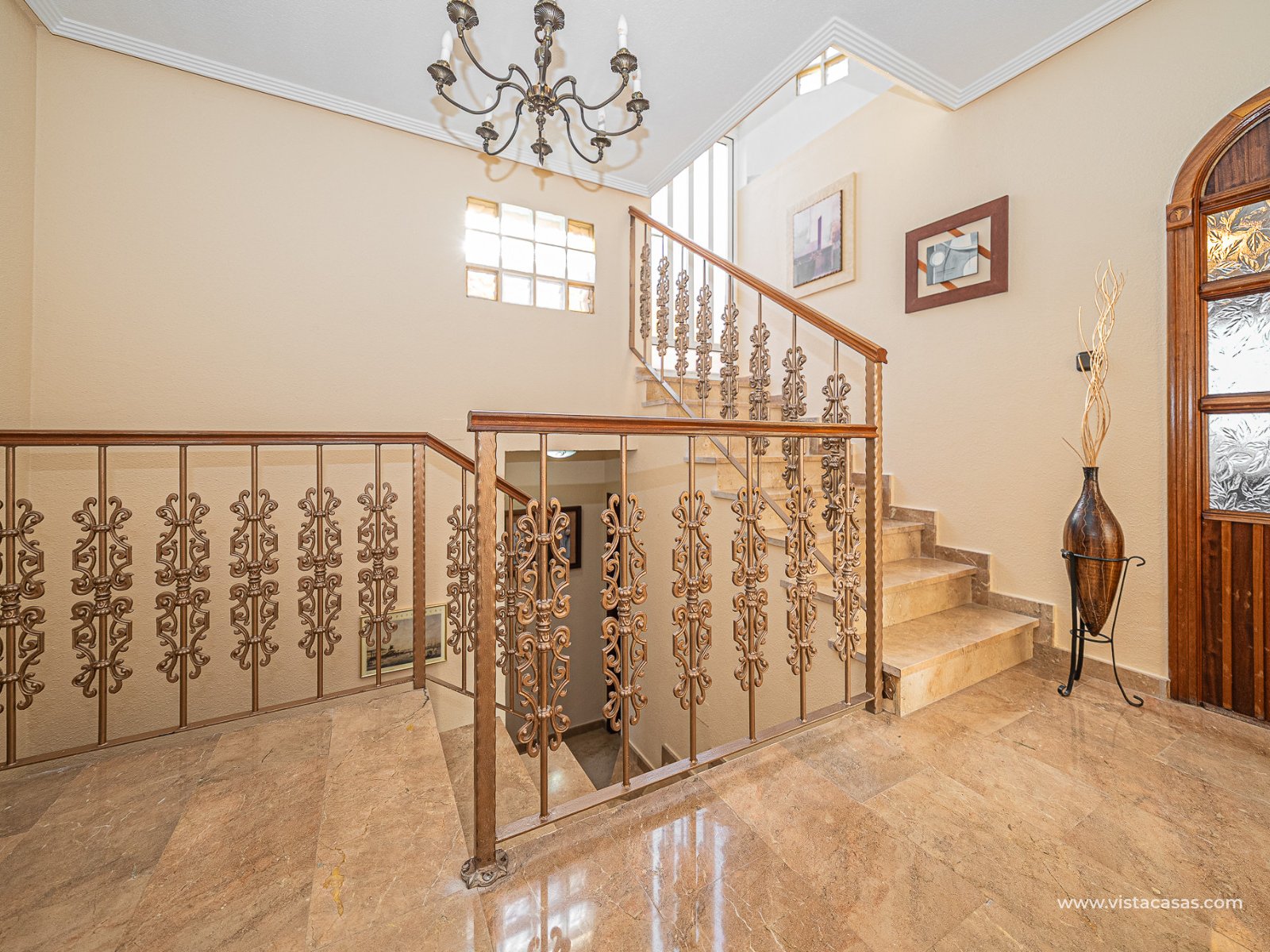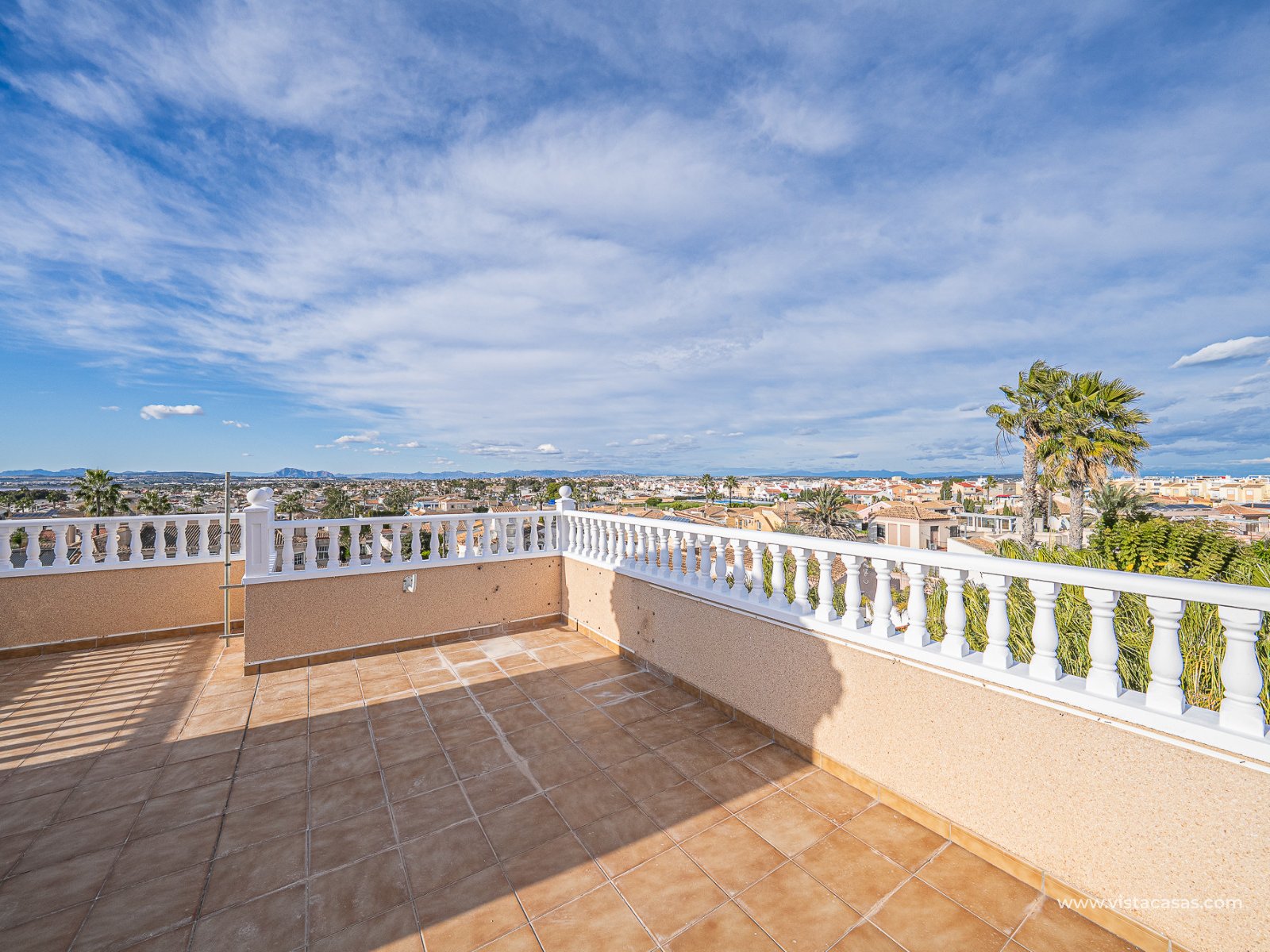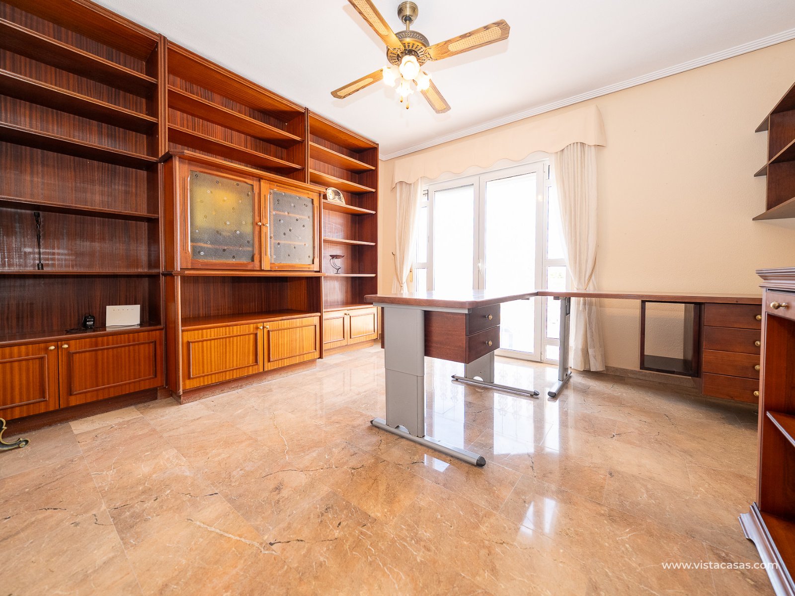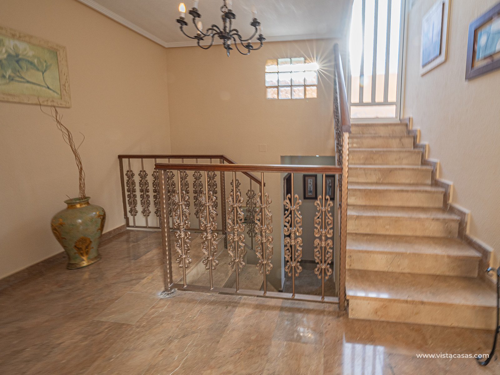 Deze goed onderhouden halfvrijstaande villa is gelegen aan de rand van Torrevieja, in de gevestigde woonwijk El Chaparral, nabij de prachtige zoutmeren. De woning heeft een totale bebouwde oppervlakte van 187,25 m², verdeeld over meerdere niveaus, en is gelegen op een royaal perceel van 411 m². De villa beschikt over vier slaapkamers, waarvan één momenteel wordt gebruikt als studeer- of thuiskantoor. De hoofdslaapkamer is voorzien van een inloopkast en de woning biedt drie badkamers, waarvan één met jacuzzi. De leefruimte bestaat uit een ruime woonkamer, een aparte eetkamer en een aparte keuken, uitgerust uitsluitend met een kookplaat en vaatwasser, met een aangrenzende bijkeuken. Een ruime kelderverdieping biedt waardevolle extra ruimte en beschikt over een extra badkamer en uitgebreide opslagmogelijkheden. Deze veelzijdige ruimte kan eenvoudig worden aangepast voor diverse doeleinden, zoals een fitnessruimte, bioscoopkamer, speelkamer of extra gastenverblijf. Buiten beschikt de woning over een zuidoostelijk georiënteerd terras, een privé zoutwaterzwembad van 8 × 4 meter, een zomerkeuken met barbecuegedeelte, goed onderhouden tuinen, dakterrassen aan de voor- en achterzijde, en een grote garage met extra parkeergelegenheid op eigen terrein. De villa wordt verkocht zoals gezien en is voorzien van airconditioning in de woonkamer en hoofdslaapkamer, gasgestookte vloerverwarming, marmeren vloeren in de gehele woning en een waterfiltersysteem voor het hele huis. El Chaparral is een populaire woonwijk met een breed aanbod aan lokale voorzieningen, waaronder bars, restaurants, supermarkten, apotheek, medisch centrum en banken, allemaal op loopafstand. Het centrum van Torrevieja en de stranden liggen op ongeveer vijf minuten rijden. Voor meer informatie of om een bezichtiging te plannen, neem gerust contact op met Inmo Investments.