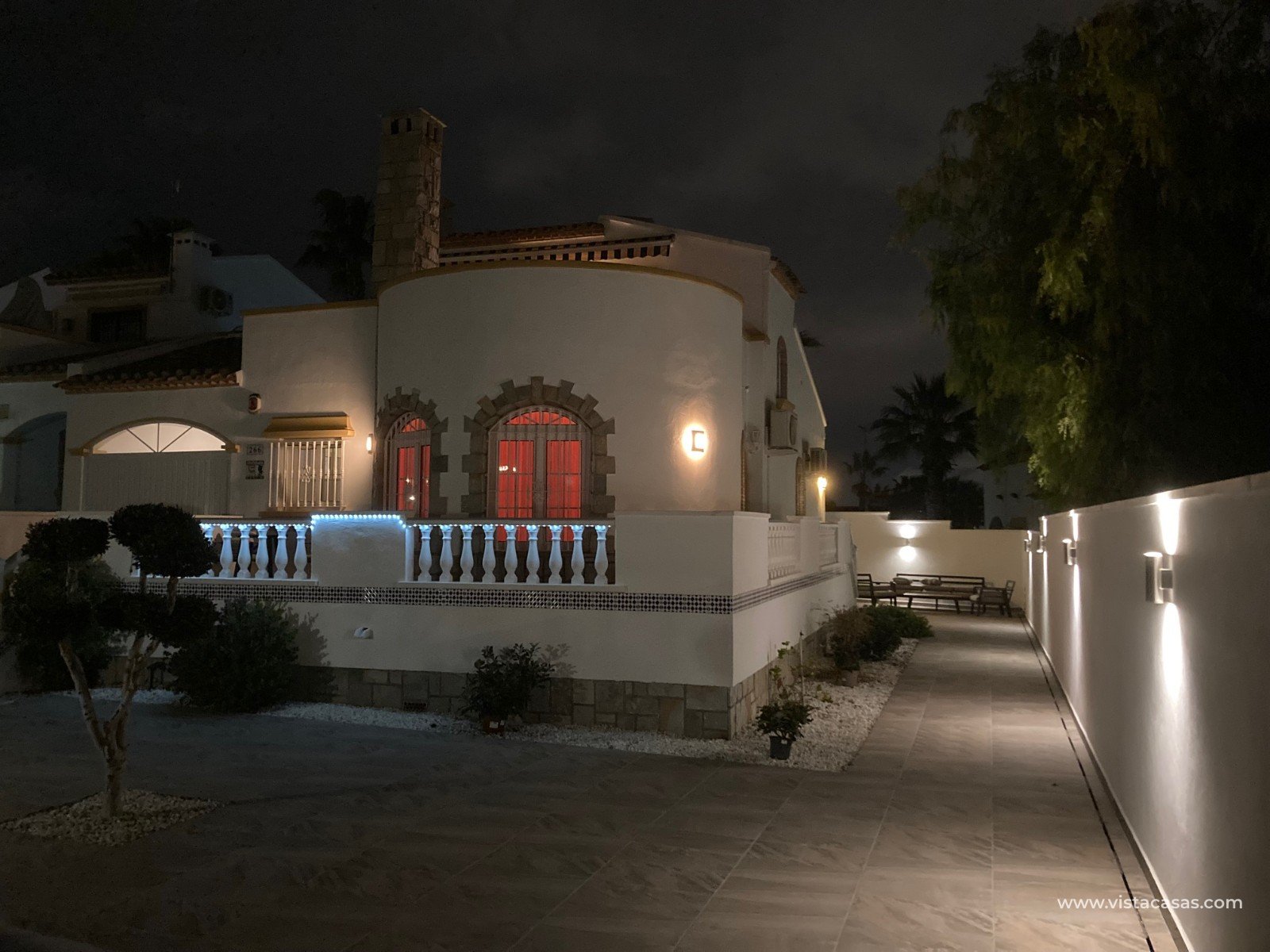 Deze Ibiza-stijl villa met 3 slaapkamers op het zuidwesten ligt in de zeer gewilde R5-gemeenschap in Los Dolses, ideaal gelegen op loopafstand van voorzieningen, verschillende commerciële centra en het populaire Zenia Boulevard winkelcentrum.