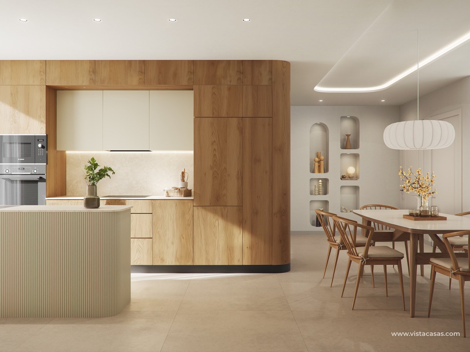 Het interieur van deze onafhankelijke woningen is ontworpen om comfort en stijl te bieden. Met 3 slaapkamers en 2 badkamers is elke ruimte geoptimaliseerd voor het comfort van de bewoners. De porseleinen tegelvloeren geven een moderne uitstraling en zijn gemakkelijk te onderhouden. Elektrische rolluiken en inbegrepen apparaten maken het dagelijks leven gemakkelijker, terwijl ingebouwde kasten efficiënte opslag bieden. De voorinstallatie van airconditioning zorgt ervoor dat het binnenklimaat altijd is aangepast aan de behoeften van elk seizoen.