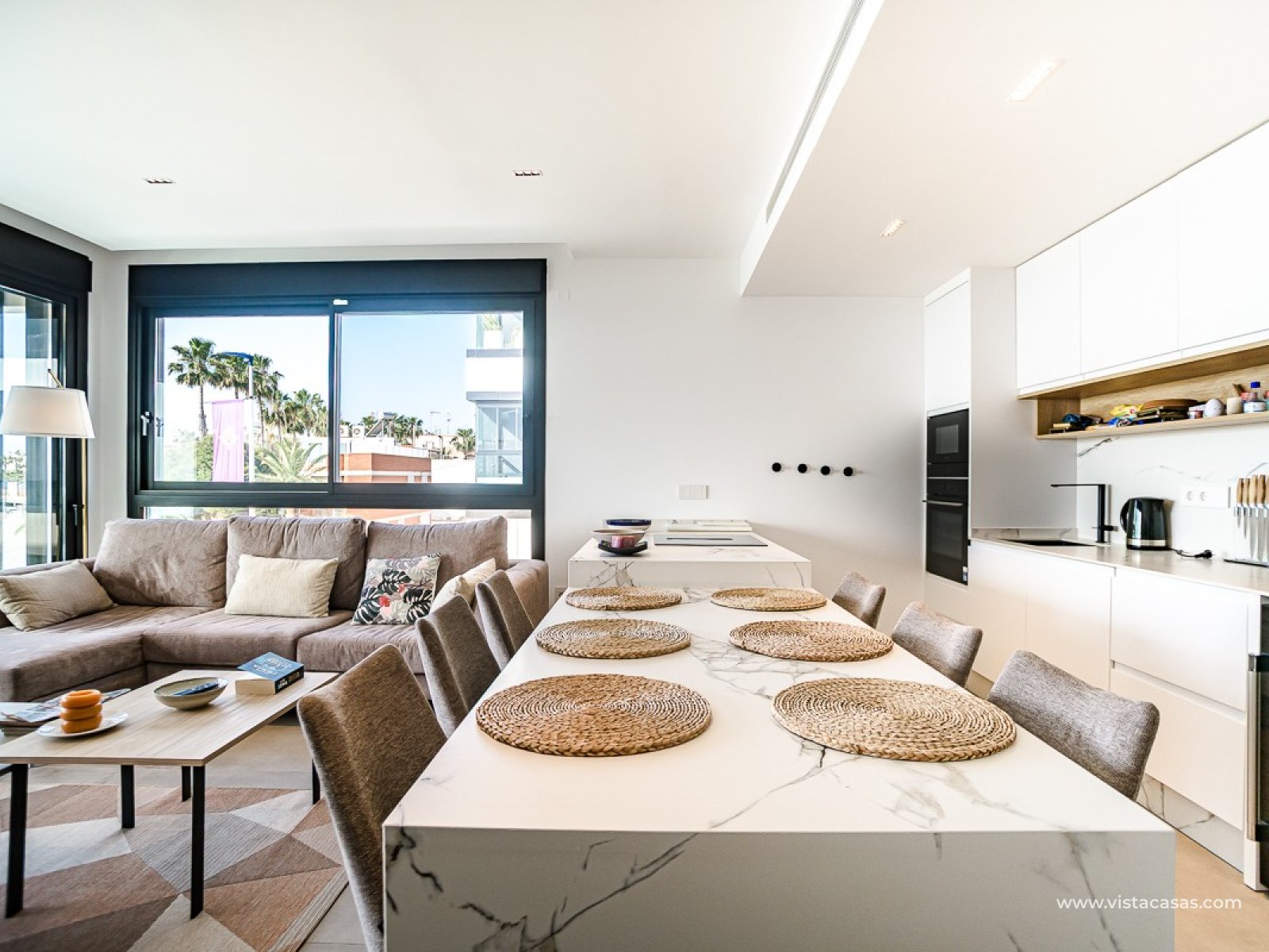 Uniek frontline luxe appartement met panoramisch zicht op de Mar Menor – Lo Pagán Droom je van wonen op de eerste lijn met een adembenemend uitzicht? Dit exclusieve appartement in Lo Pagán biedt een zeldzame combinatie van luxe, comfort en locatie. Gelegen in een kleinschalig gebouw met slechts vijf appartementen, geniet je hier van rust, privacy en een ongeëvenaard uitzicht over de haven en de Mar Menor. Het appartement is opgeleverd in oktober 2025 en verkeert in nieuwstaat. Met drie ruime slaapkamers en twee stijlvolle badkamers is het perfect geschikt als permanente woning, vakantieverblijf of investering. De moderne keuken is volledig uitgerust met hoogwaardige toestellen, inclusief een wijnfrigo – ideaal voor lange avonden met uitzicht op zee. Een absolute troef is het gezellige terras waar je volop kan genieten van het prachtige panoramische zicht. Of je nu ’s ochtends rustig je koffie drinkt of ’s avonds de zon ziet ondergaan, dit is dé plek om tot rust te komen. Wordt het te warm? Dan zorgen de elektrische screens voor aangename schaduw en extra comfort, zodat je het hele jaar door optimaal van het buitenleven geniet. Qua comfort is de woning volledig uitgerust met airconditioning (warm en koud) en een geavanceerd Airzone-systeem, waarmee je elke kamer afzonderlijk kan aansturen voor een optimaal binnenklimaat. Daarnaast beschikt het appartement over een ruime, privé en afgesloten parkeergarage die niet alleen plaats biedt voor je wagen, maar ook groot genoeg is om extra spullen te stockeren. Uiteraard is er ook een lift aanwezig in het gebouw, wat het comfort compleet maakt. De meubels kunnen optioneel worden overgenomen, zodat je meteen zorgeloos kunt genieten. Waarom Lo Pagán? Lo Pagán staat bekend om zijn charmante sfeer, prachtige wandelboulevard en de unieke ligging aan de Mar Menor. Hier geniet je van rustige, warme wateren, gezellige restaurants en het hele jaar door een aangenaam klimaat. Bovendien liggen voorzieningen, winkels en natuurgebieden binnen handbereik. Dit is een zeldzame kans om een frontline luxe appartement te bezitten op een toplocatie aan de Costa Cálida. Interesse? Neem vandaag nog contact met ons op voor meer informatie of een bezichtiging en ontdek zelf dit unieke stukje luxe aan zee.