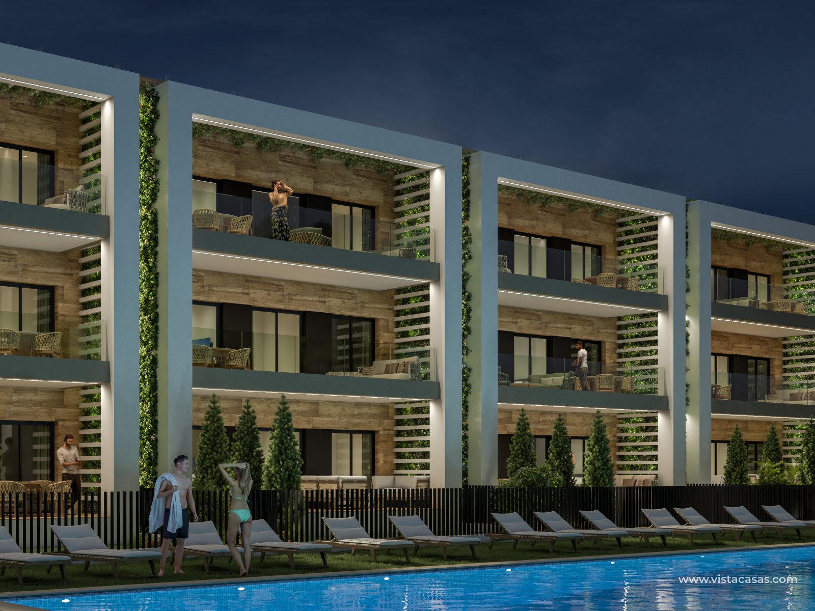 De buitenruimtes blijven niet achter op het gebied van ontwerp en functionaliteit. Elke woning heeft een terras dat perfect is om te genieten van het mediterrane klimaat. Sommige typen bieden een privé solarium, ideaal om te ontspannen in de zon, terwijl de begane grond woningen beschikken over privé tuinen die een persoonlijke groene ruimte bieden om met familie of vrienden van te genieten. Voor degenen die op zoek zijn naar een extra vleugje luxe, bevatten bepaalde woningen een privé zwembad, waardoor een persoonlijke oase ontstaat om af te koelen op warme zomerdagen.