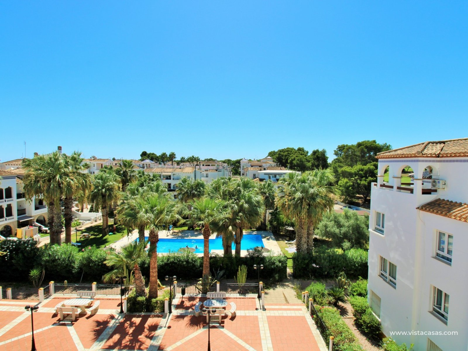 Elegancki, narożny apartament typu penthouse z ekspozycją południową i widokiem na basen, położony w popularnej dzielnicy Villagolf, niedaleko Villamartin Plaza. Apartament cieszy się doskonałą lokalizacją, w odległości krótkiego spaceru od supermarketu, przystanku autobusowego, banku, barów, kawiarni i restauracji. Jest w pełni umeblowany i wyposażony w sprzęt AGD. Do apartamentu przynależy podziemne miejsce parkingowe i prywatna komórka lokatorska. Osiedle jest ogrodzone i zapewnia mieszkańcom bezpieczne wejście, dostęp windą na wszystkie piętra oraz dostęp do wspólnego basenu.